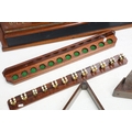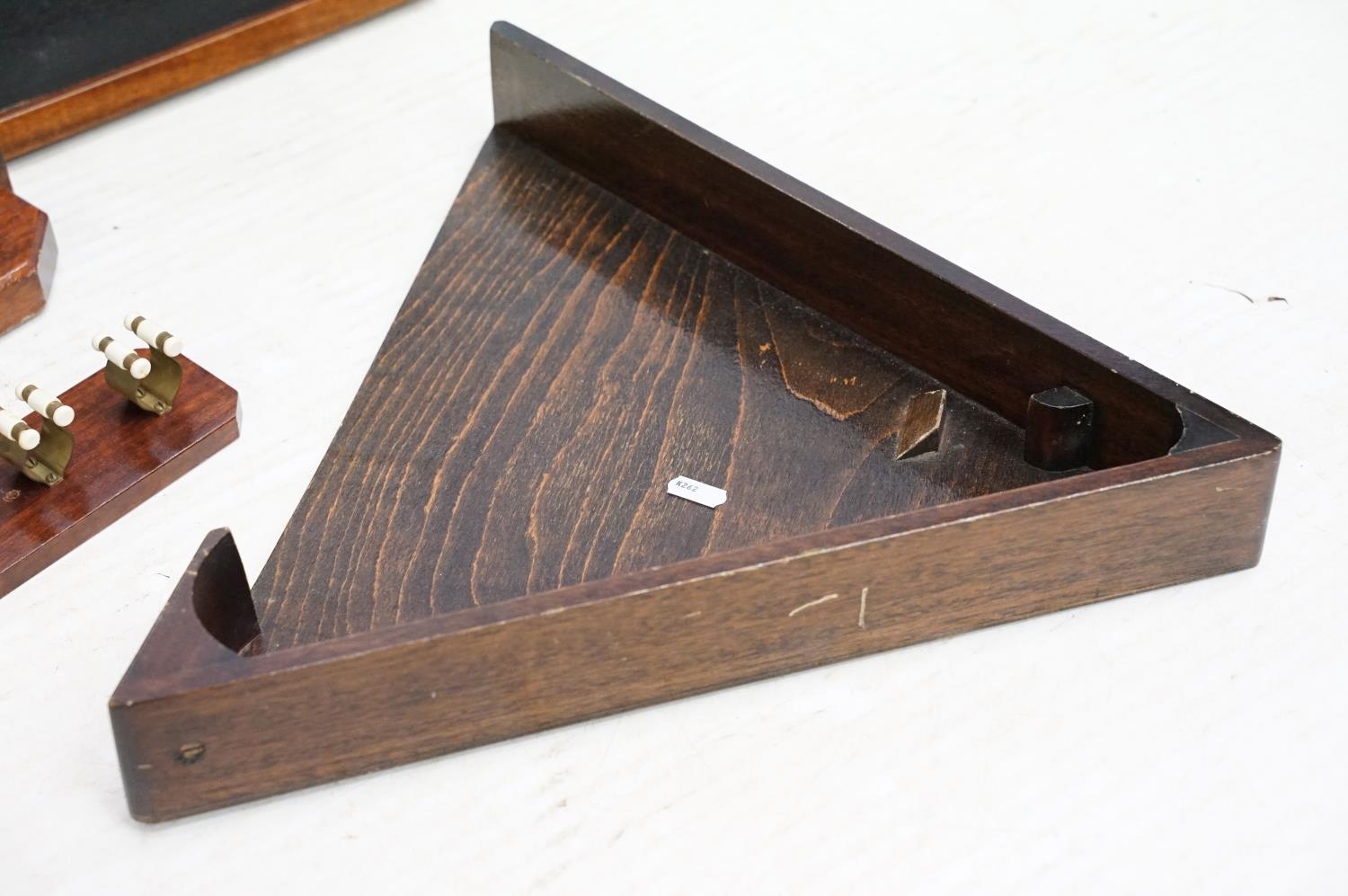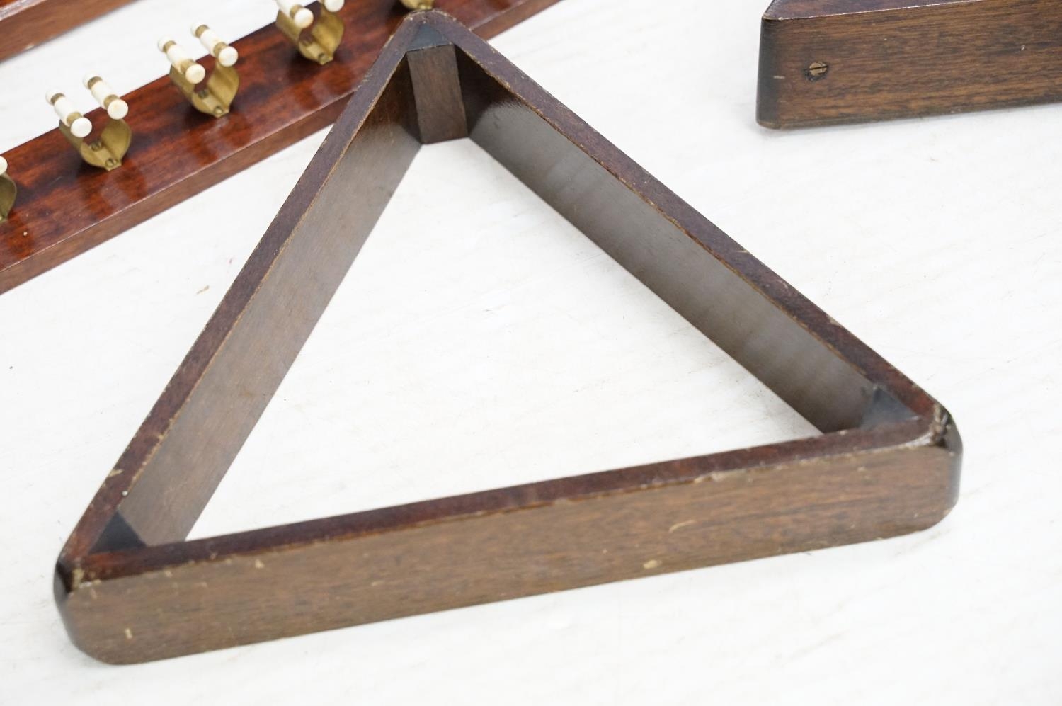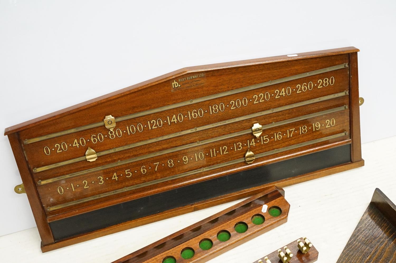 Riley Burwat Ltd snooker / billiards scoreboard, together with a cue rack and triangle & stand