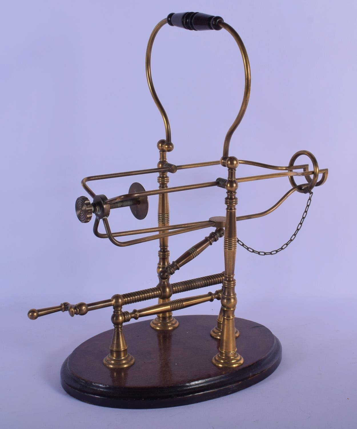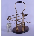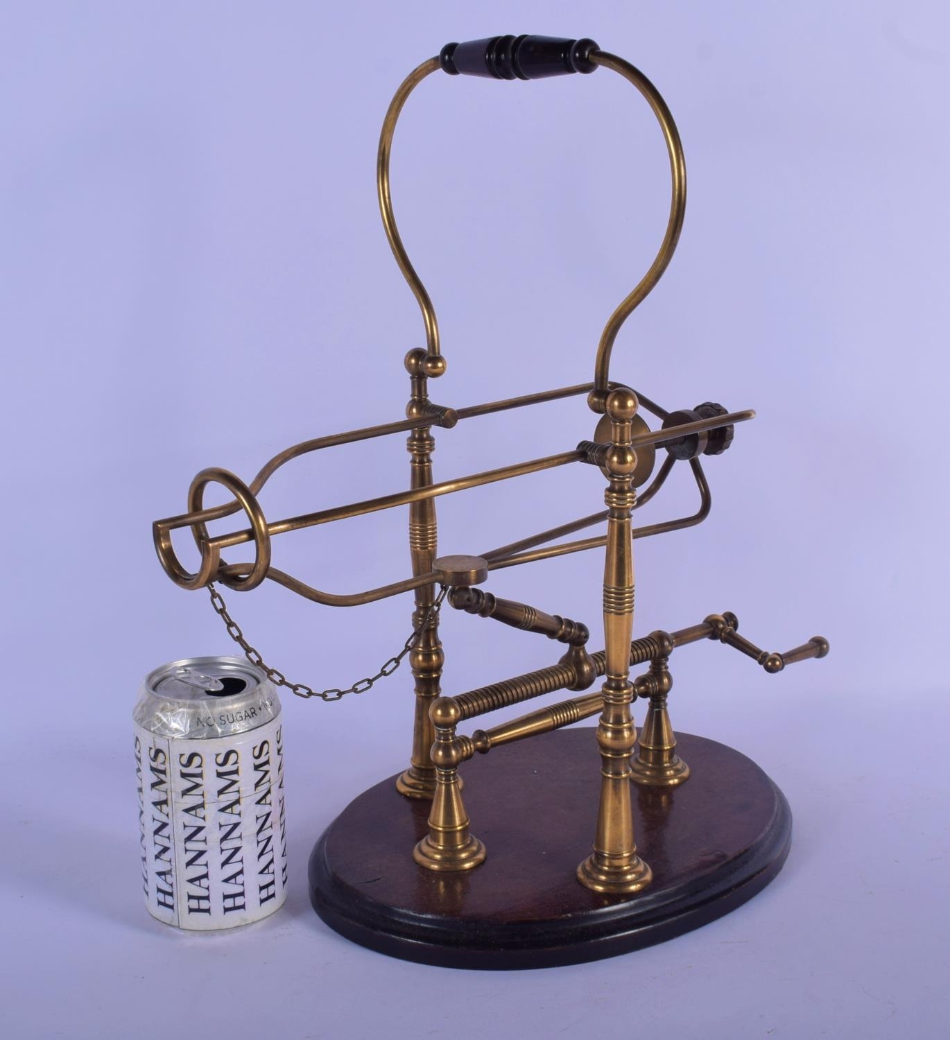 A CHARMING BRASS AND BURR WOOD BOTTLE POURER. 38 cm x 34 cm.