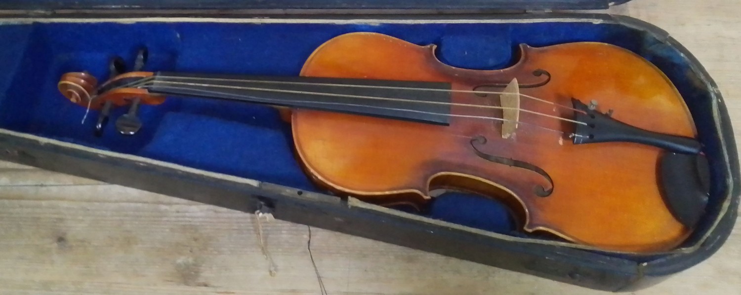 A Joesph Guaruerius copy violin, with hard case.