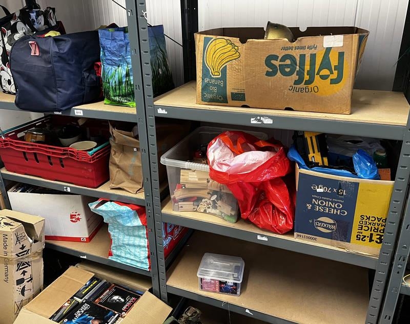 KIDS TOYS, DVD'S, CROCKERY, CLOTHING ETC OVER 6 SHELVES
