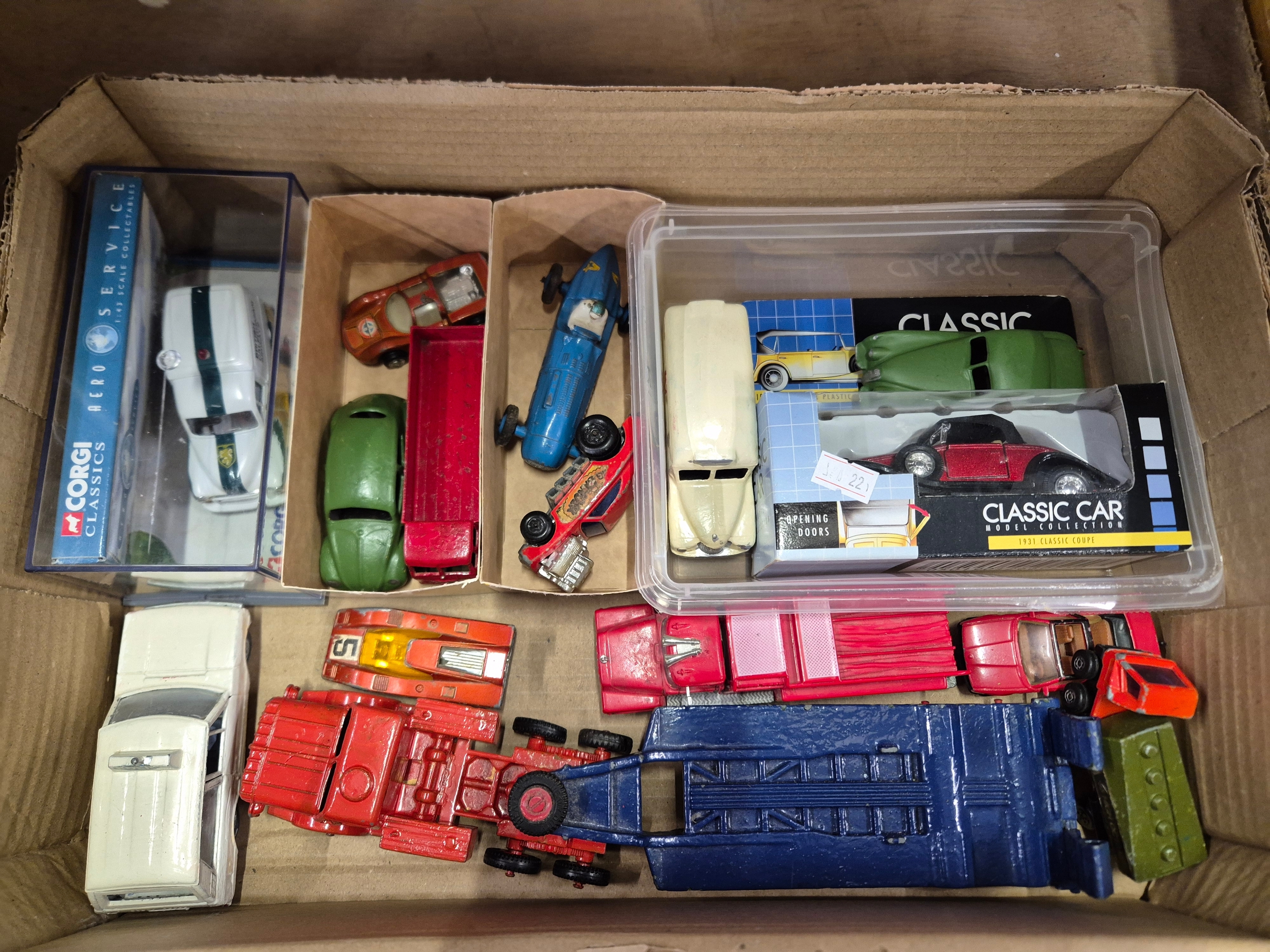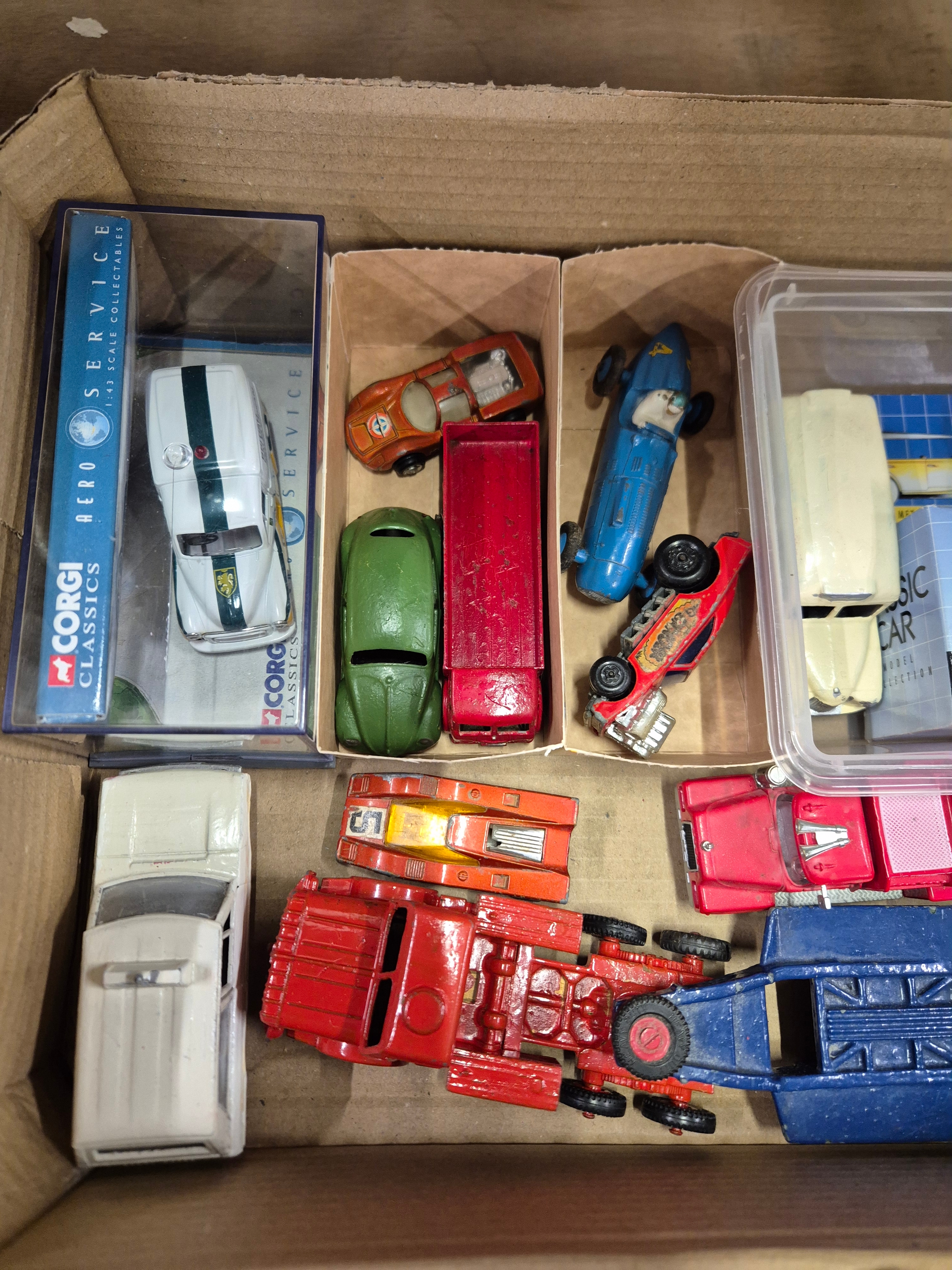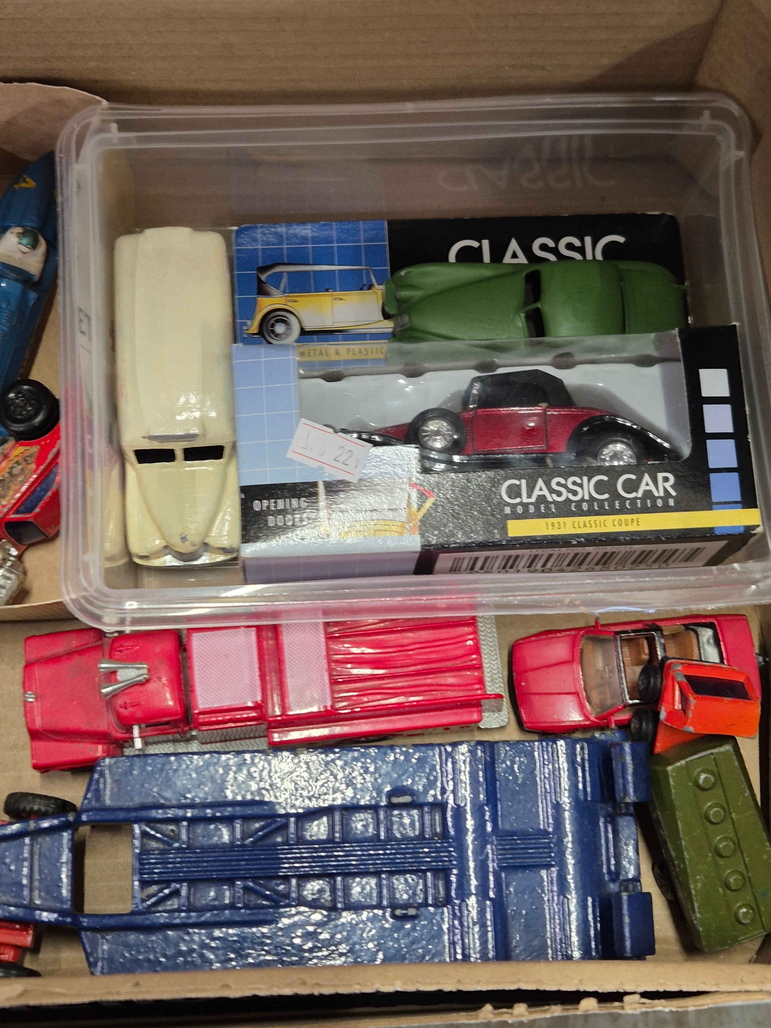 Box of collectors cars and other vehicles to include Corgi, Matchbox, Dinky etc