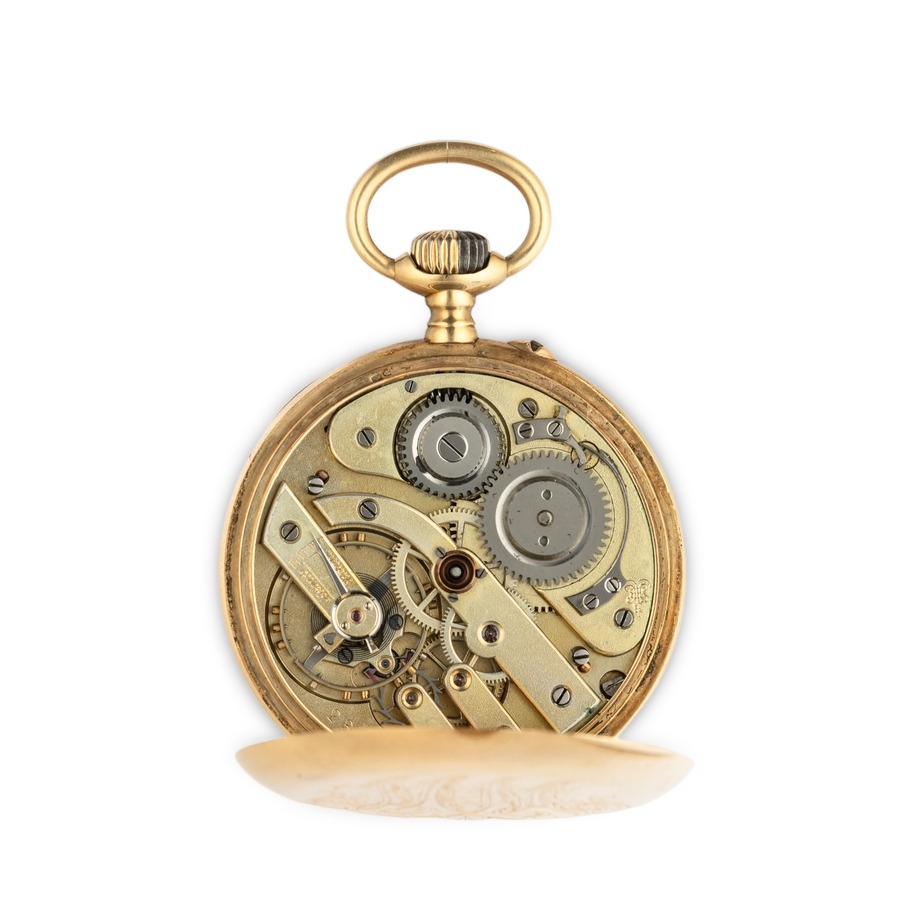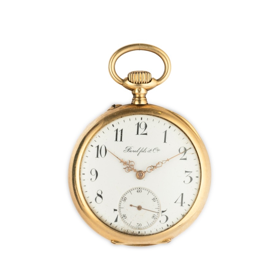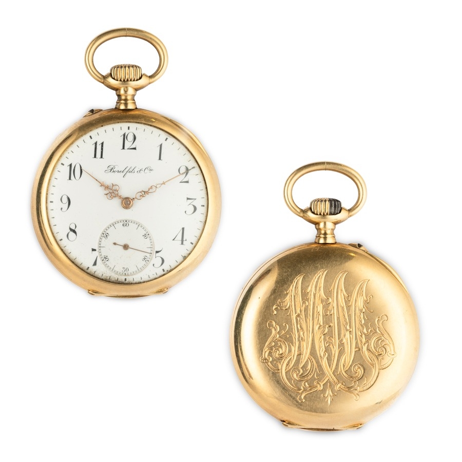 BOREL FILS ET CIE, OROLOGIO DA TASCA IN ORO, CON MONOGRAMMA, SVIZZERA 1910 CIRCA