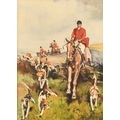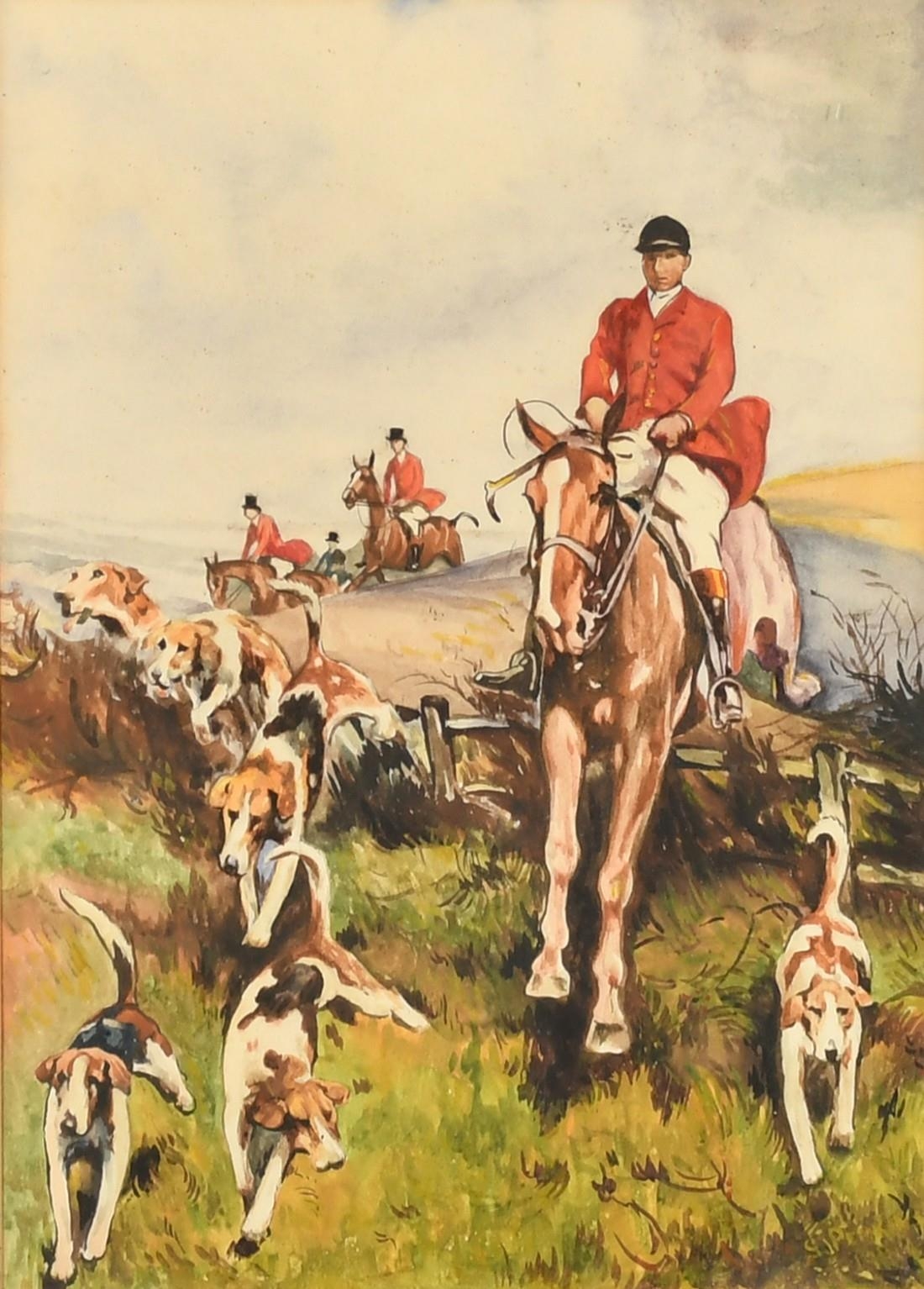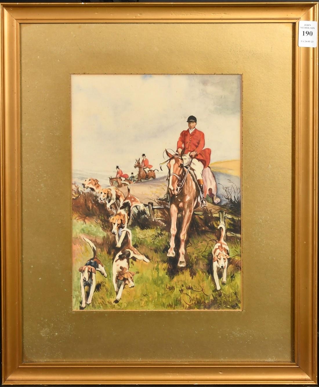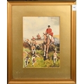 Circle of Thomas Blinks, A hunt in full cry, watercolour, indistinctly signed, 11" x 8", (28x20cm).