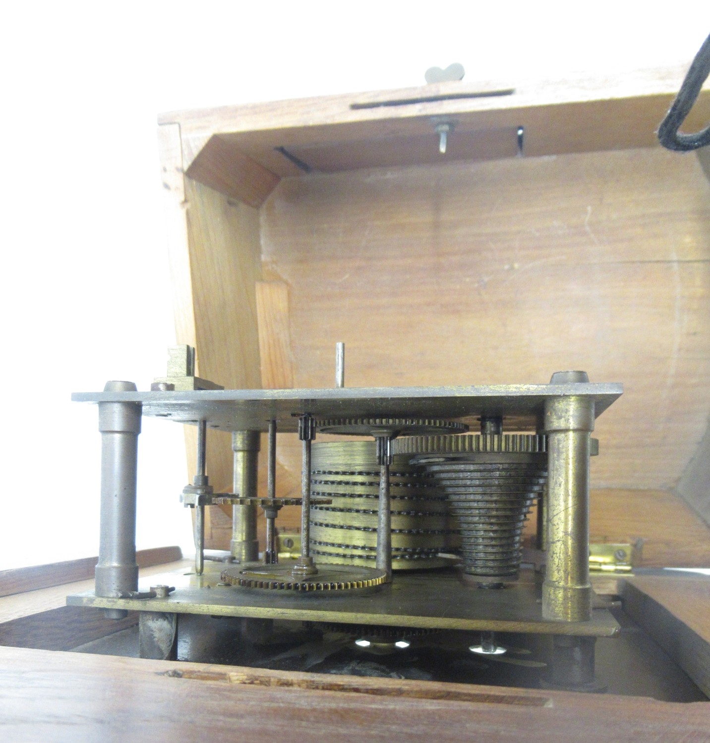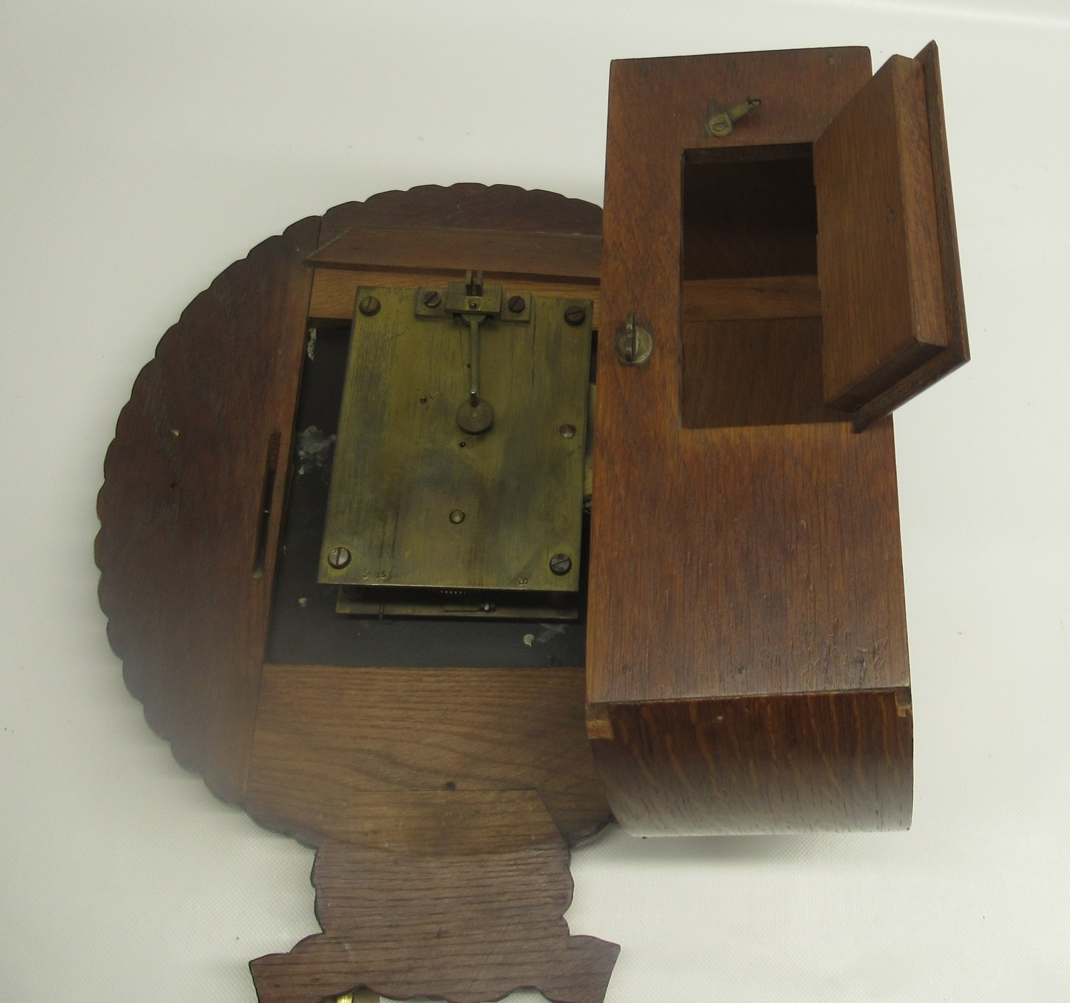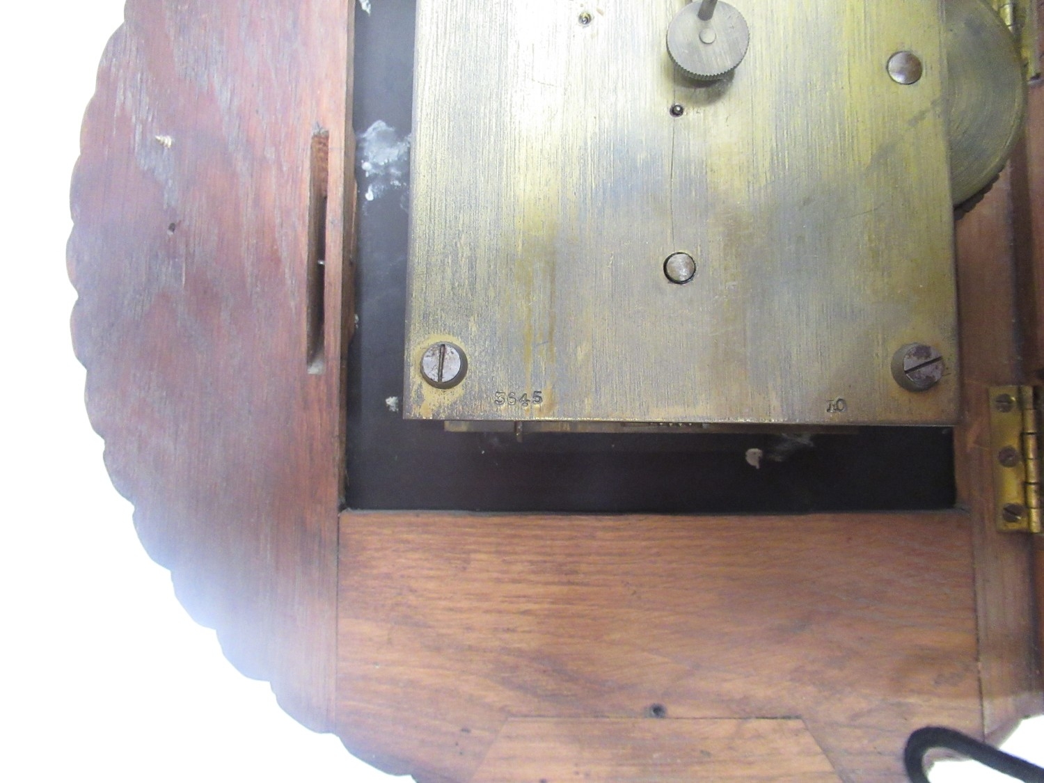 Clock running, dial repainted in places, hour hand not aligned, age related wear.