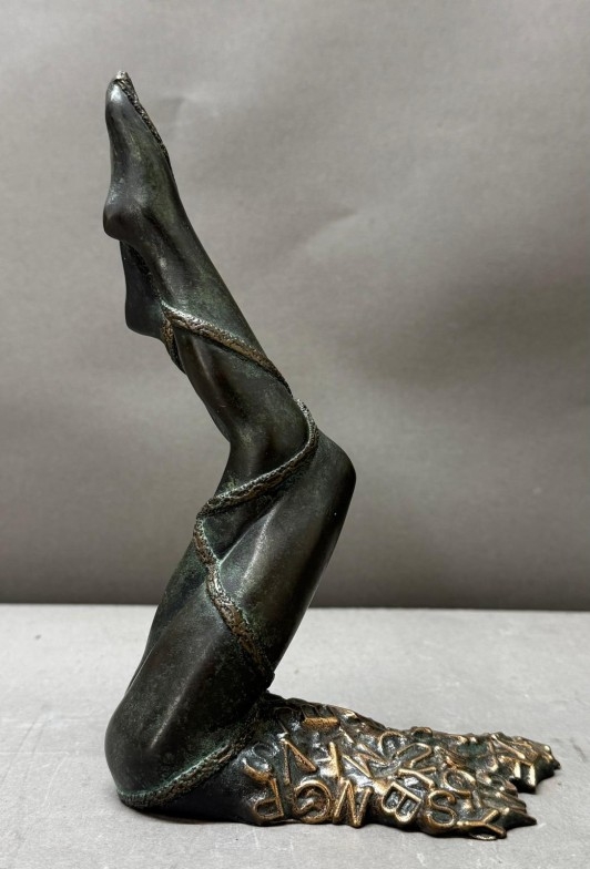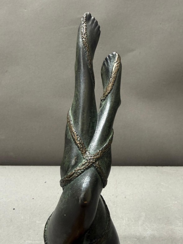 Limited Edition Bronze of bound female legs 293/500 signed to base and approximate height 18.5cm.