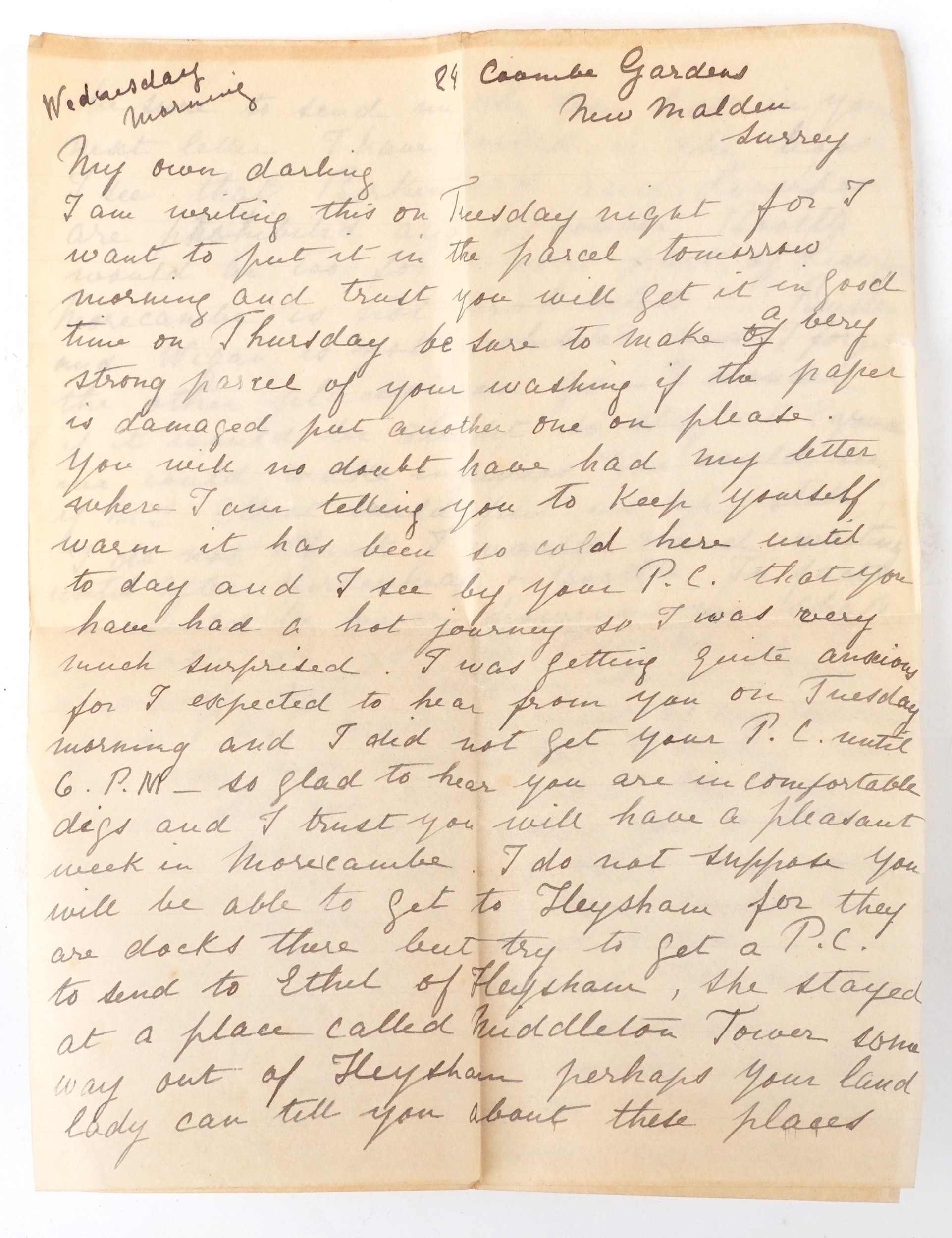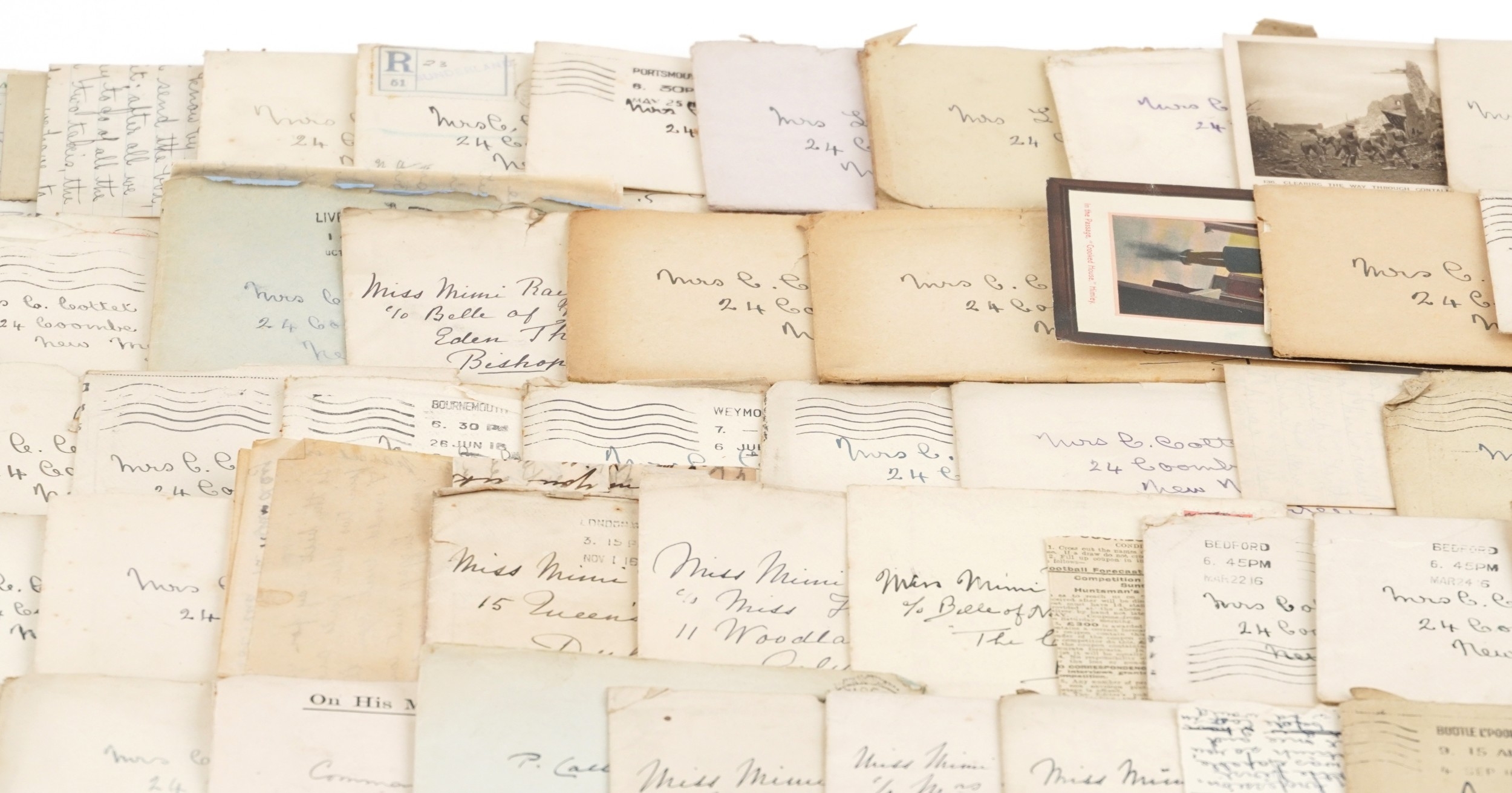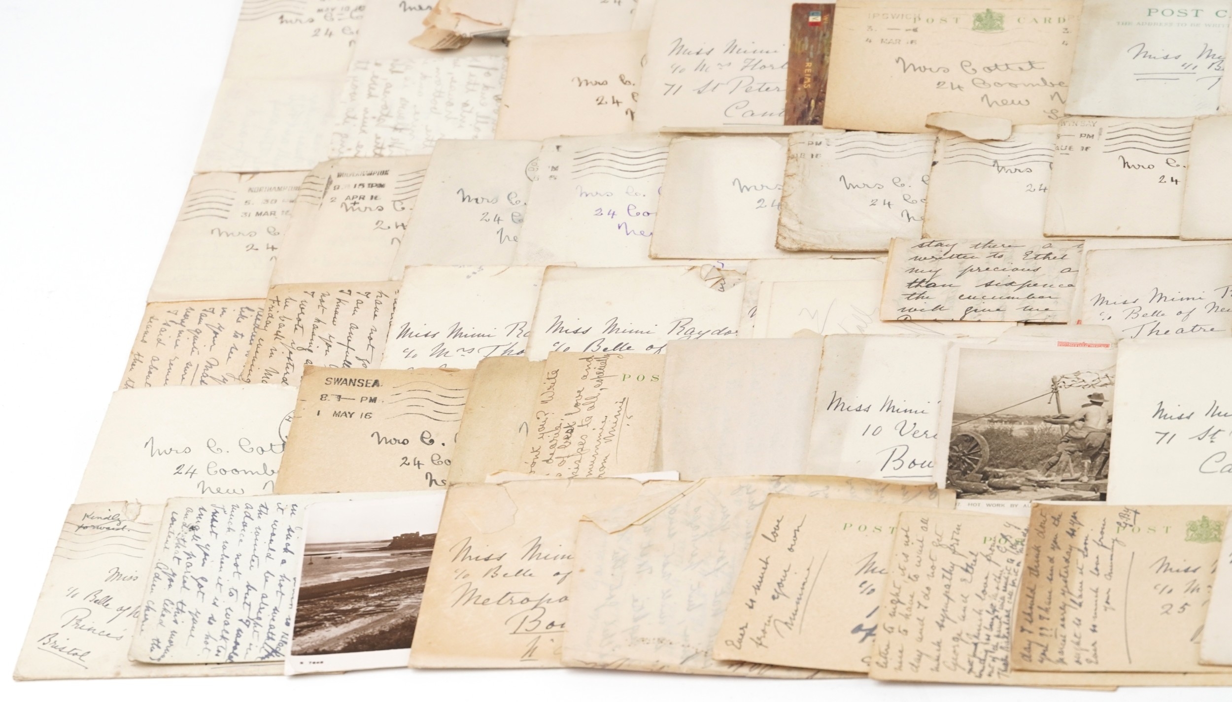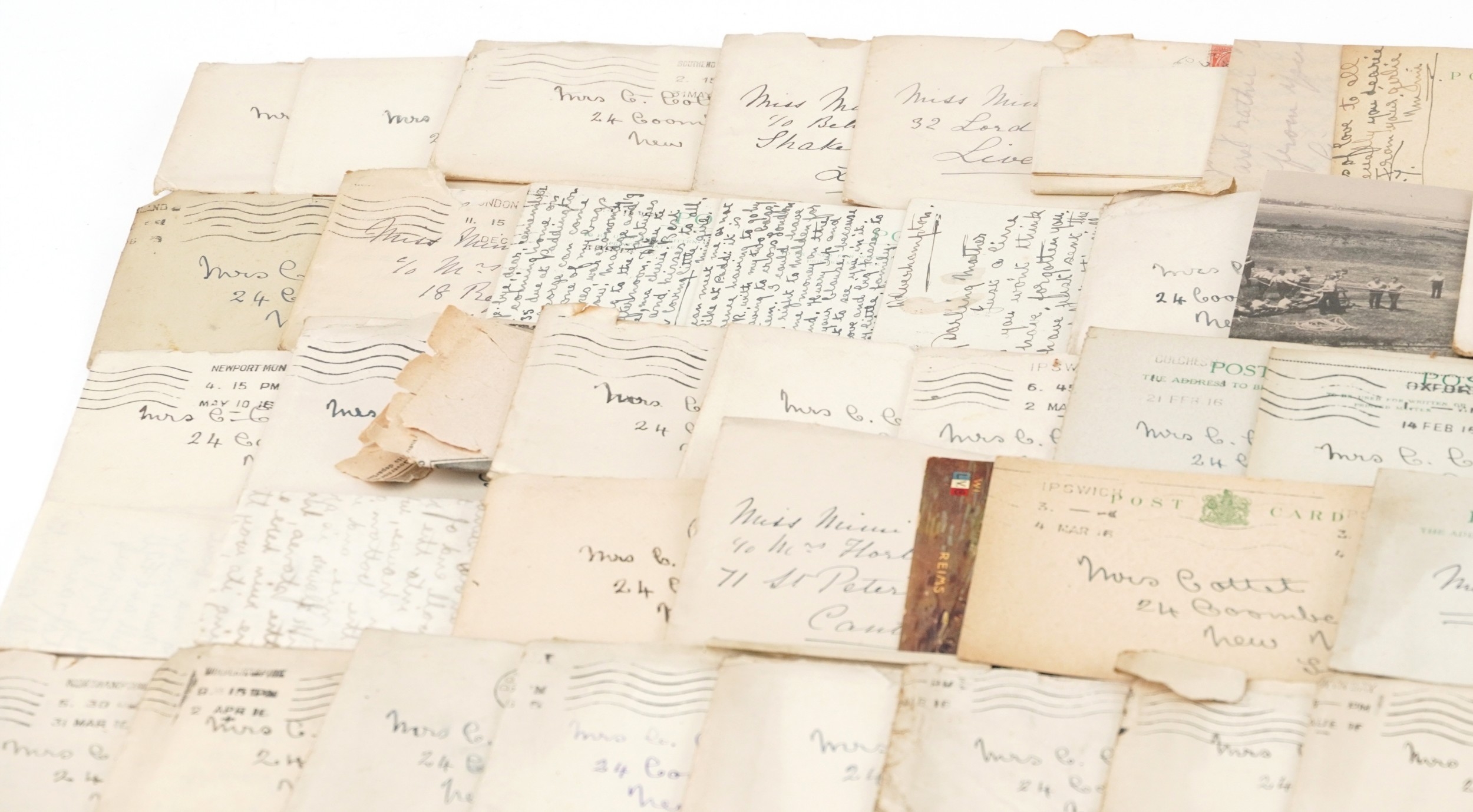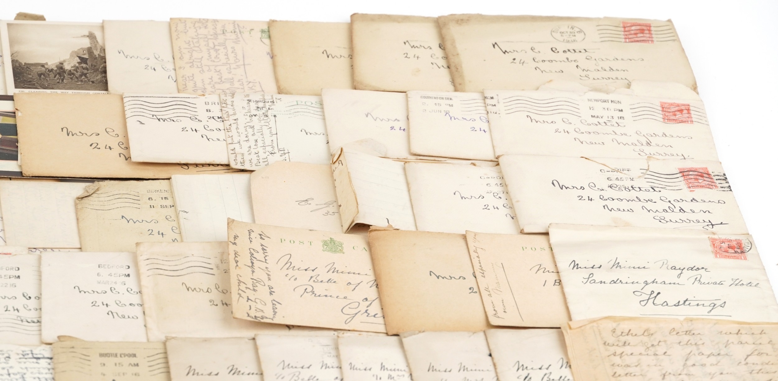 A large collection of early 20th century wartime handwritten letters and envelopes addressed to Miss Cottet and Miss Mimi Raydon (mother and daughter), various addresses including Dublin and Surrey.