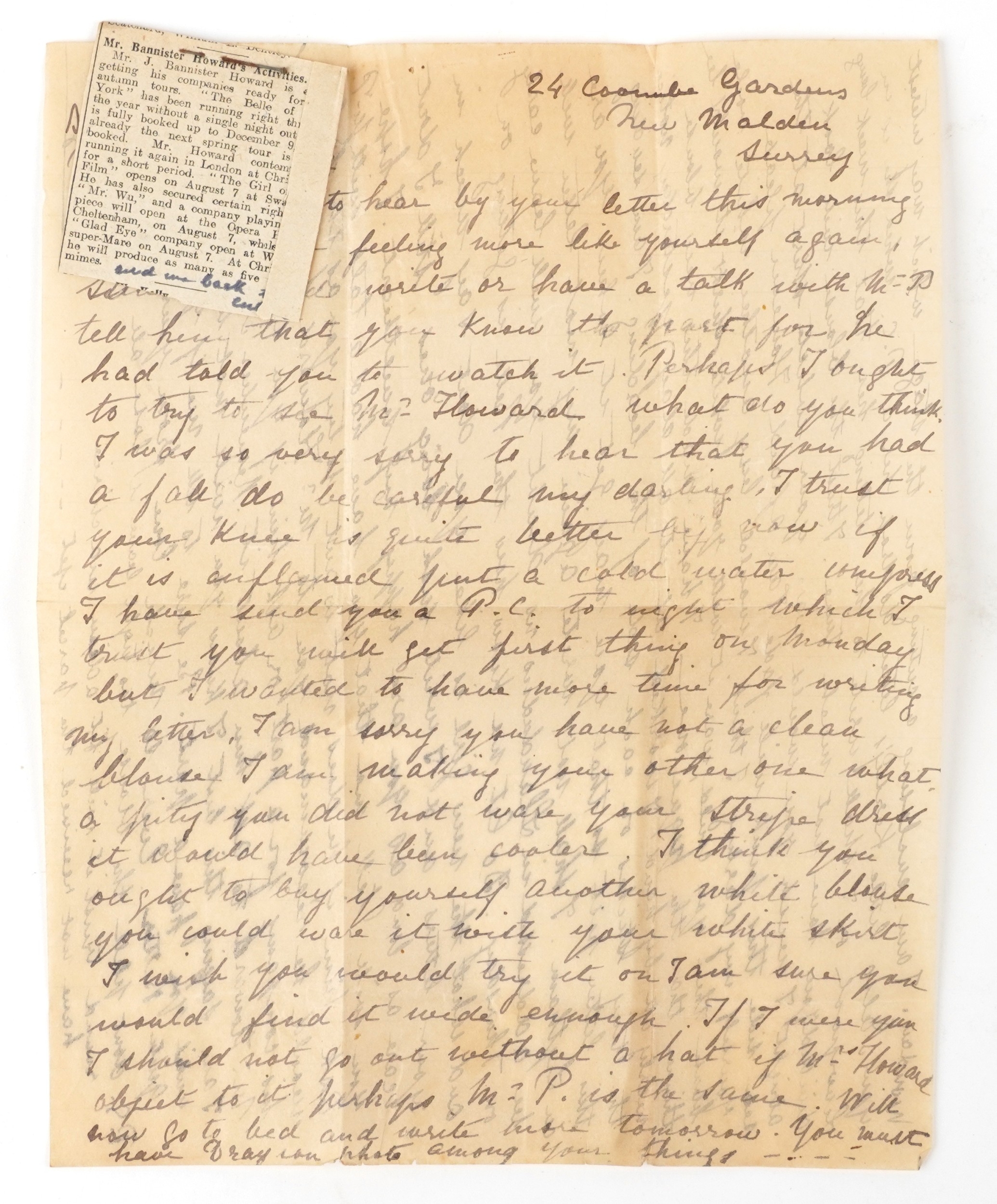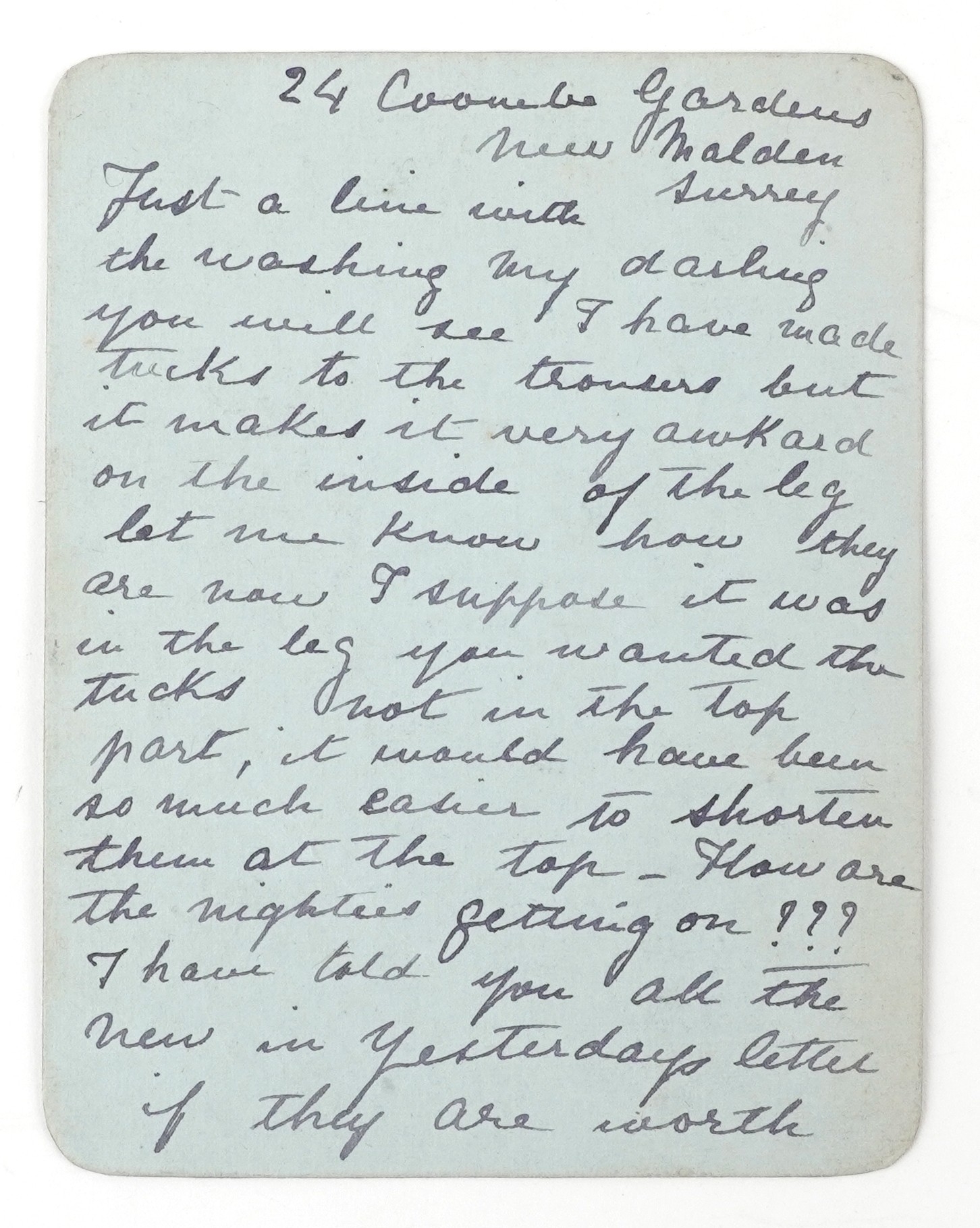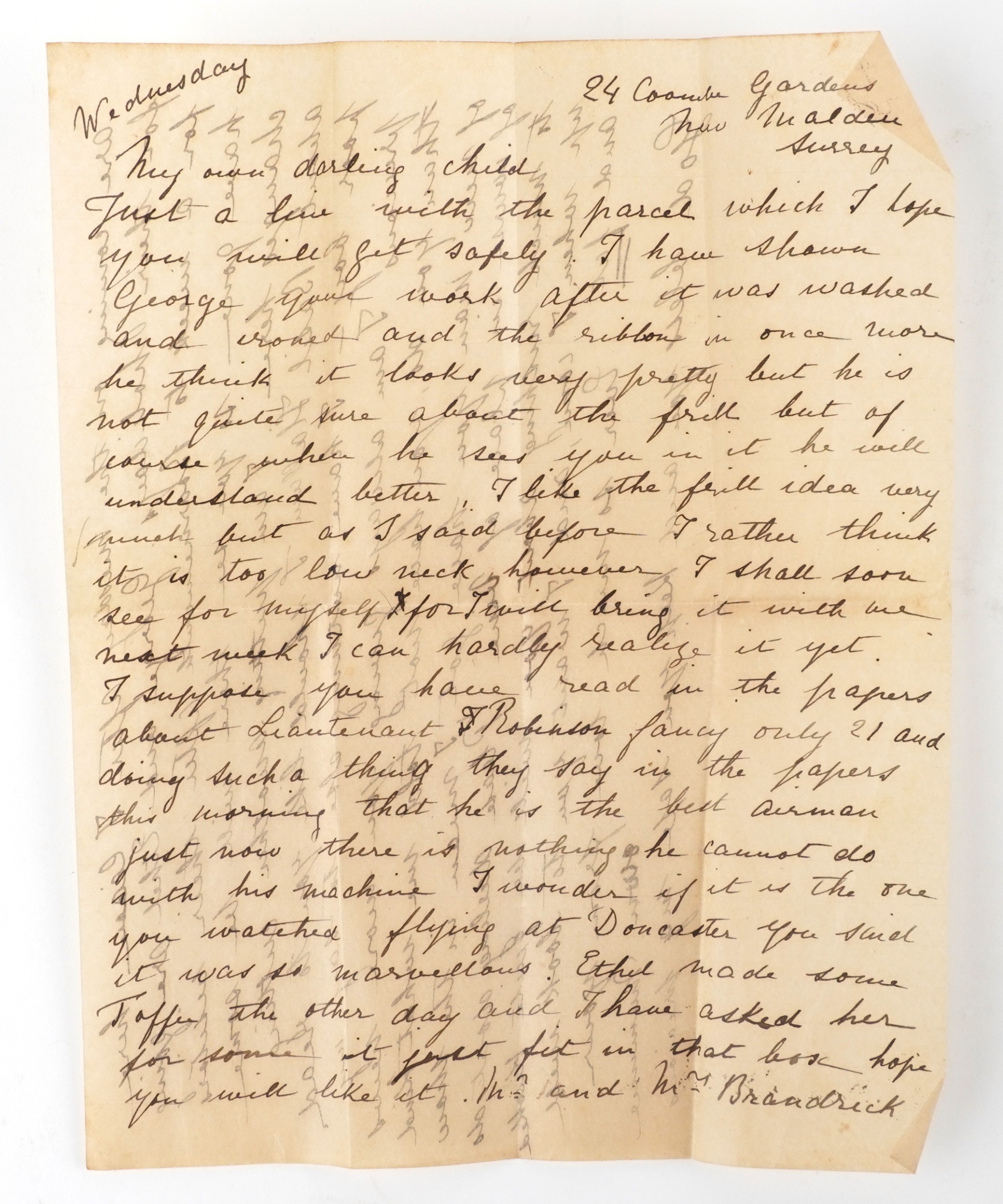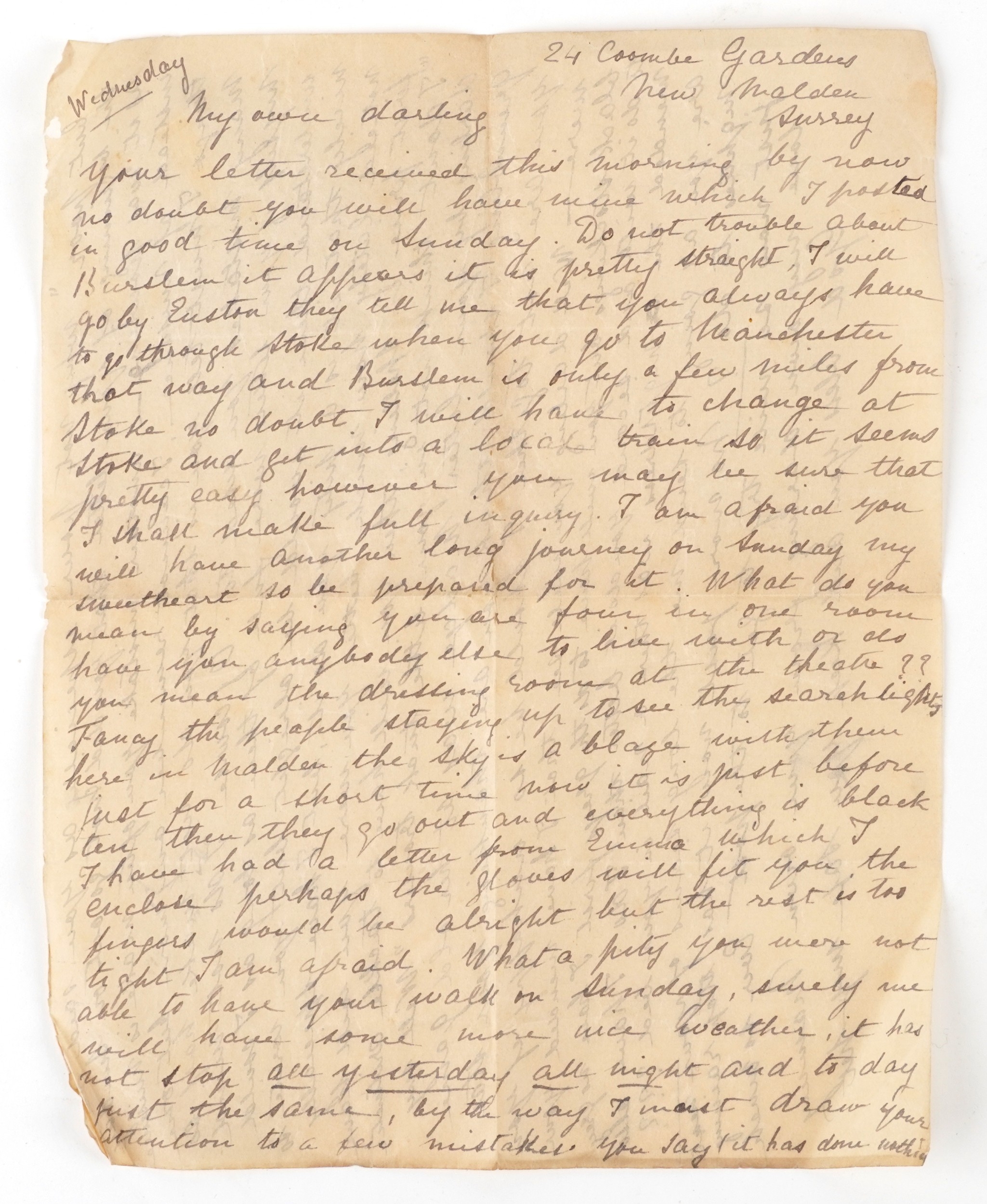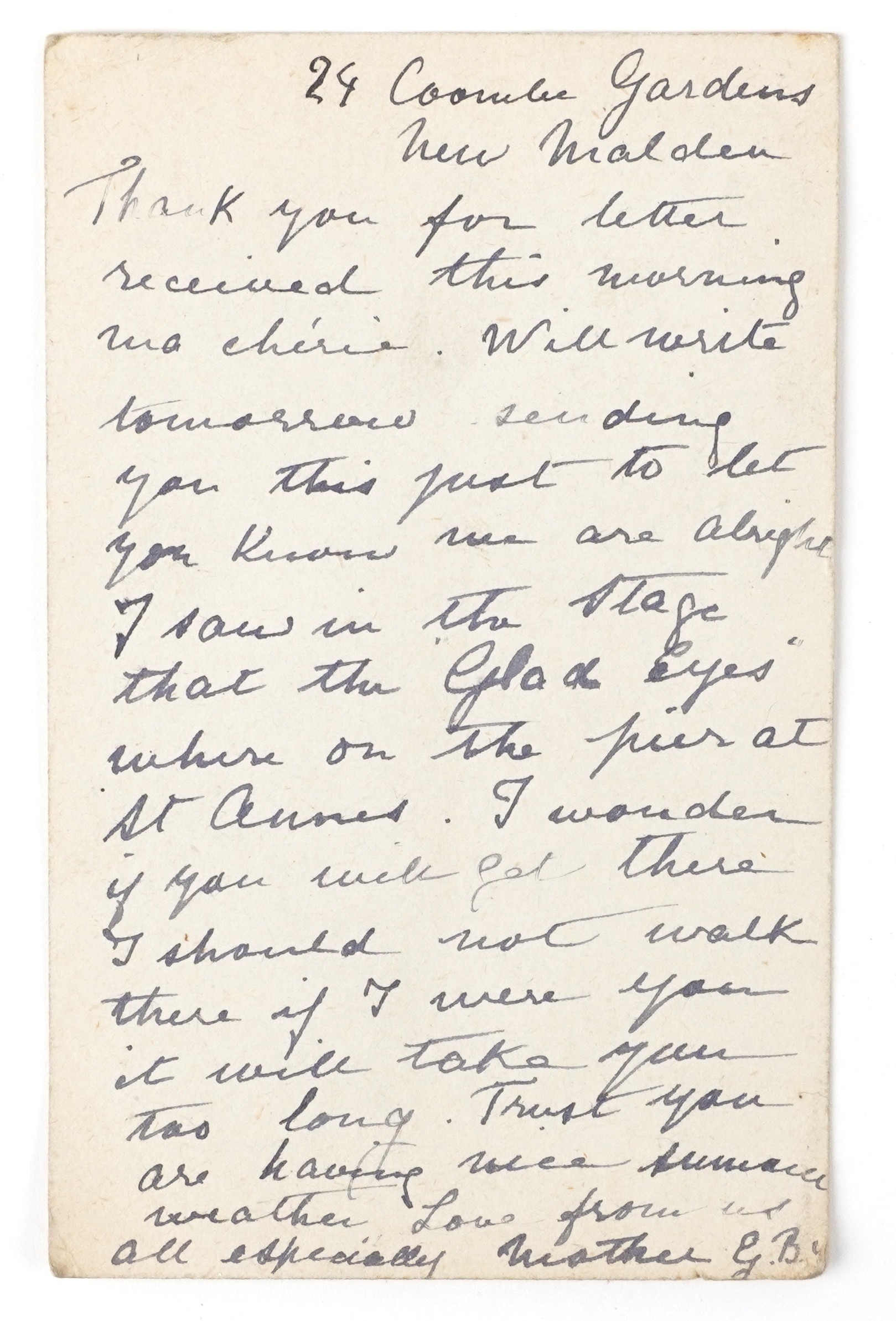 A large collection of early 20th century wartime handwritten letters and envelopes addressed to Miss Cottet and Miss Mimi Raydon (mother and daughter), various addresses including Dublin and Surrey.