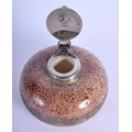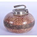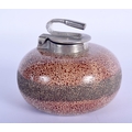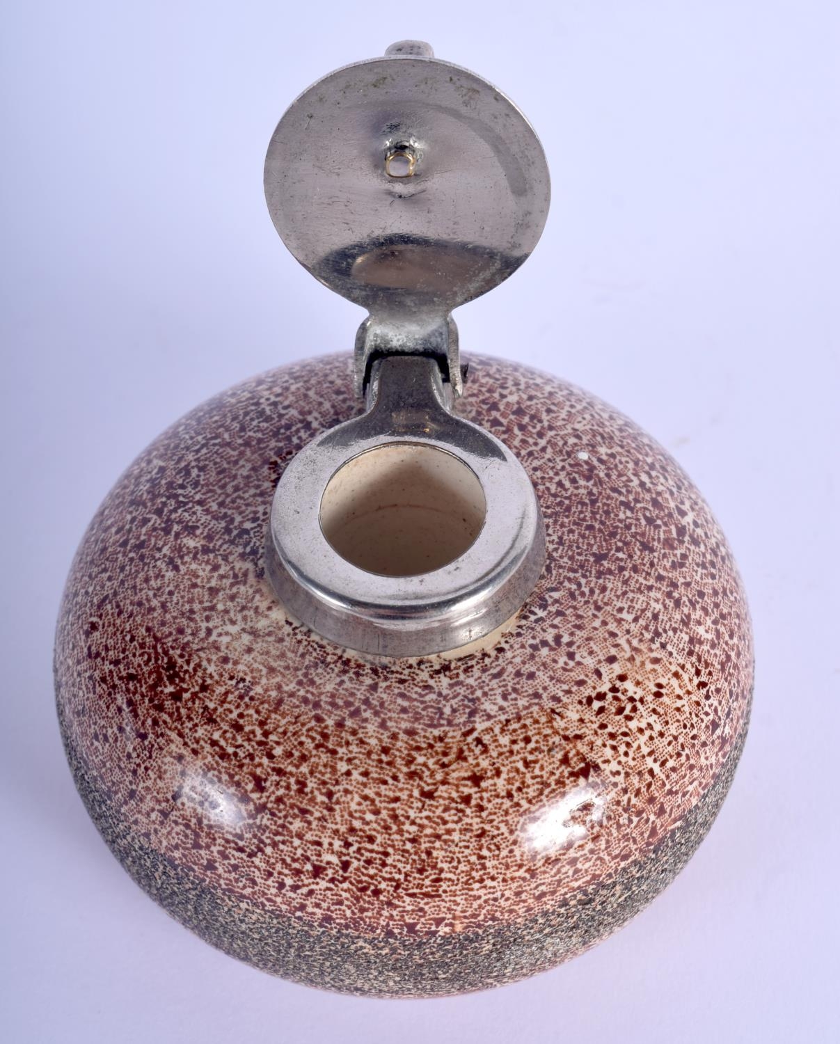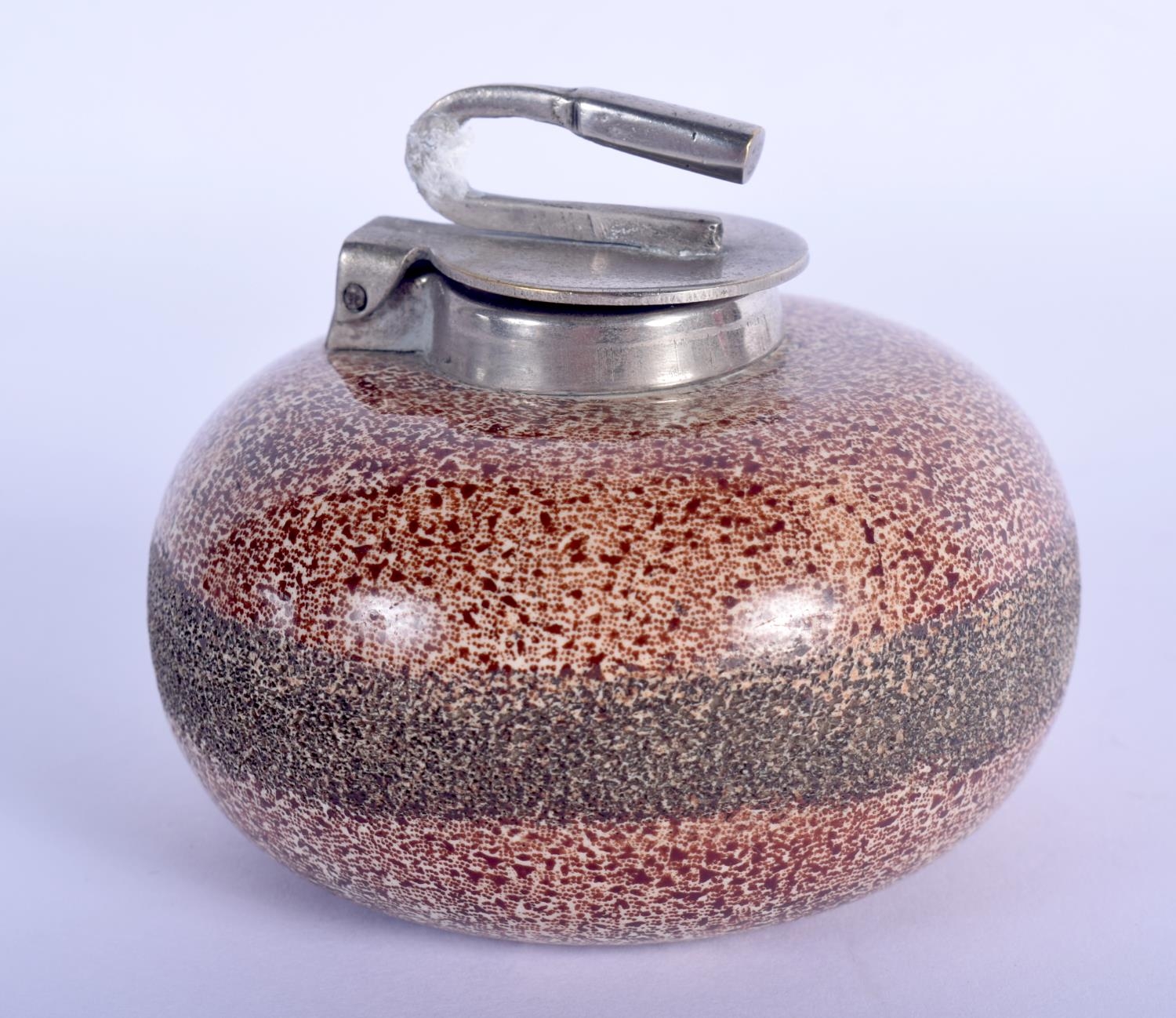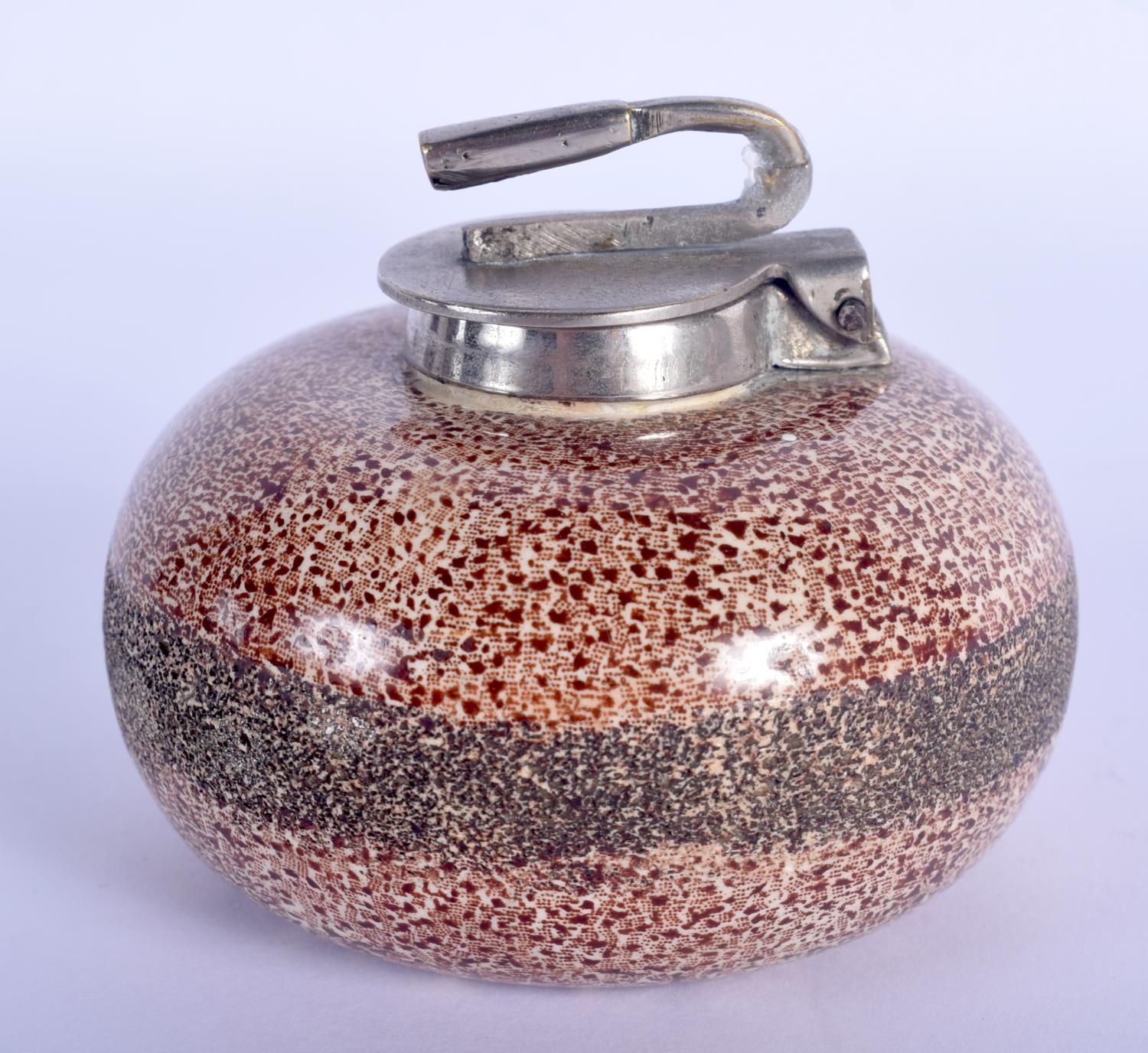 A CHARMING ANTIQUE SCOTTISH PAINTED POTTERY CURLING STONE INKWELL with silver plated mounts. 7.5 cm wide.