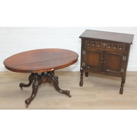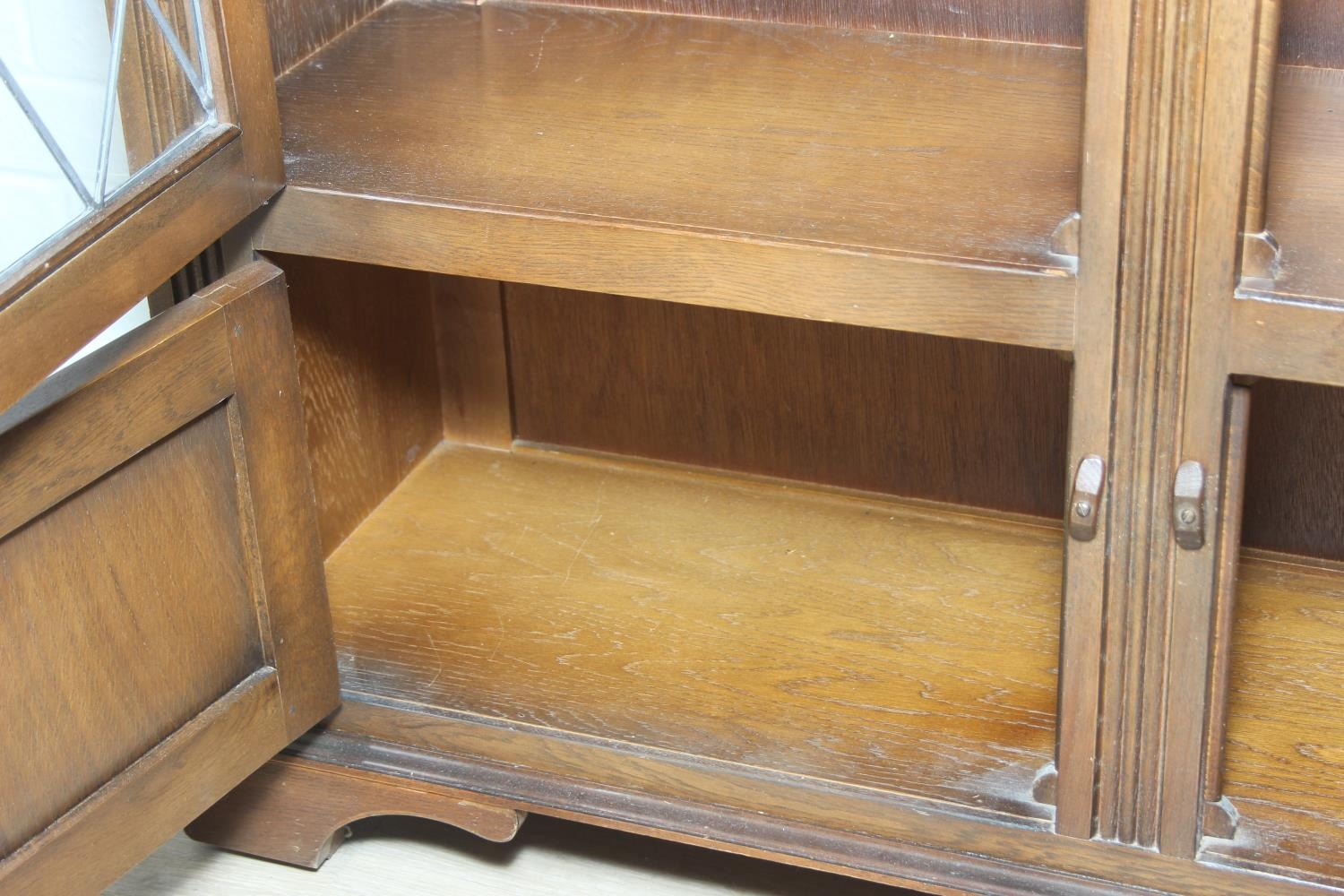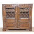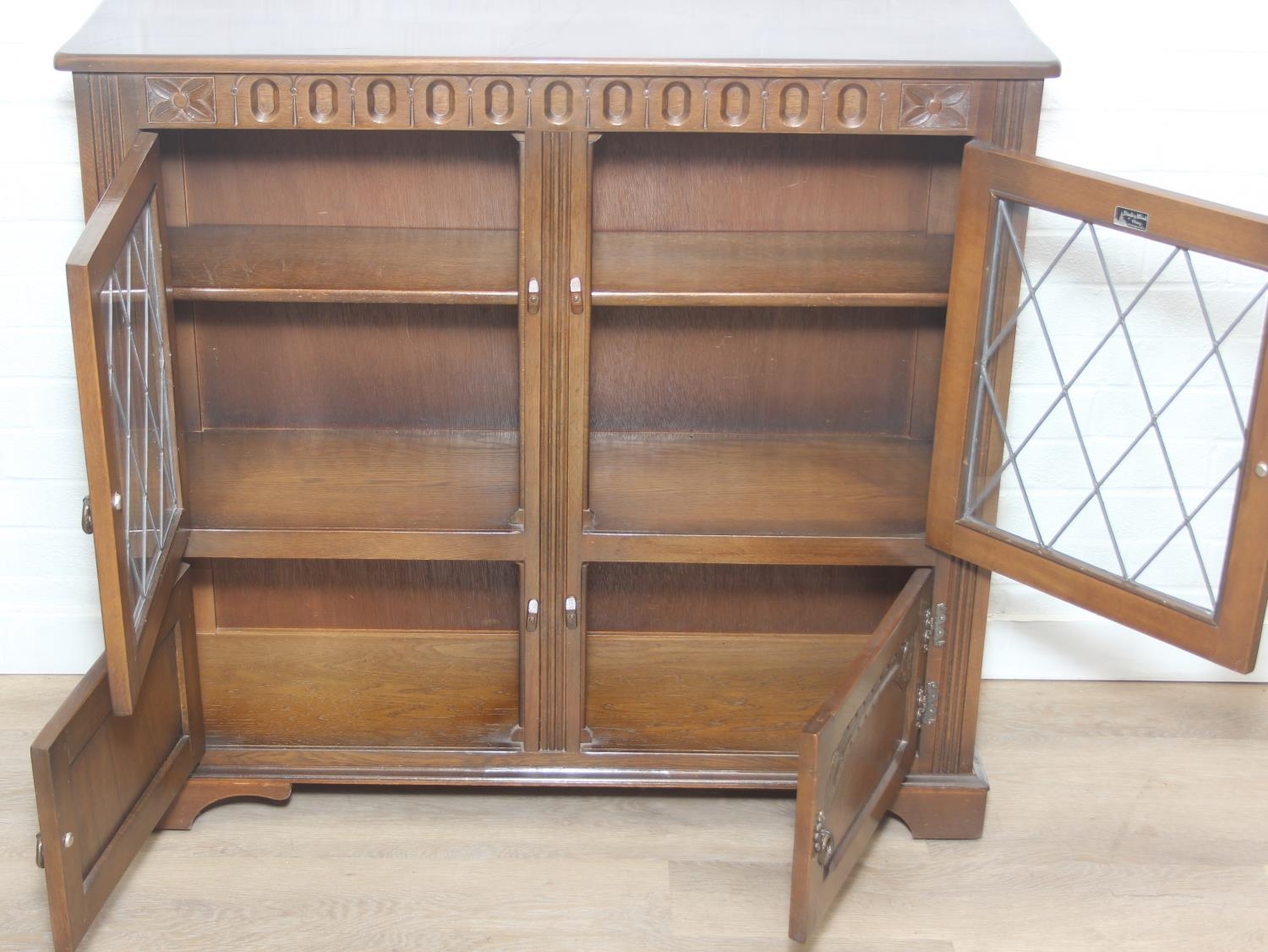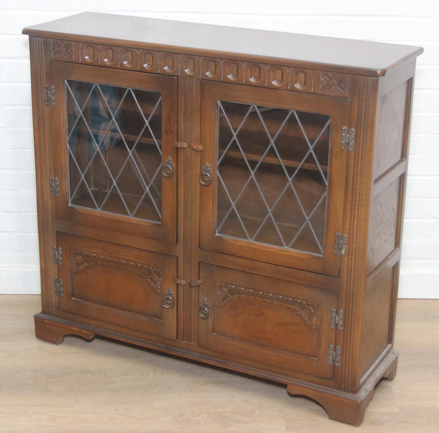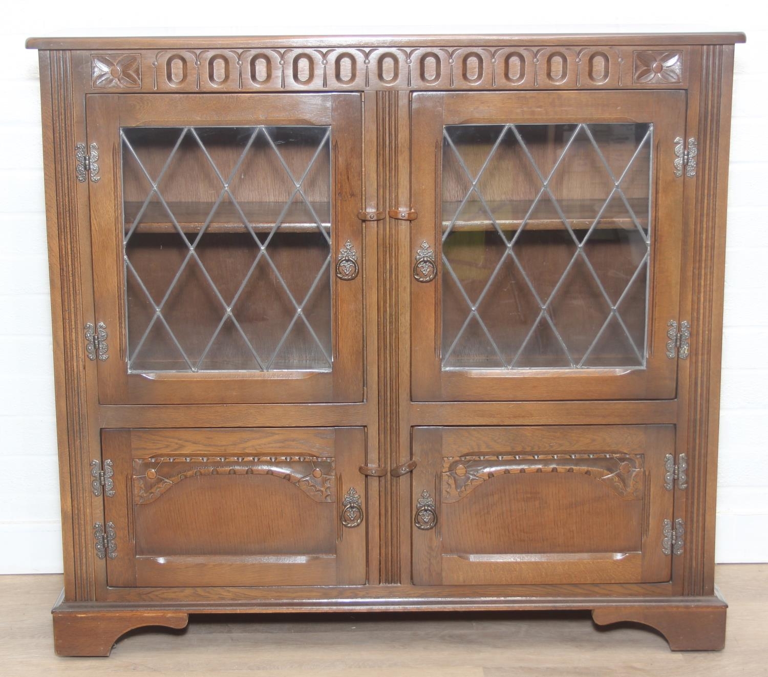 Stanley Wood of Olney - side cupboard with two leaded glazed cupboards over two smaller cupboards, 108cm x 33cm x 99cm