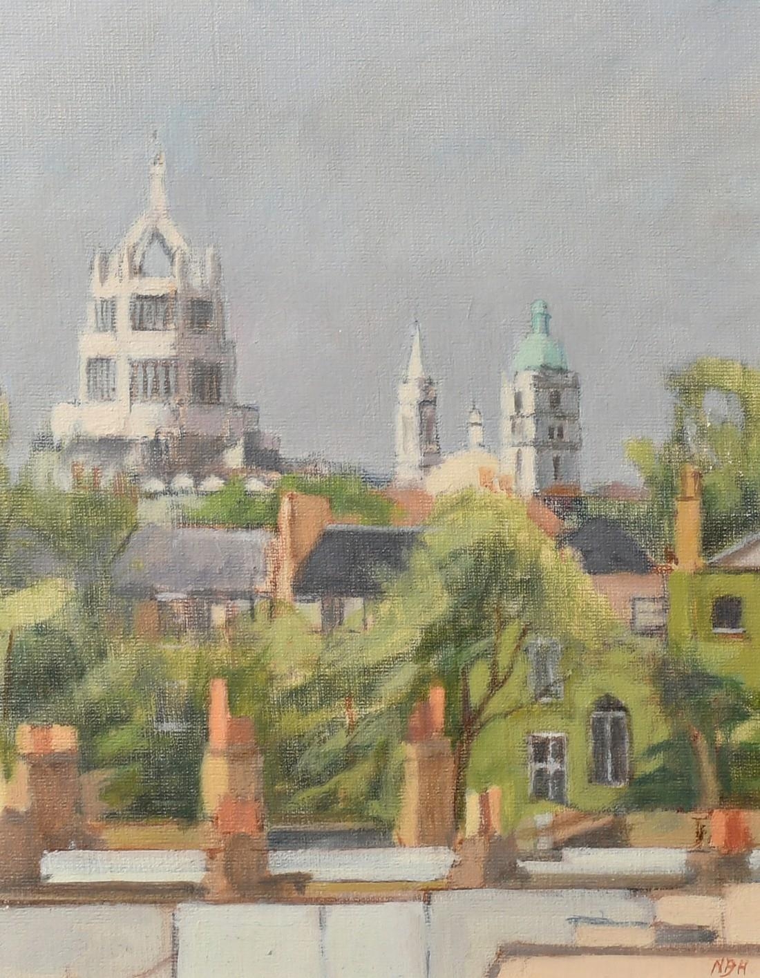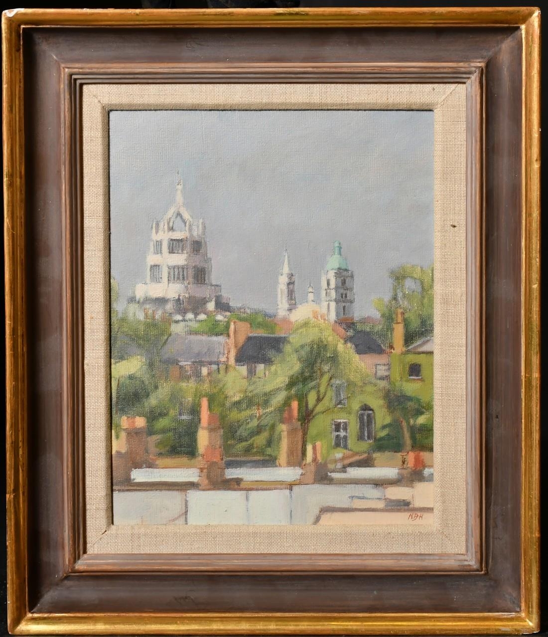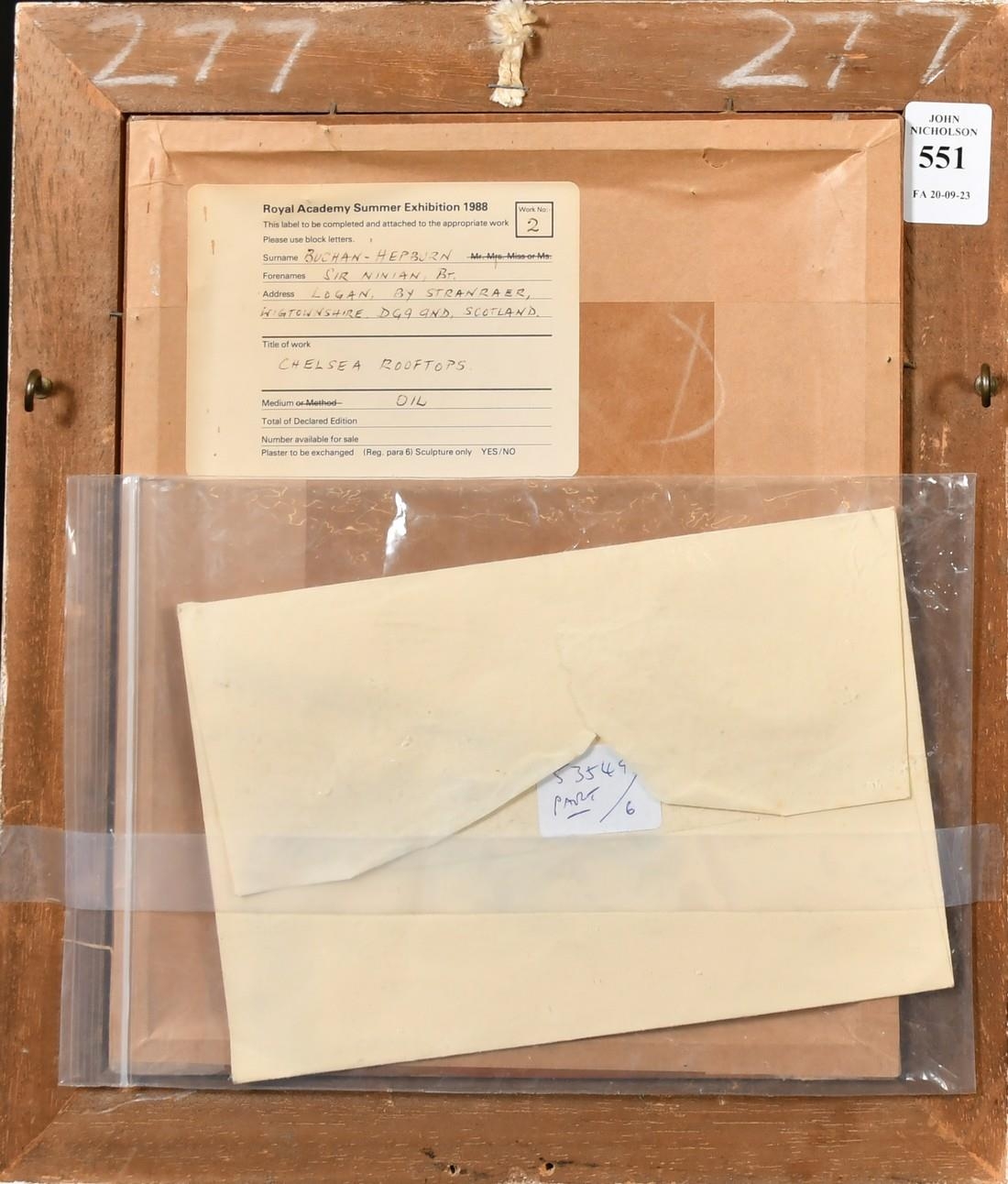 Sir Ninian Buchan-Hepburn, 'Chelsea Rooftops', oil on board, initialled, Royal Academy Summer Exhibition 1988 verso, 8.75" x 7", (22x17.5cm).