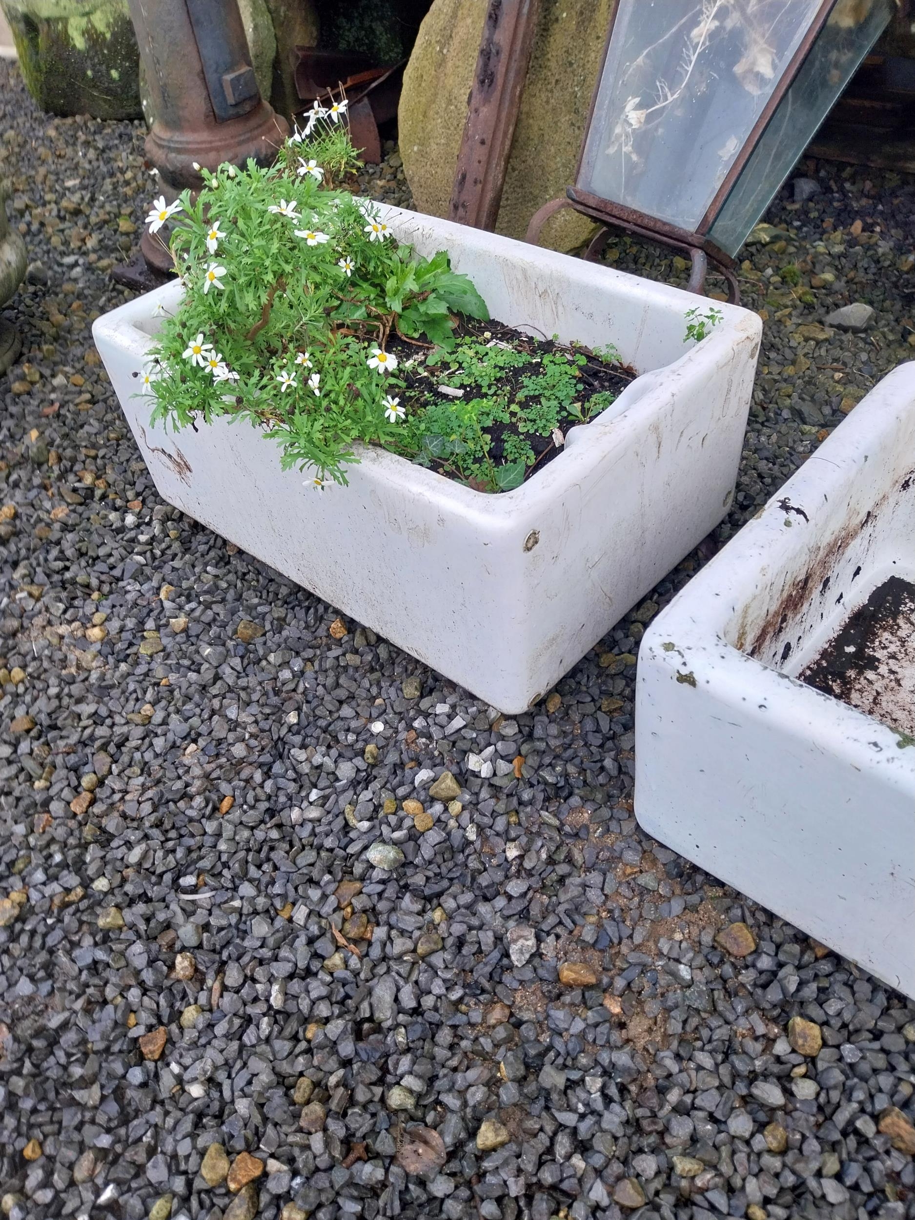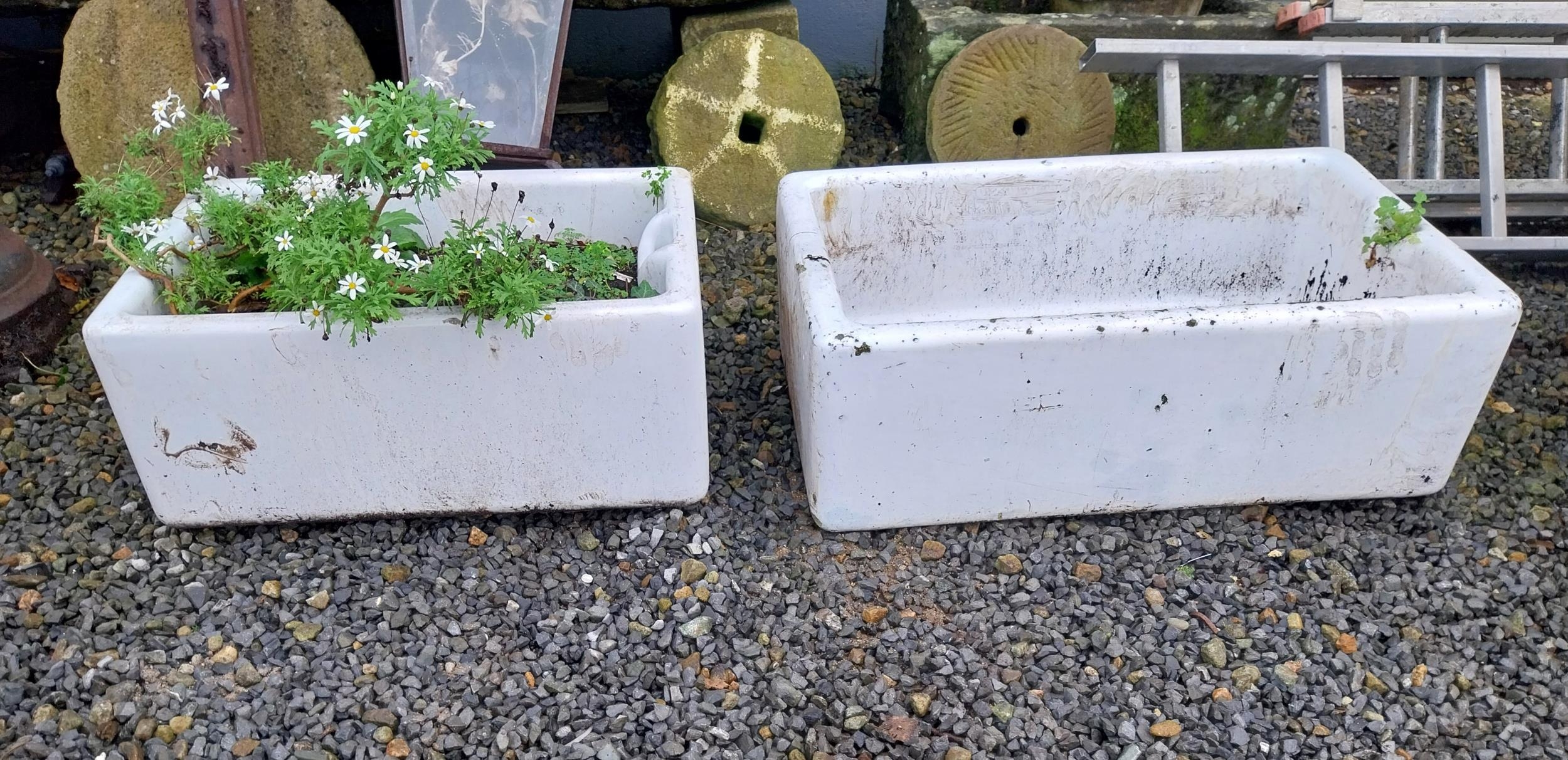 Two early 20th C. Belfast sinks. {26 cm H x 87 cm W x 46 cm D} and {25 cm H x 60 cm W x 40 cm D}.