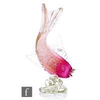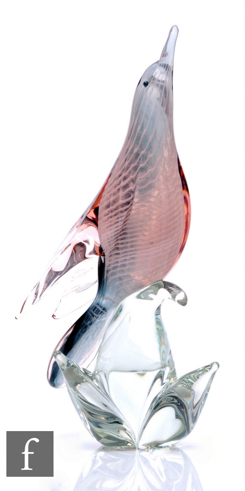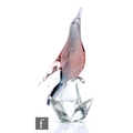 Unattributed maker - A Murano glass figure modelled as a stylised bird, with opal pulled trails and a grey band cased in clear, to a clear base, height 36cm.