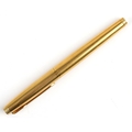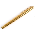 A gold plated engine turned Parker fountain pen having a 14ct gold nib, 12.5cm in length, with box.