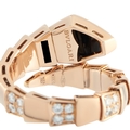 A Bvlgari Serpenti Viper 18K Rose Gold Diamond Ring. Includes pav Diamonds set in 18K Rose Gold and glossy black enamel insert. 5mm wide. Good Condition and includes a gift box. Ring size: L. Total weight: 9.1 grams. *This item is held at Cadmore USA Office in Pennsylvania, USA and will be shipped from there. Buyers will be responsible for direct shipping payments.*