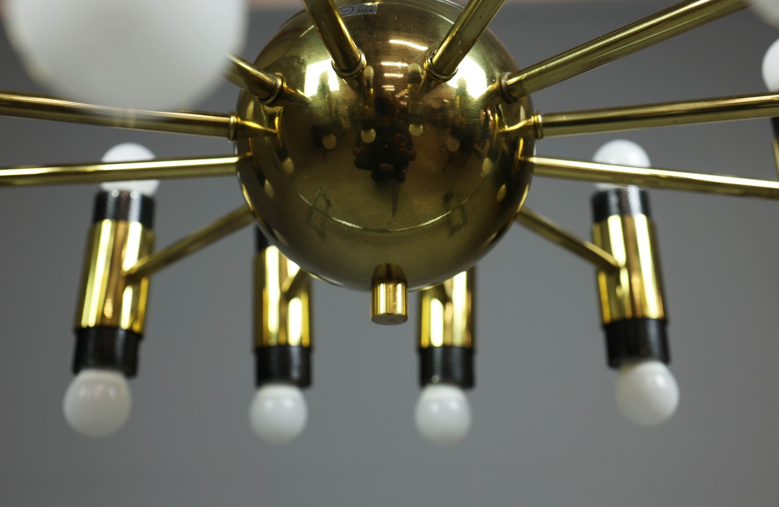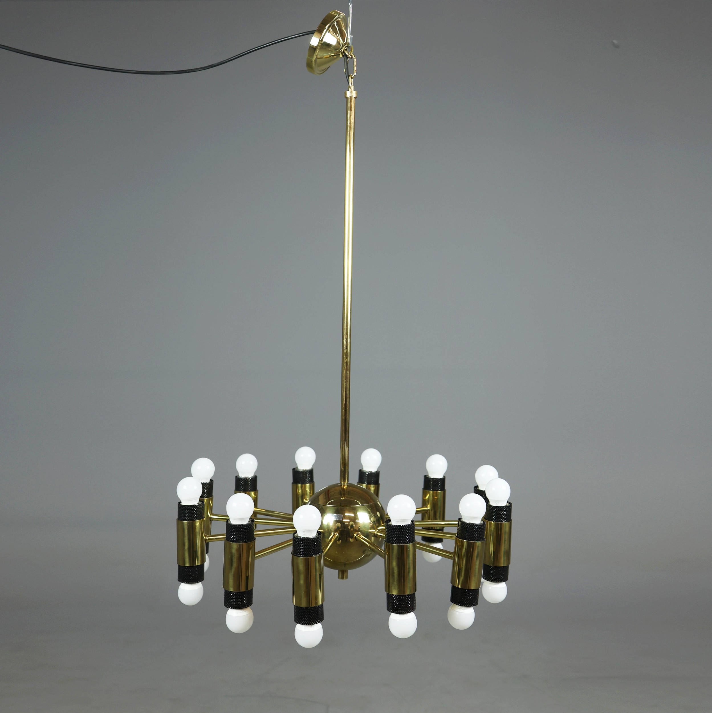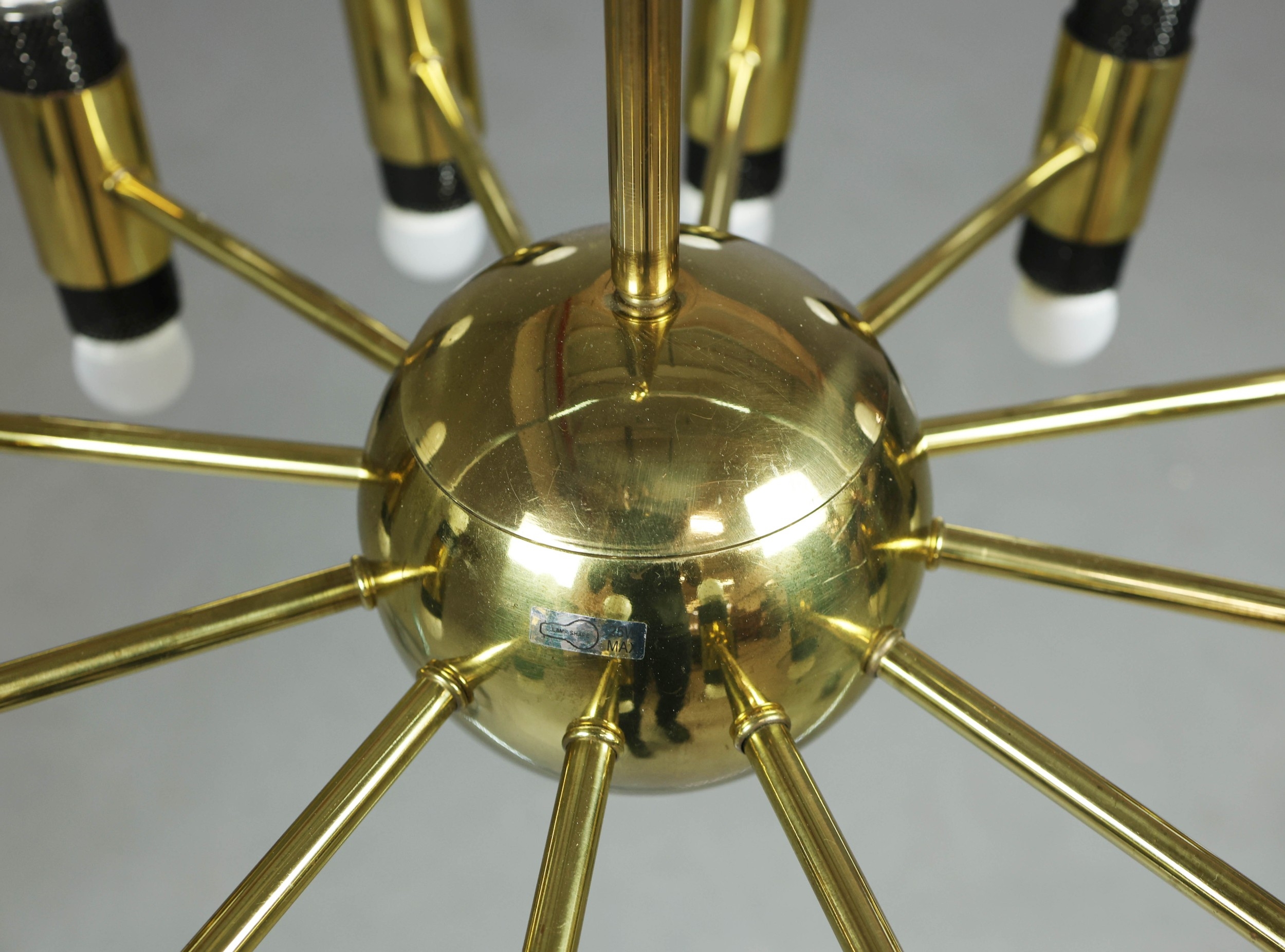 1970s AMERICAN GILT BRASS CEILING LIGHT. With twelve lights 100cm H x 62cm W.