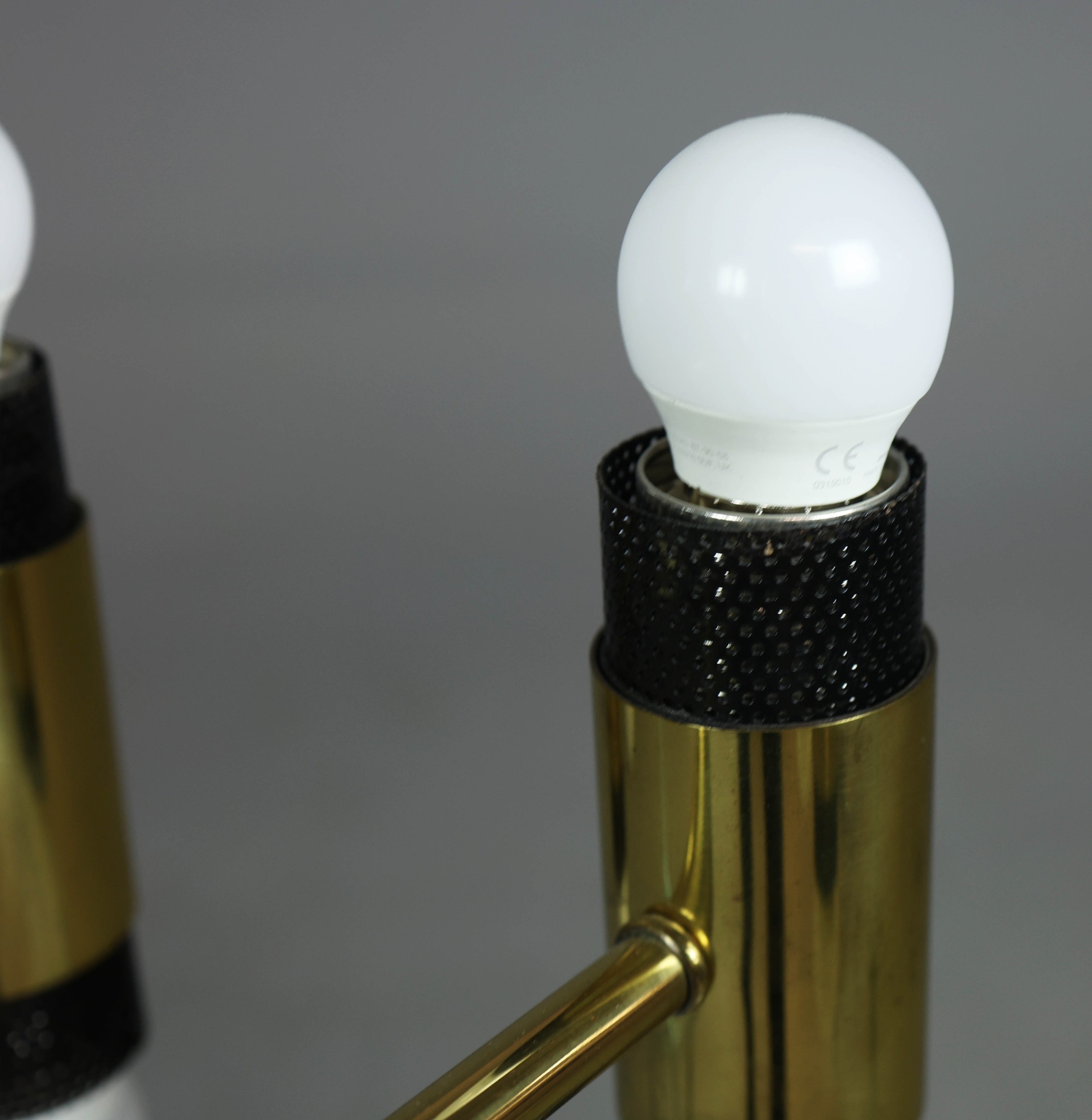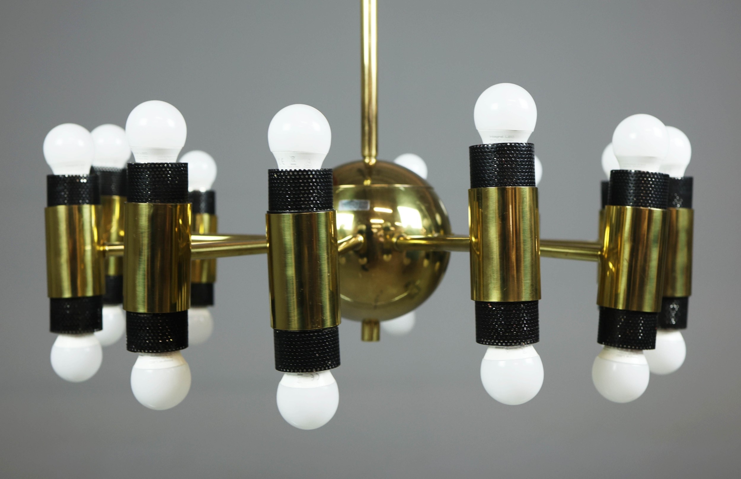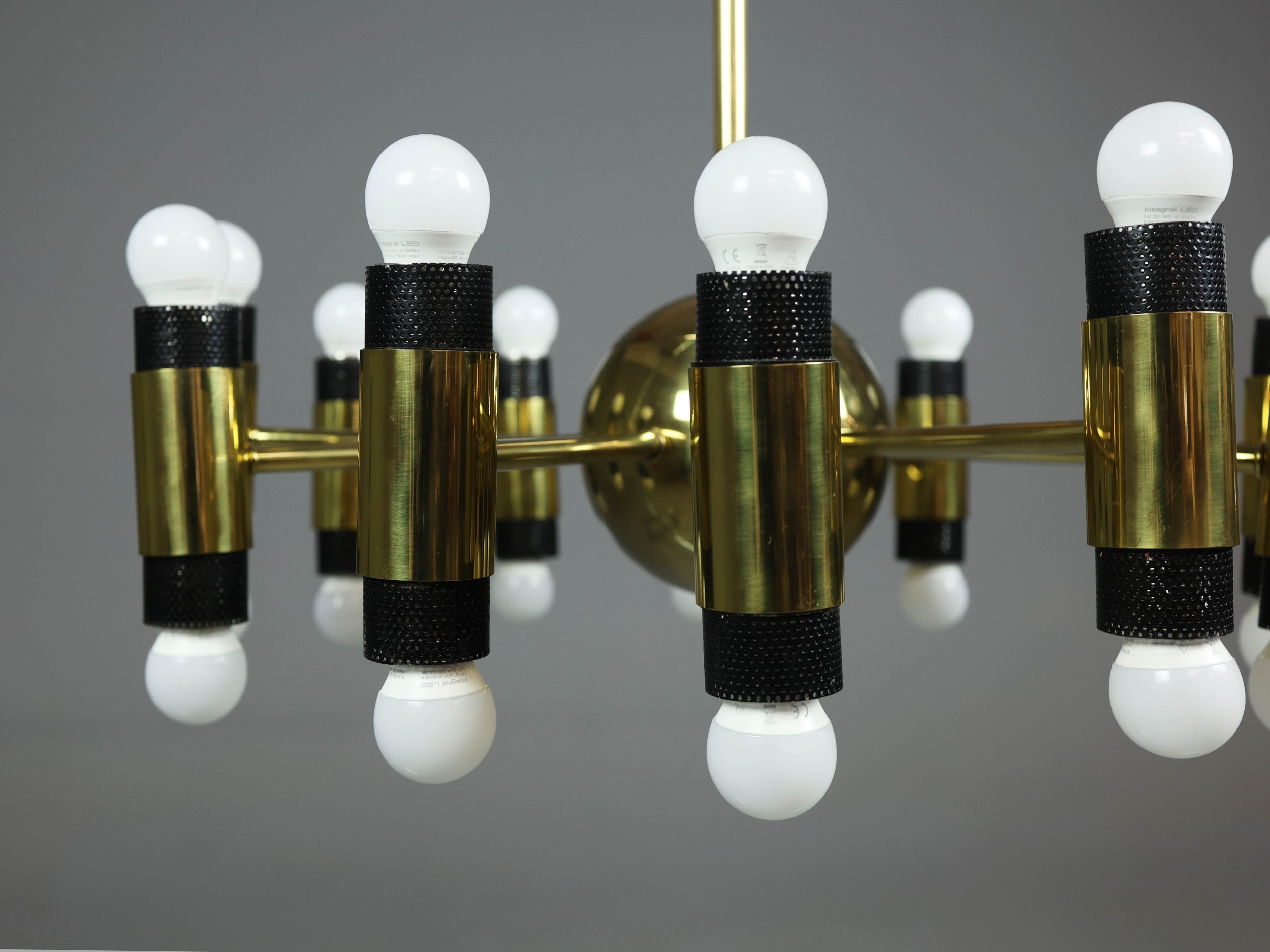 1970s AMERICAN GILT BRASS CEILING LIGHT. With twelve lights 100cm H x 62cm W.