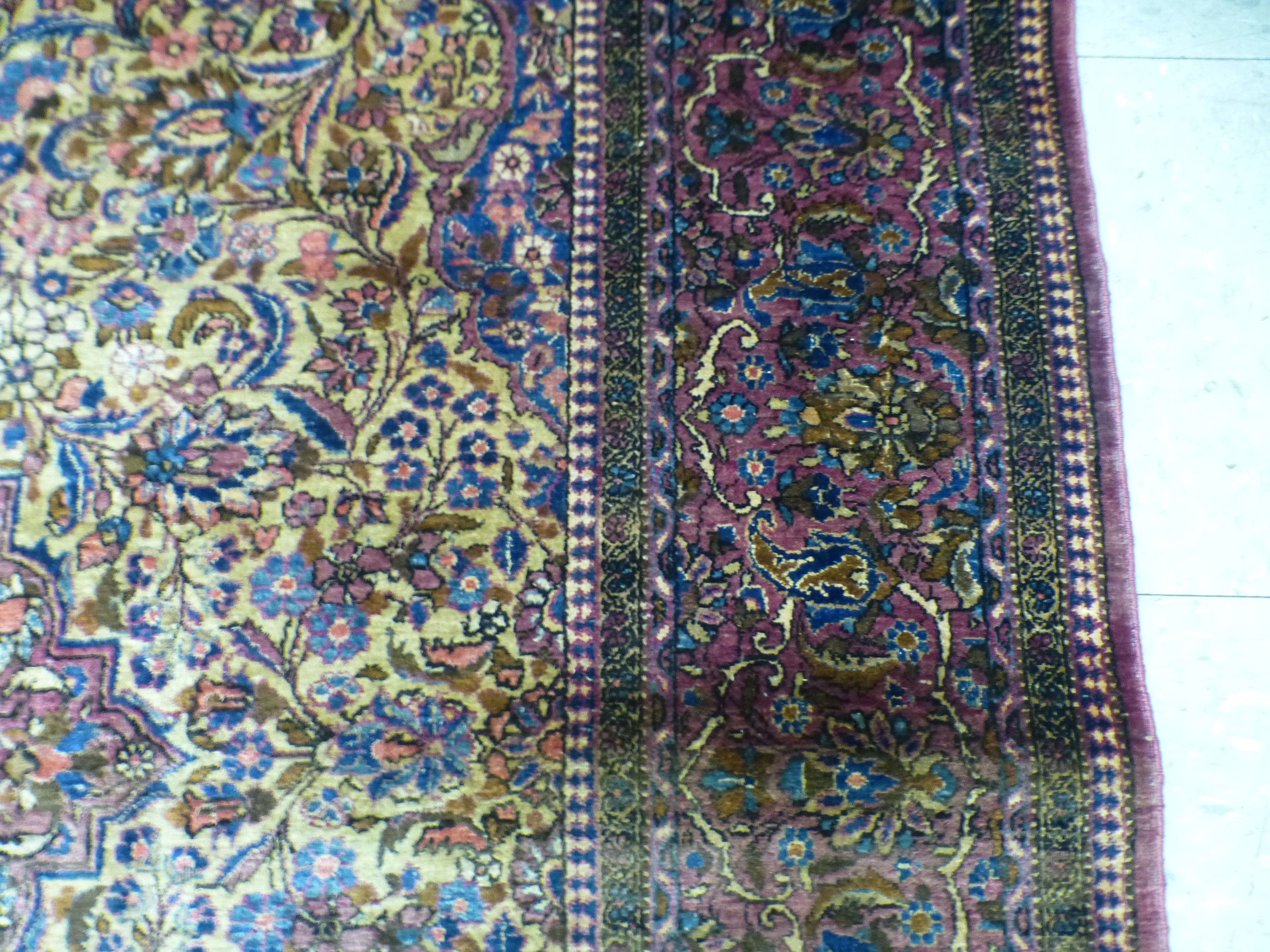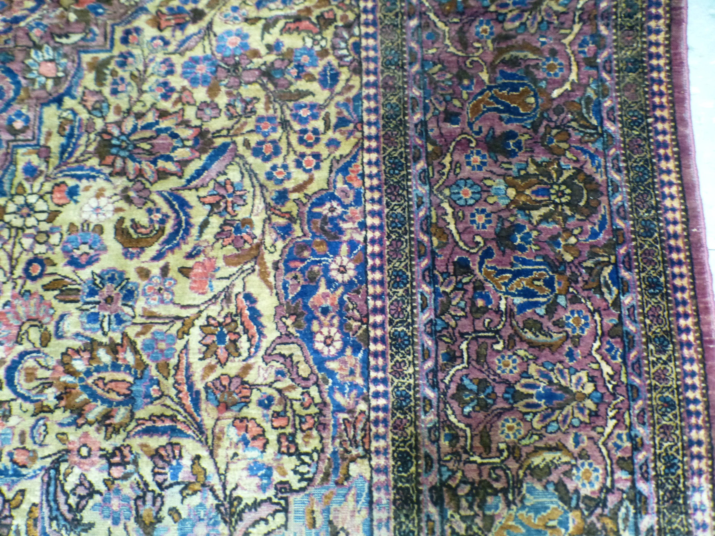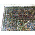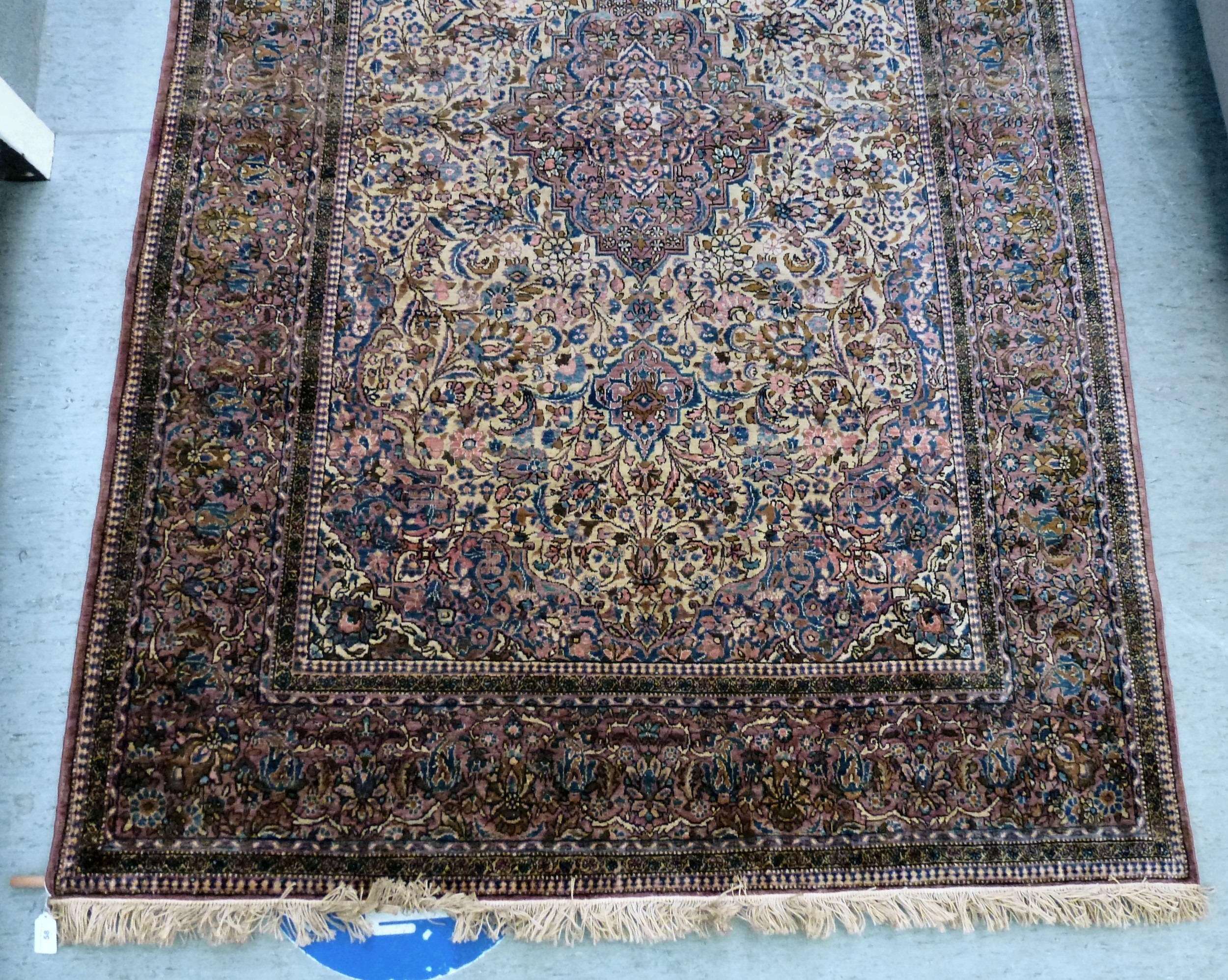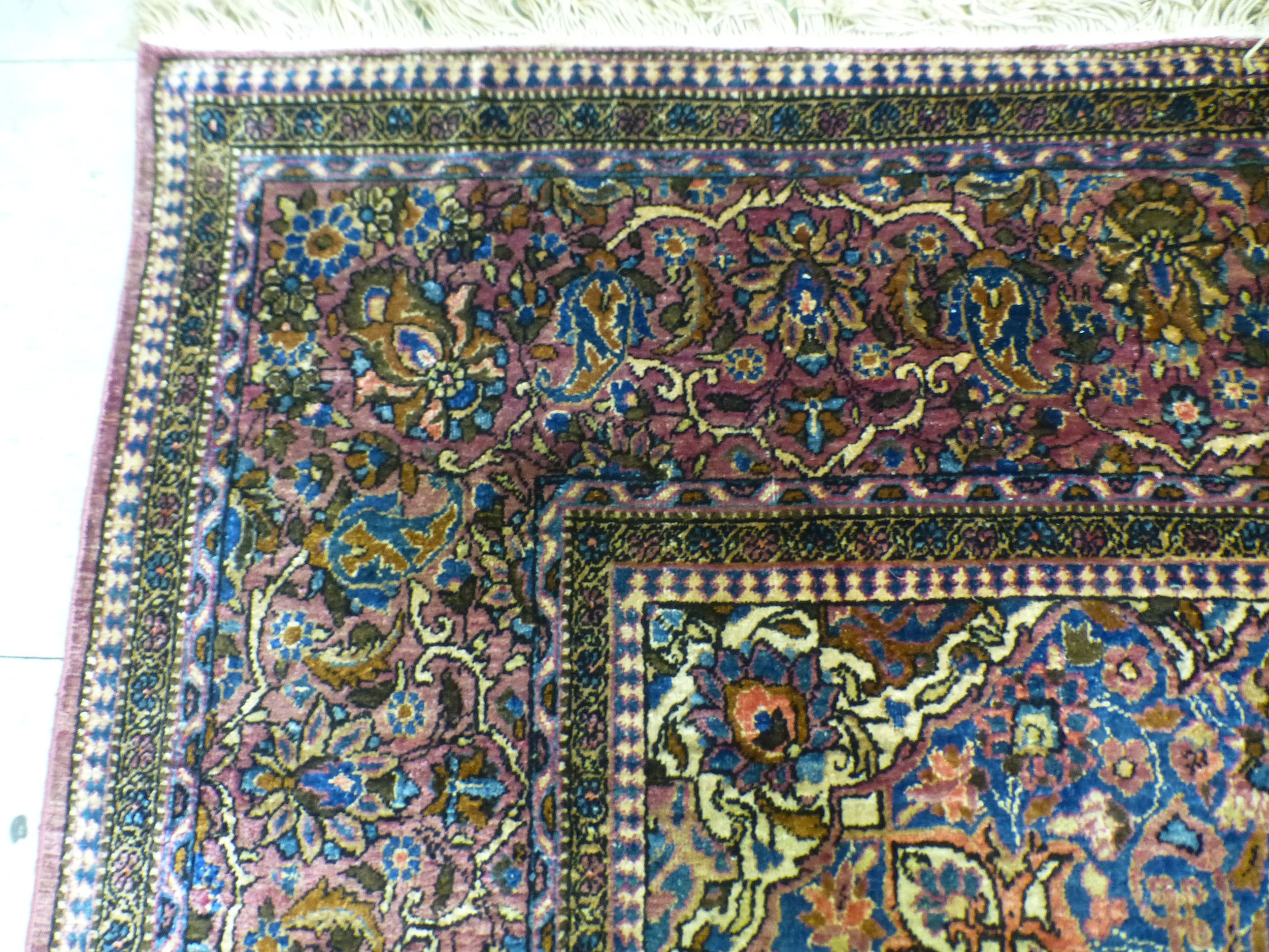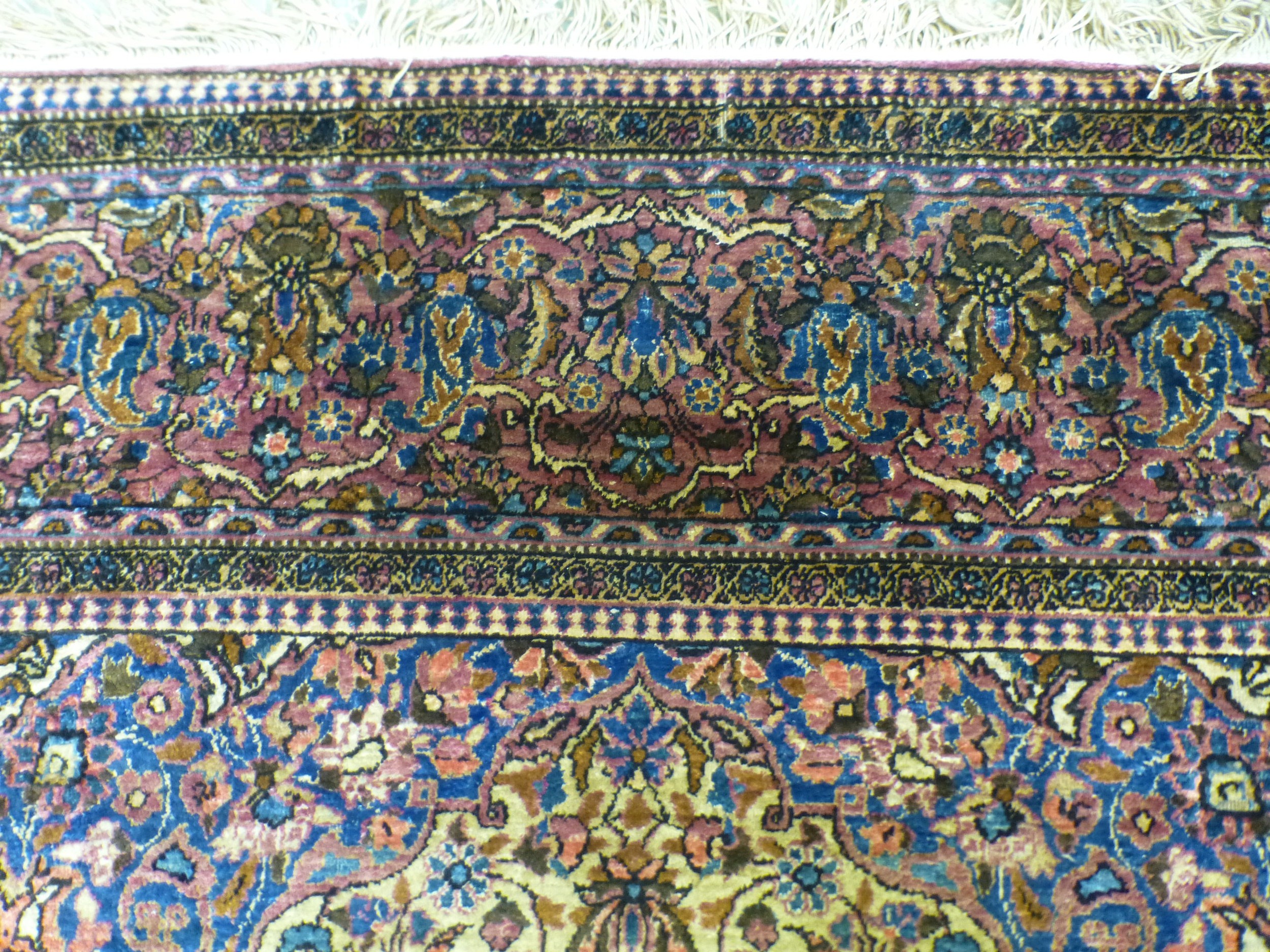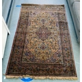 A Persian part-silk rug, decorated with dense flora, on a maroon ground 80" x 50"