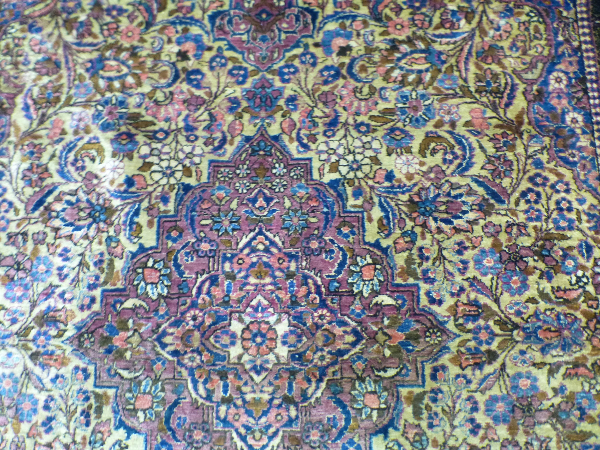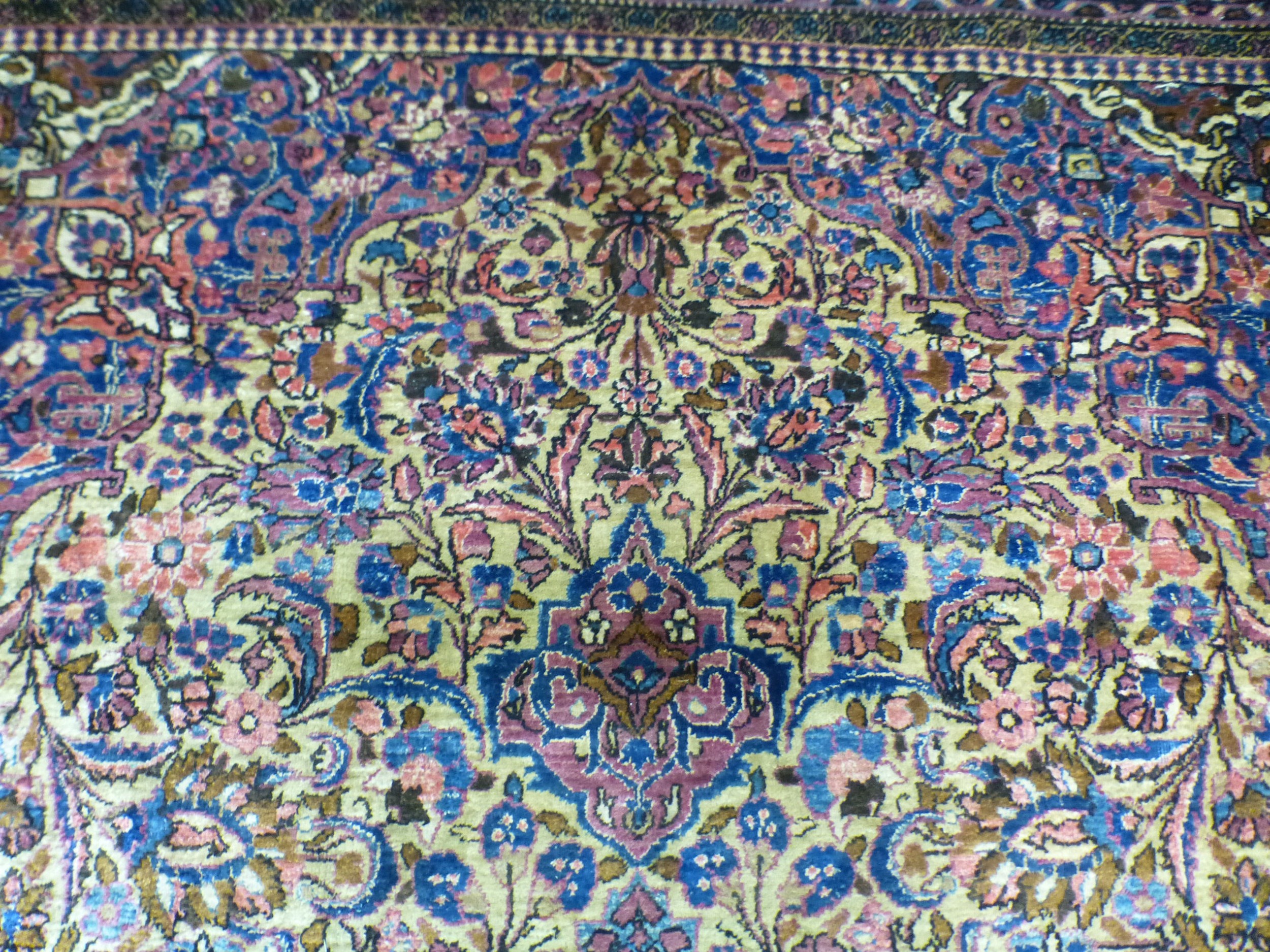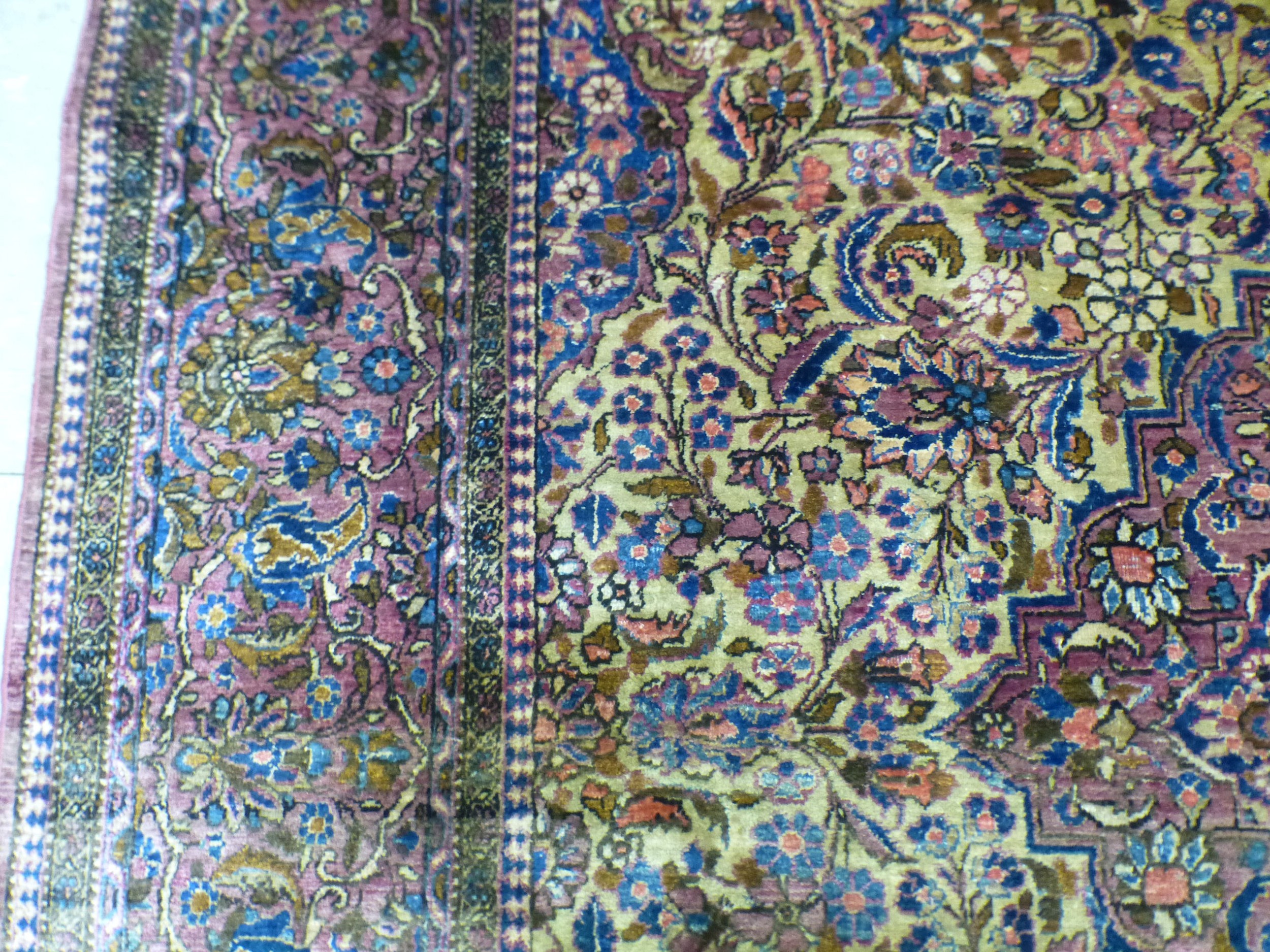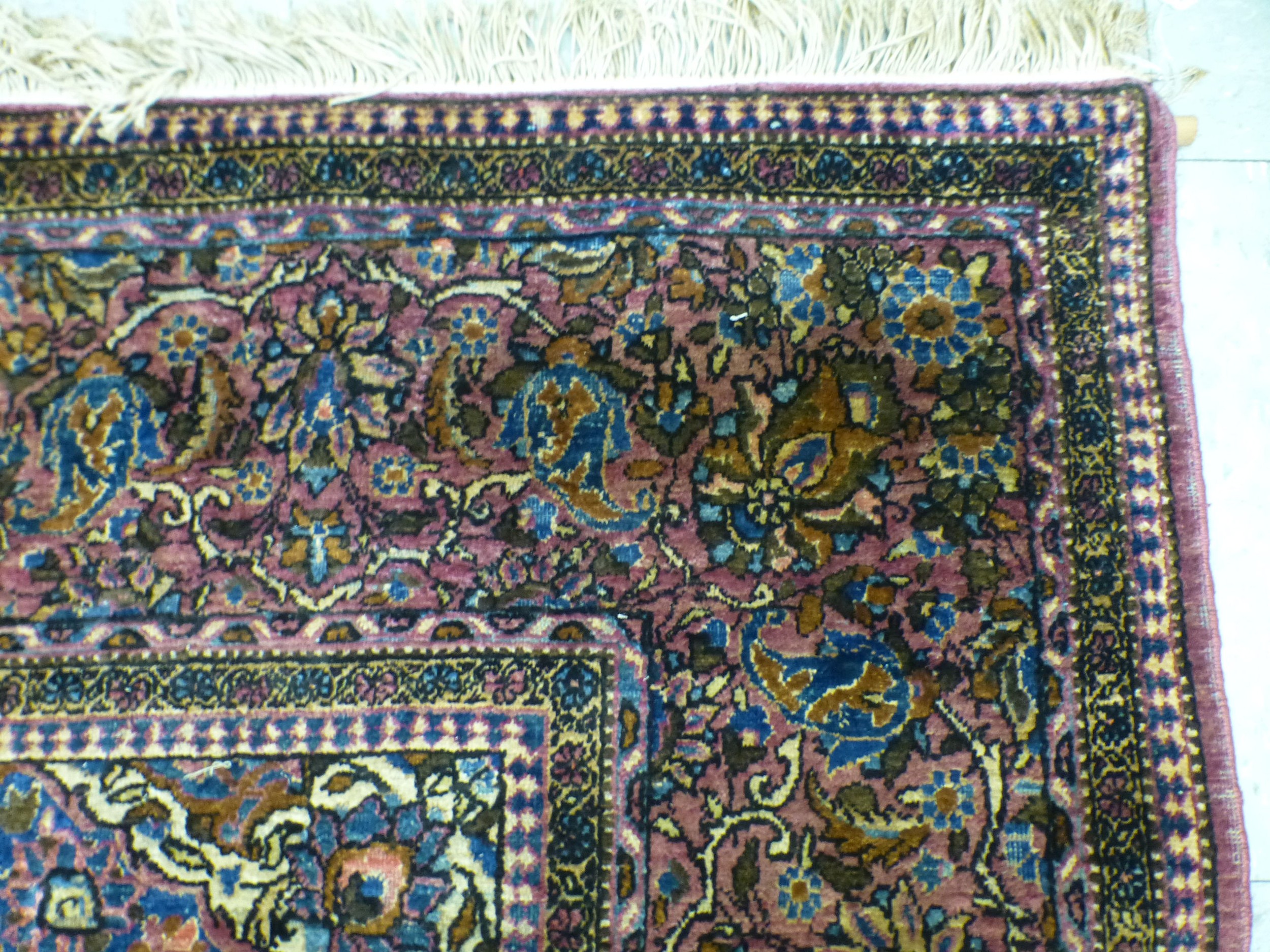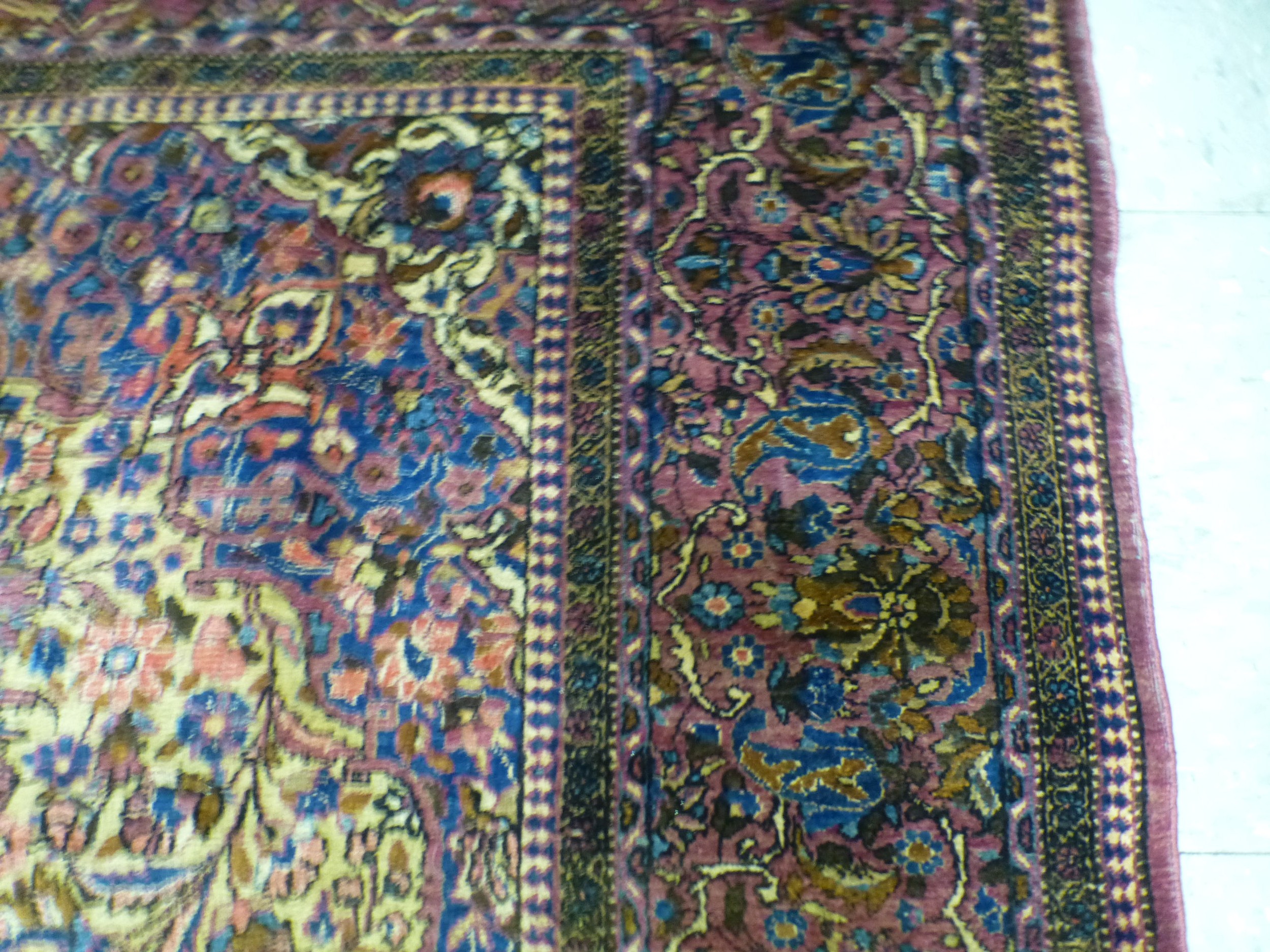 A Persian part-silk rug, decorated with dense flora, on a maroon ground 80" x 50"