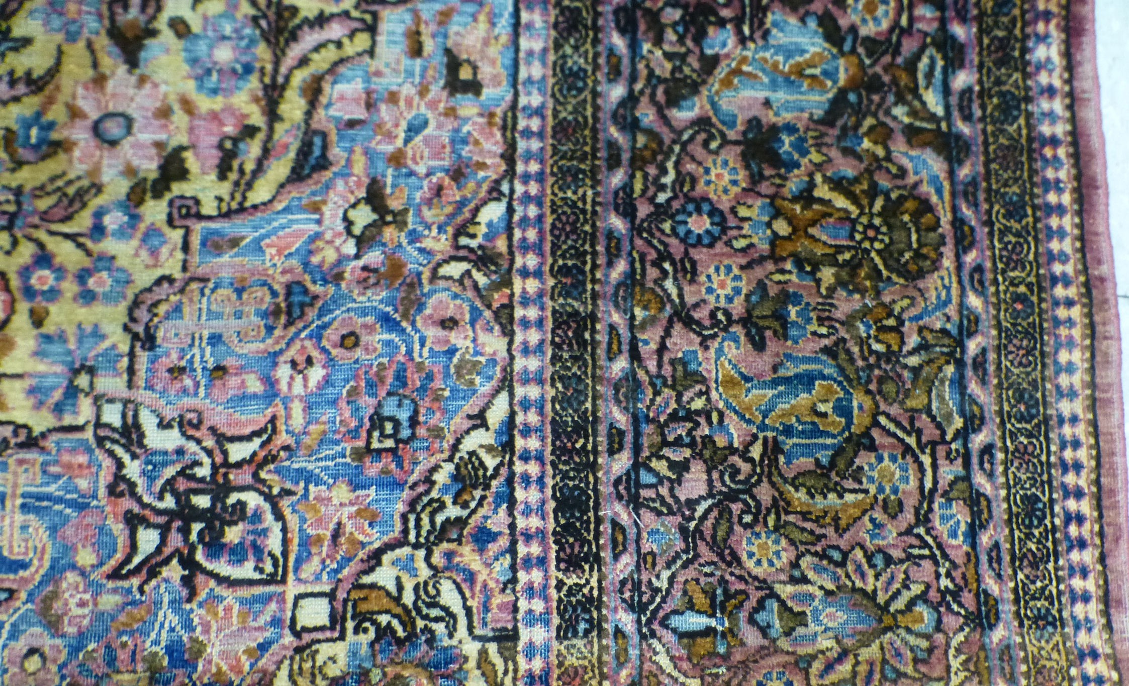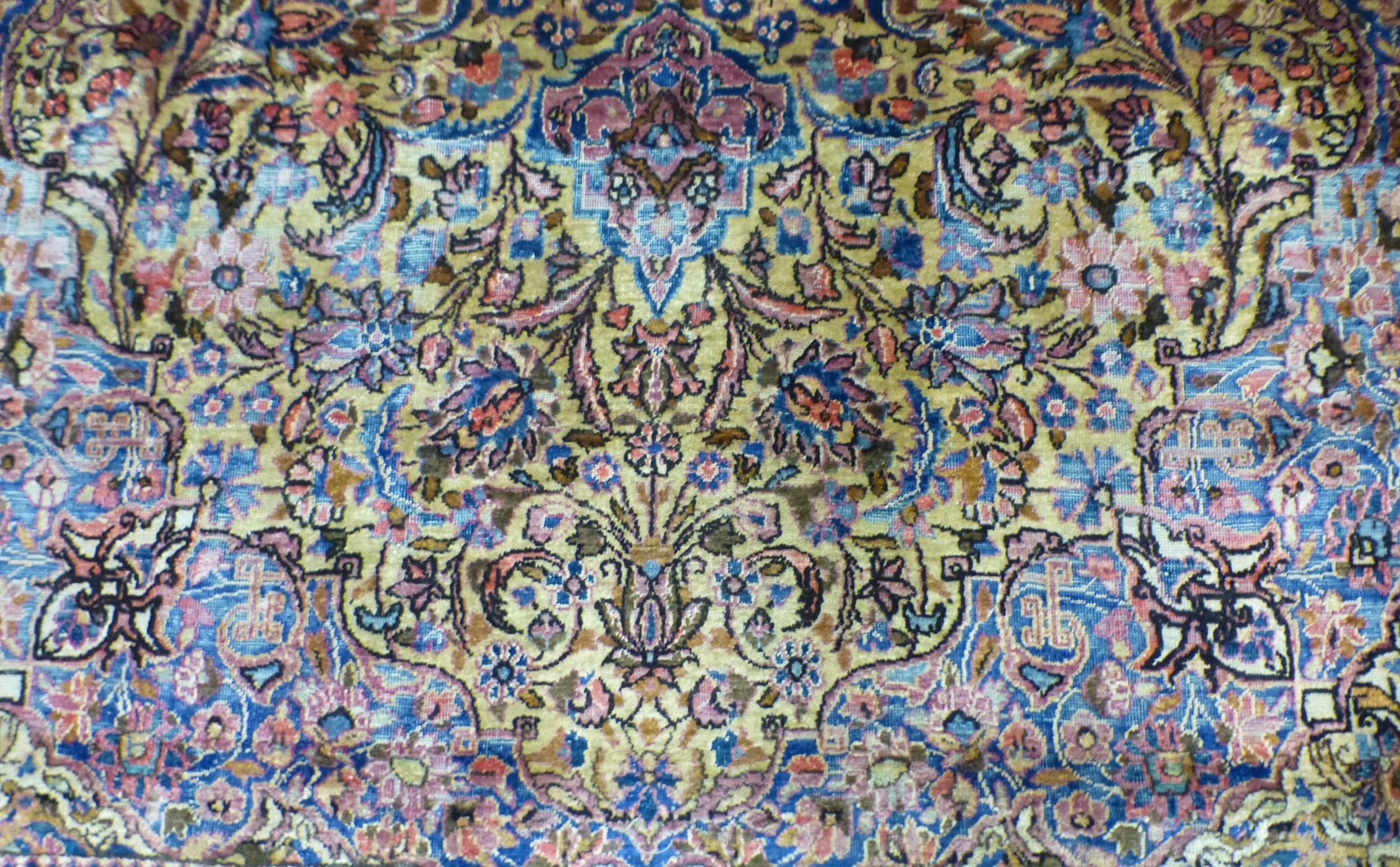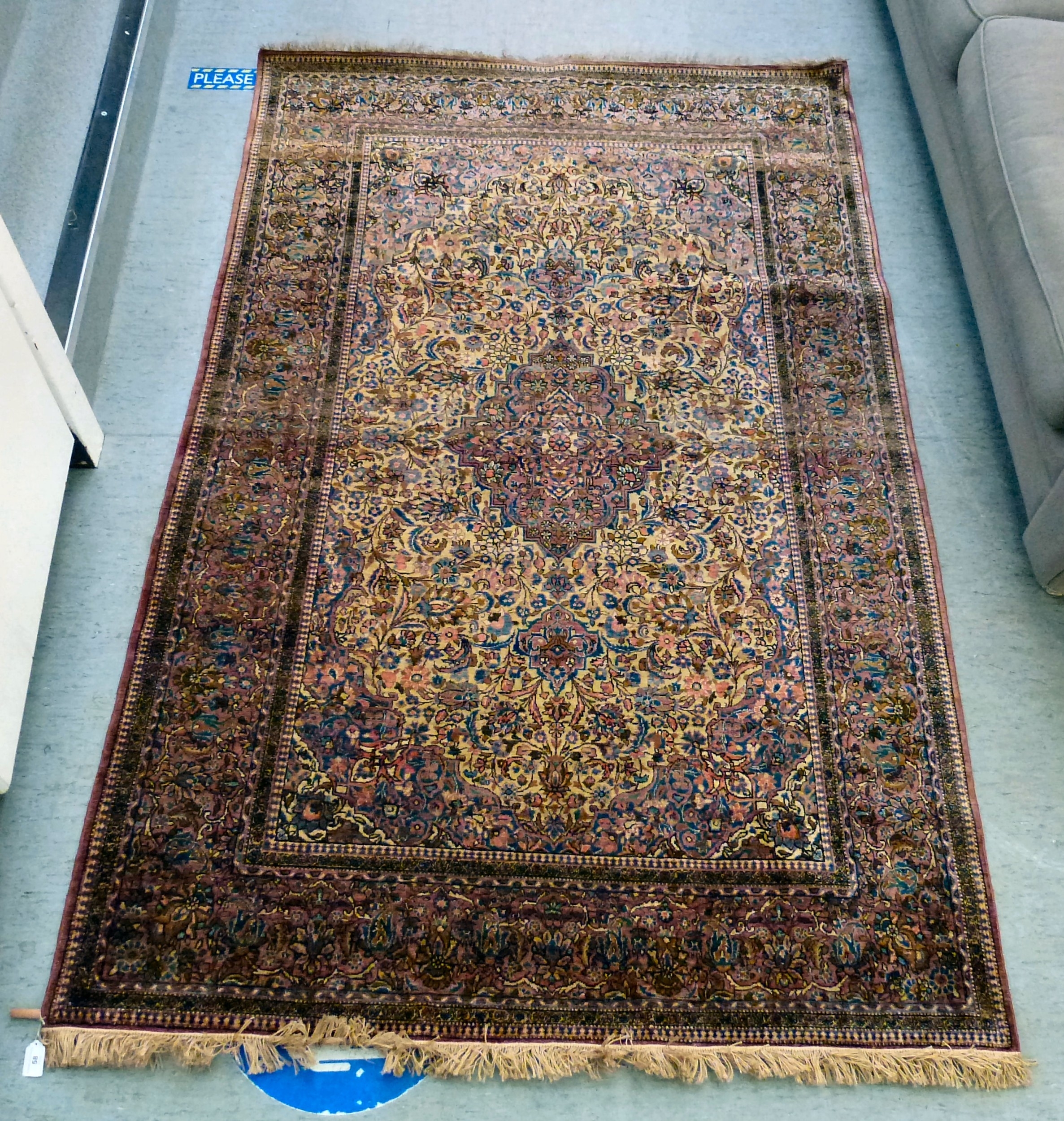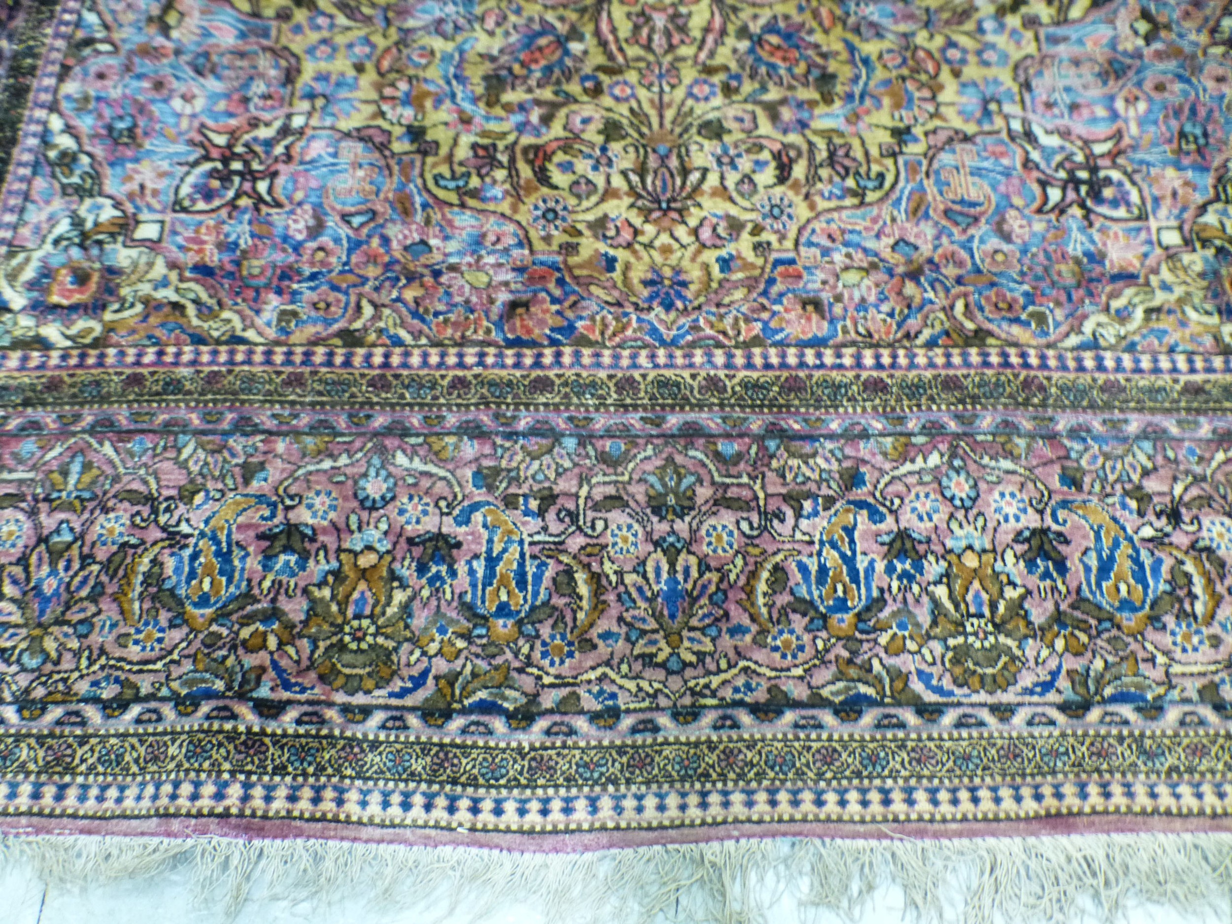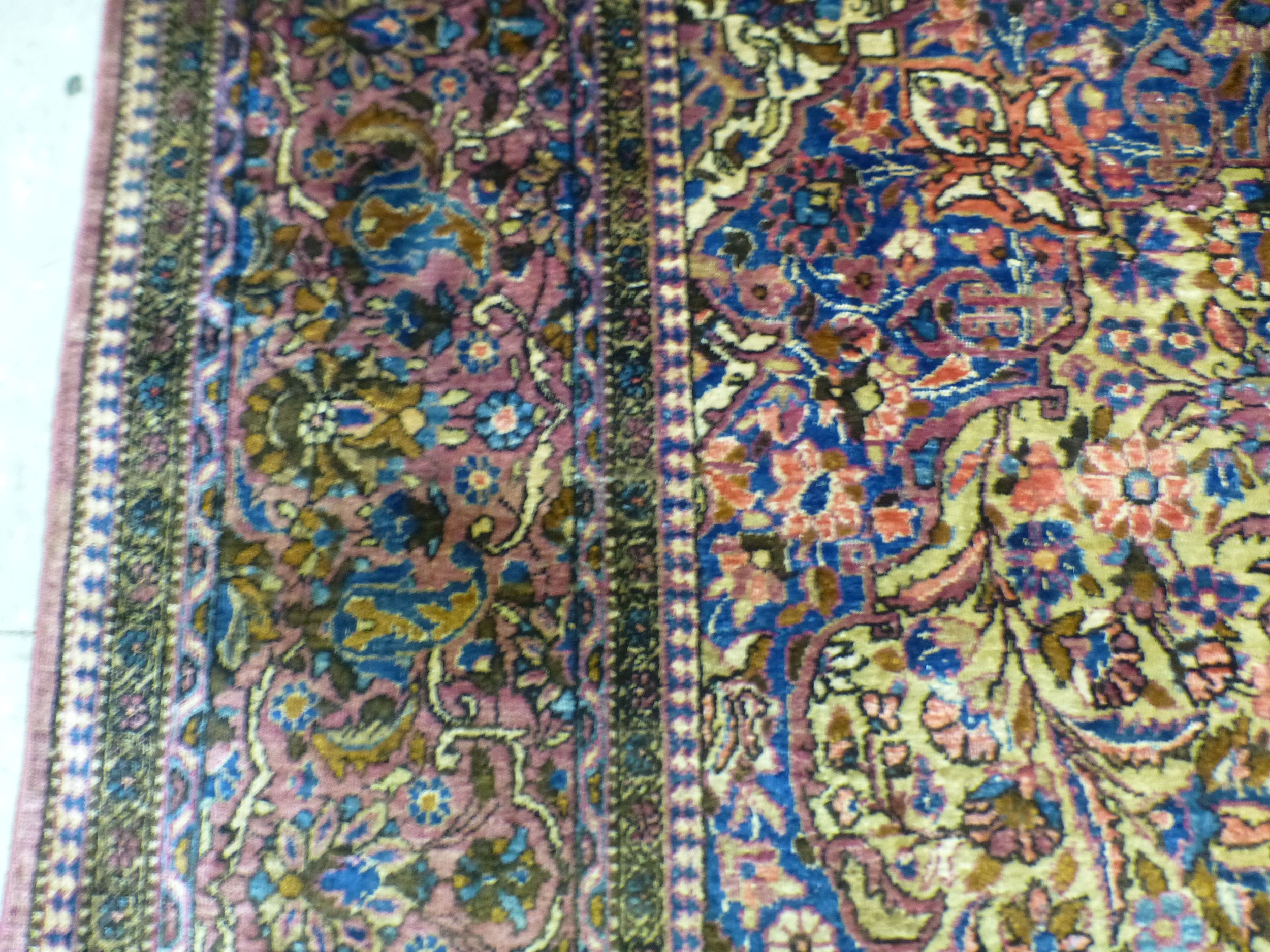 A Persian part-silk rug, decorated with dense flora, on a maroon ground 80" x 50"