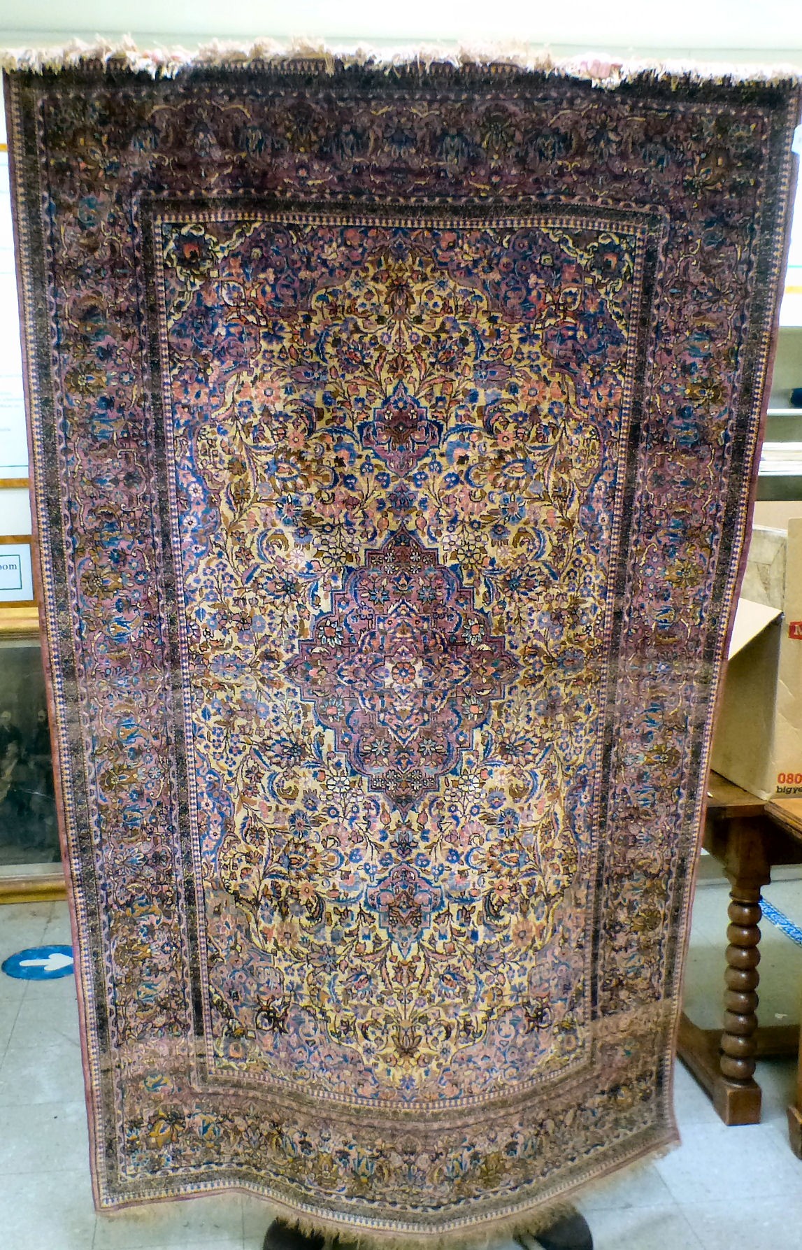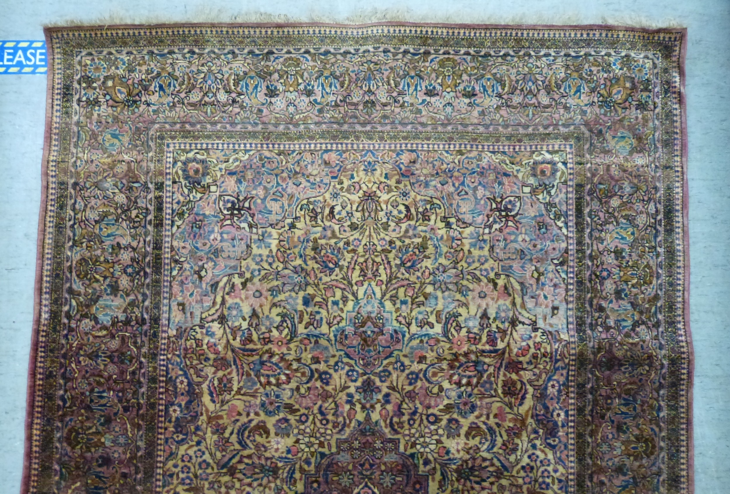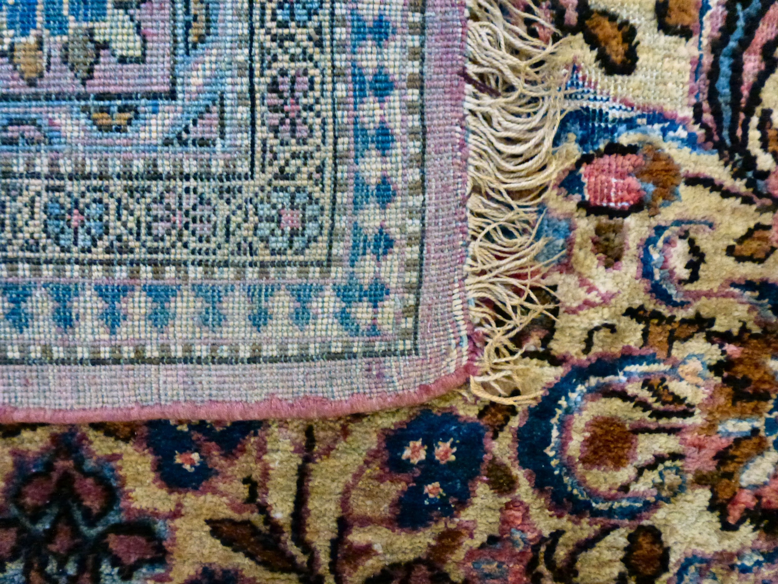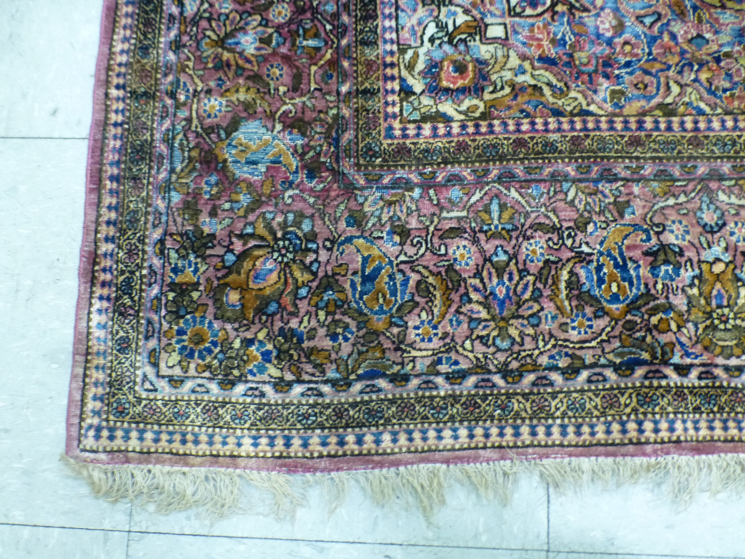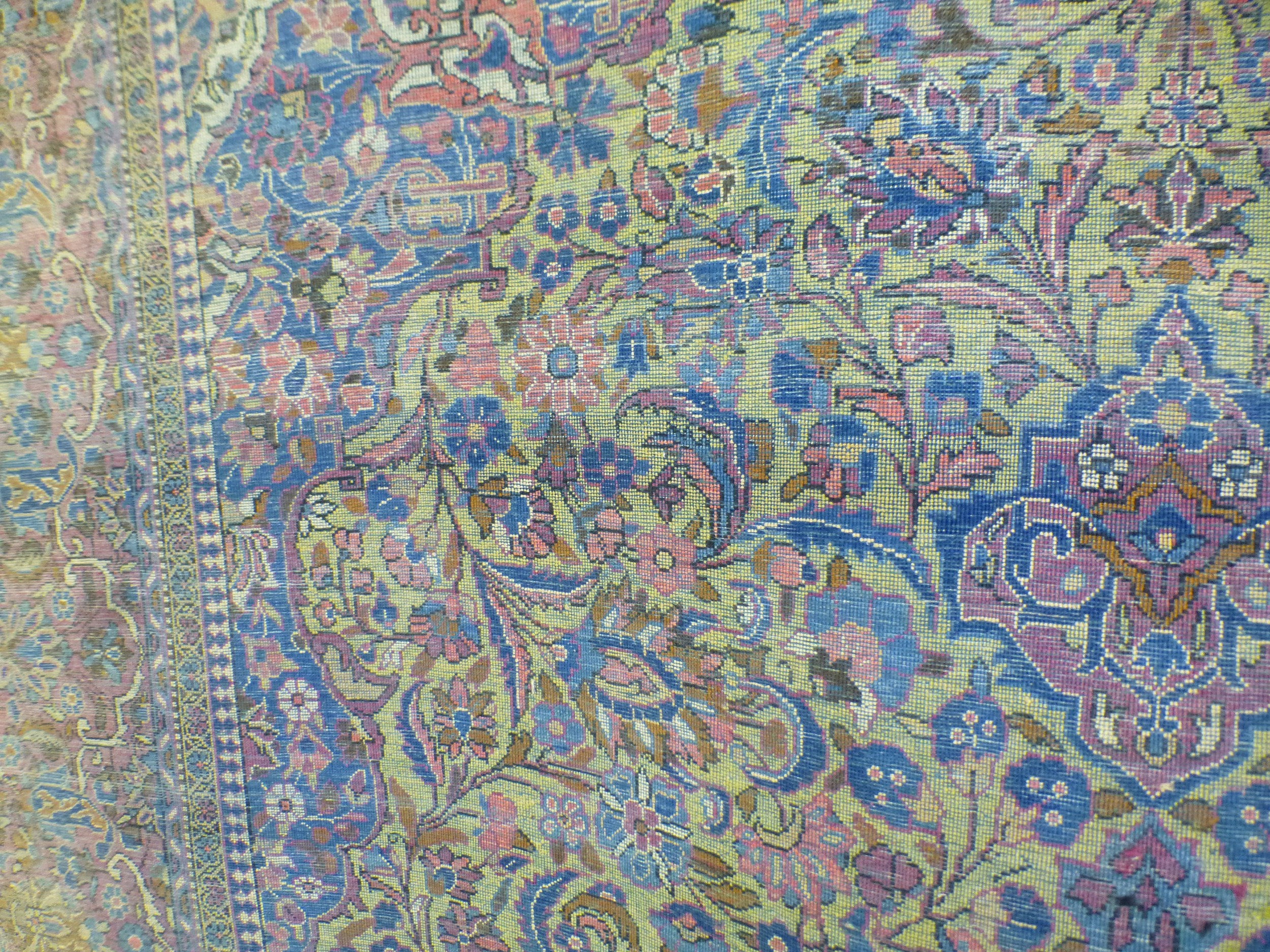 A Persian part-silk rug, decorated with dense flora, on a maroon ground 80" x 50"