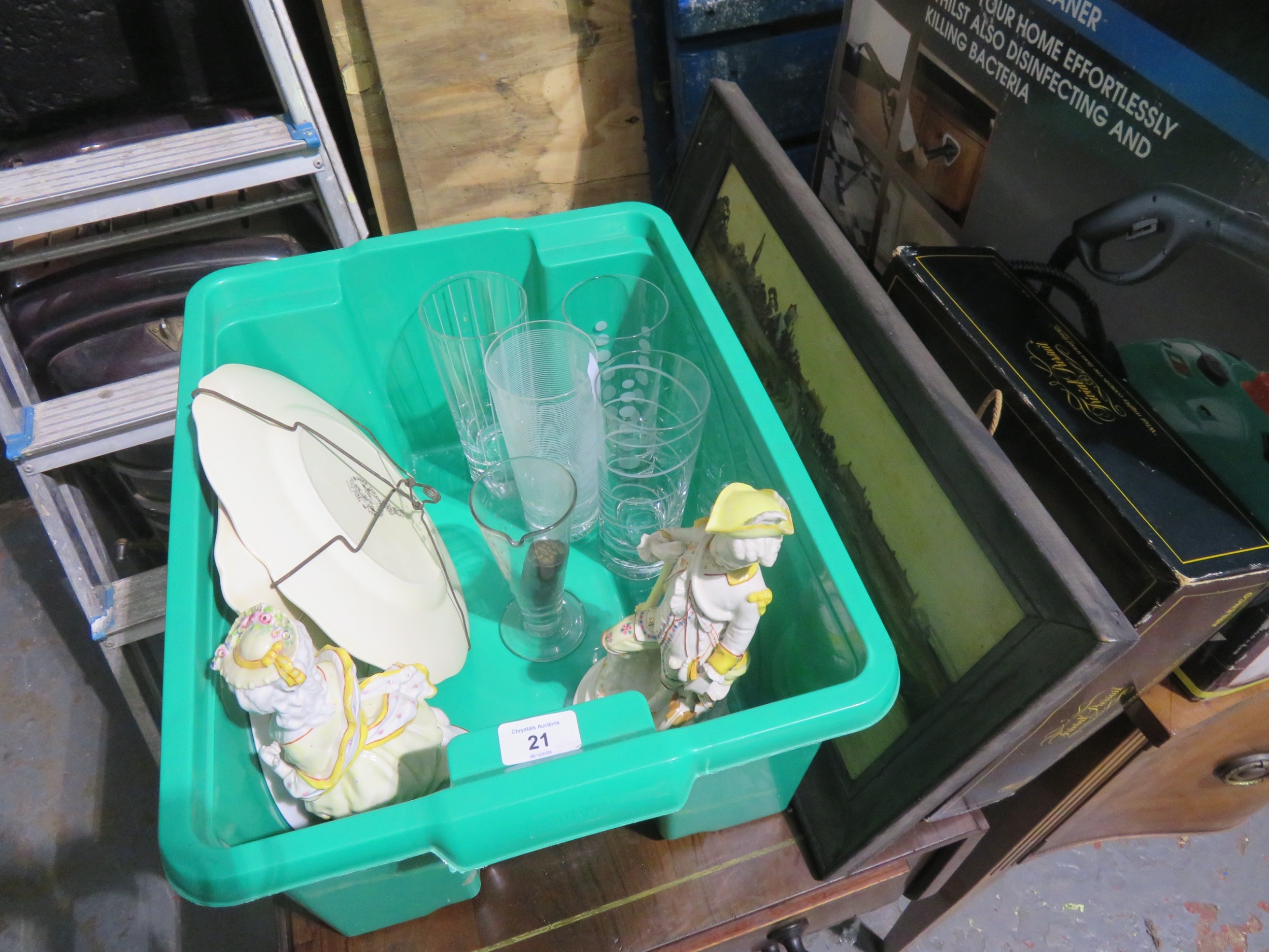Collection drinking glasses figures oil painting and trivial Pursuit