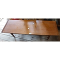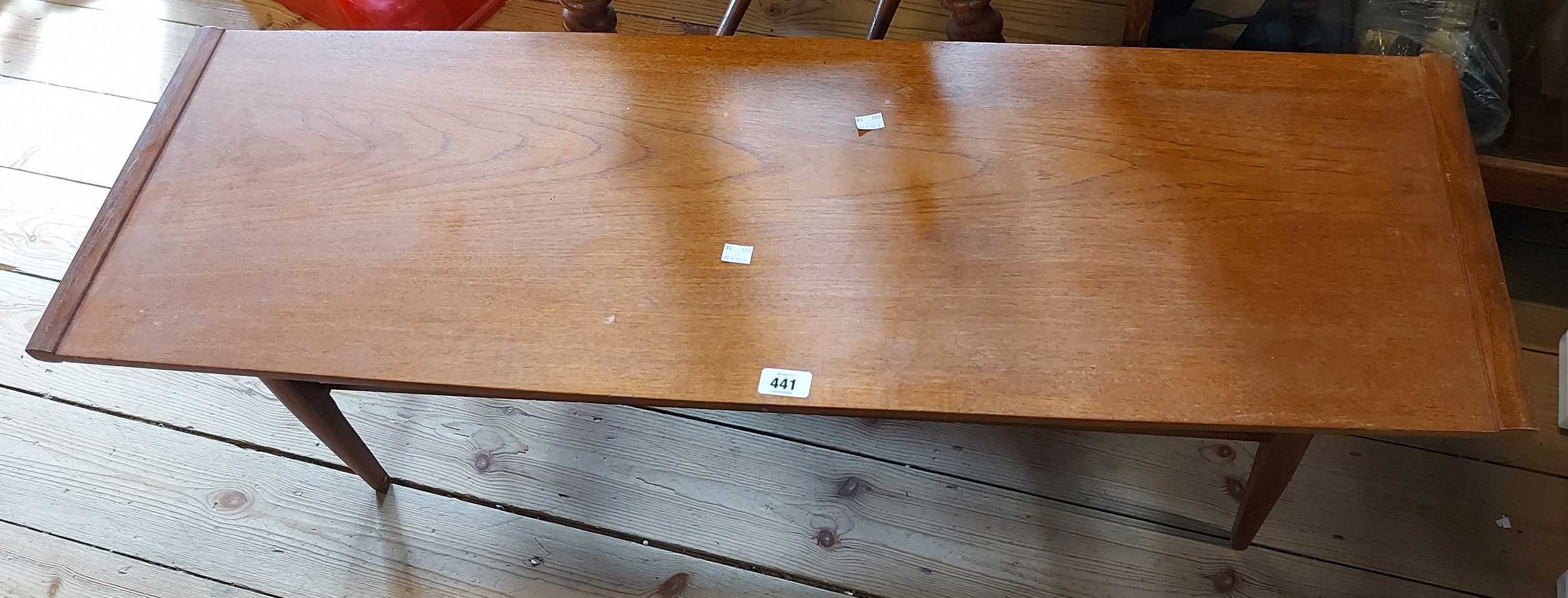 A 1.14m mid 20th Century teak coffee table, set on moulded supports with undertier