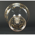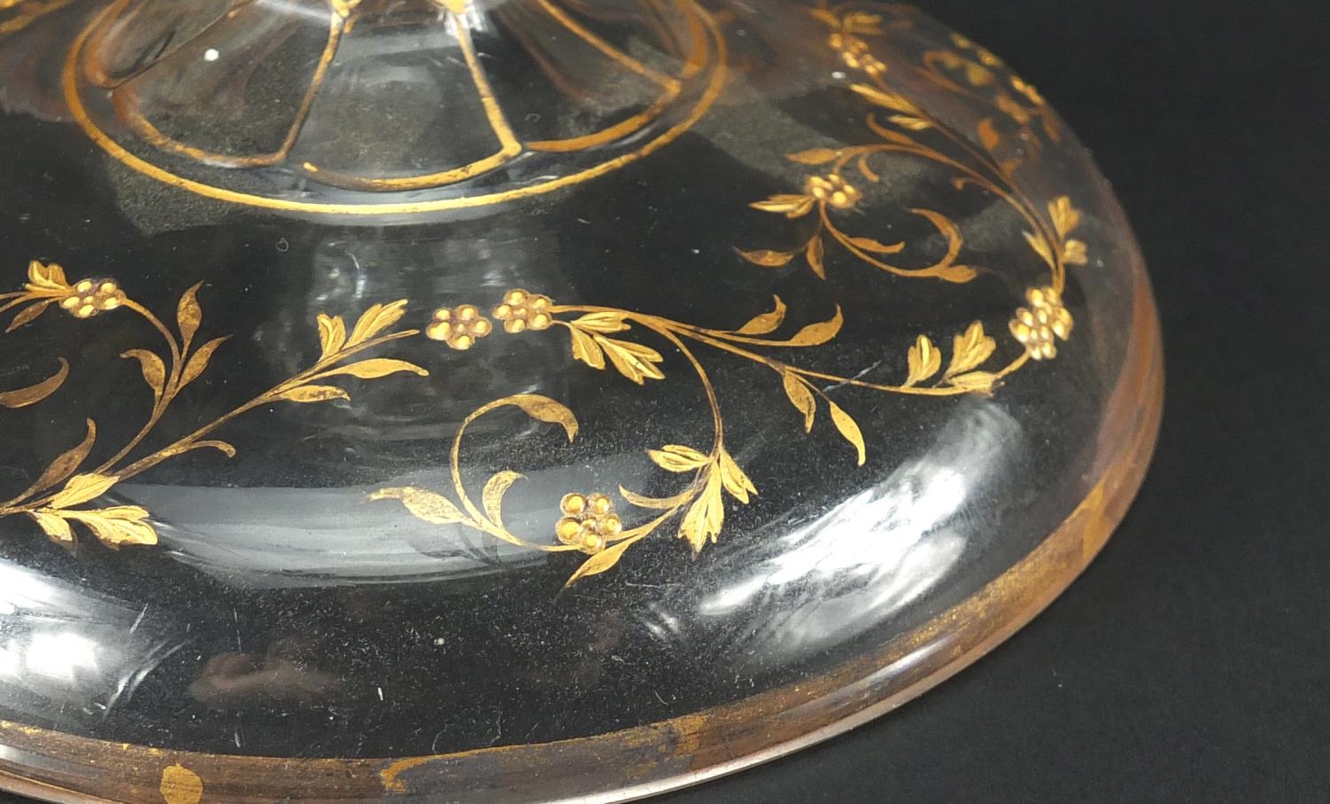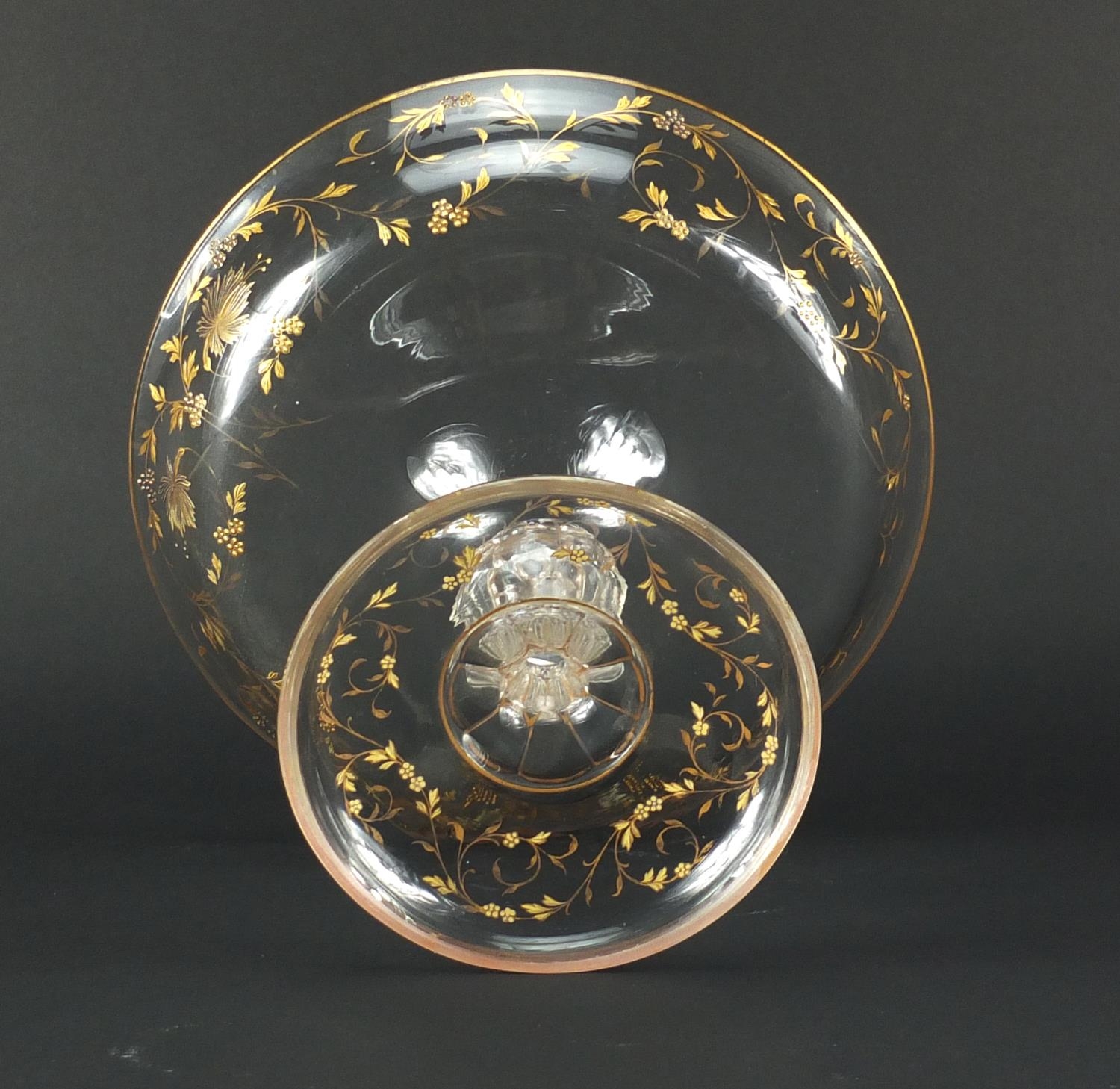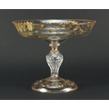 Good Imperial Russian glass tazza by Maltsev, finely gilded with flowers and foliage, 21.5cm high x 26.5cm in diameter