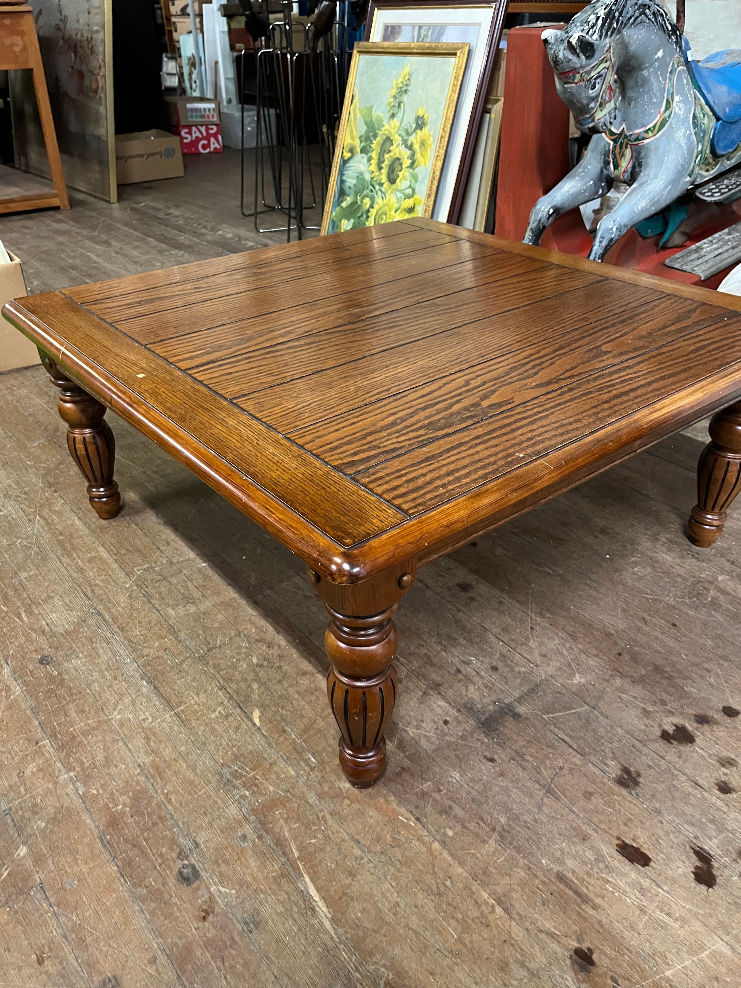 Solid wood square coffee table.