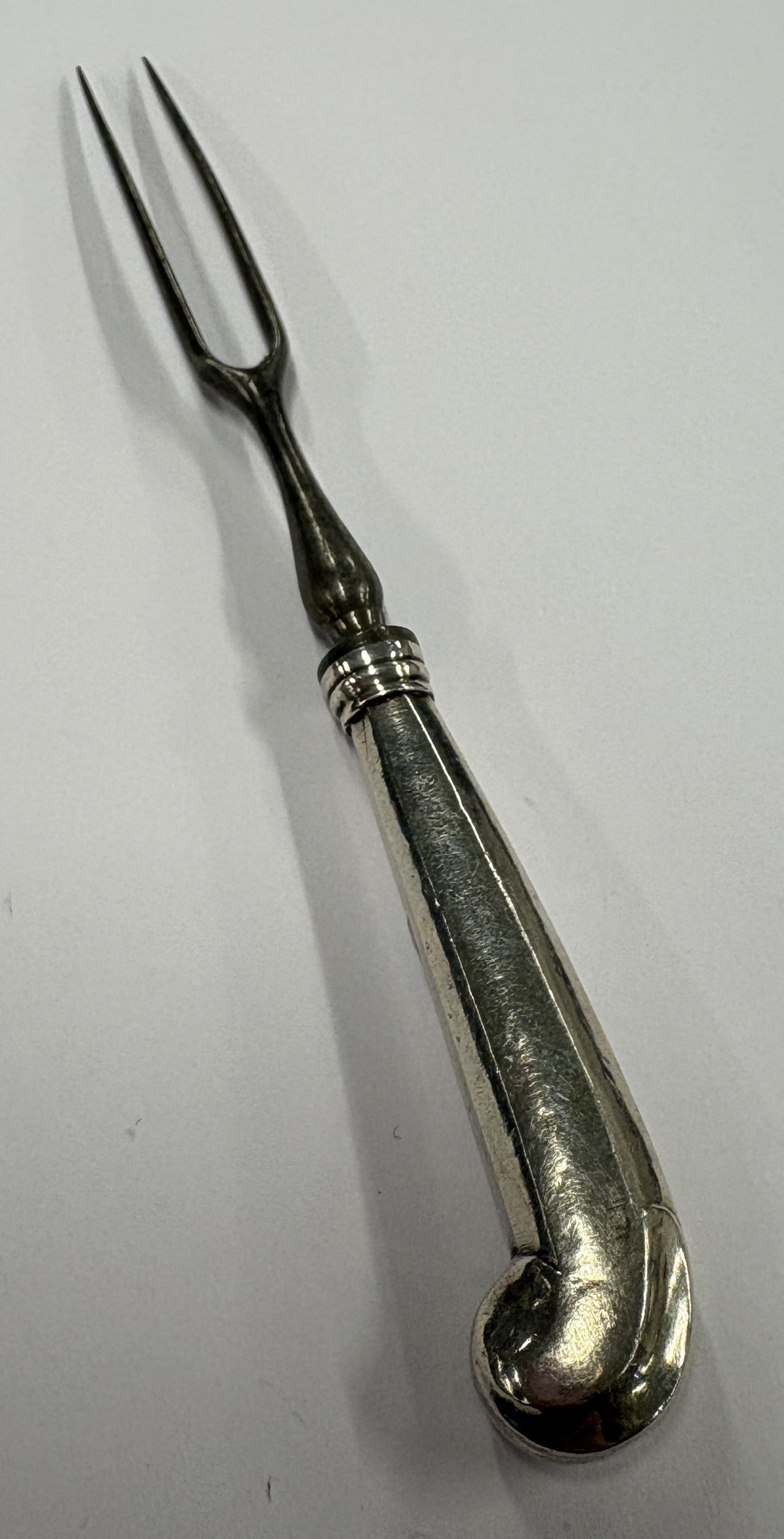 An 18th Century silver-handled toy fork. Approx. 17 grams. Est. £50 - £80.