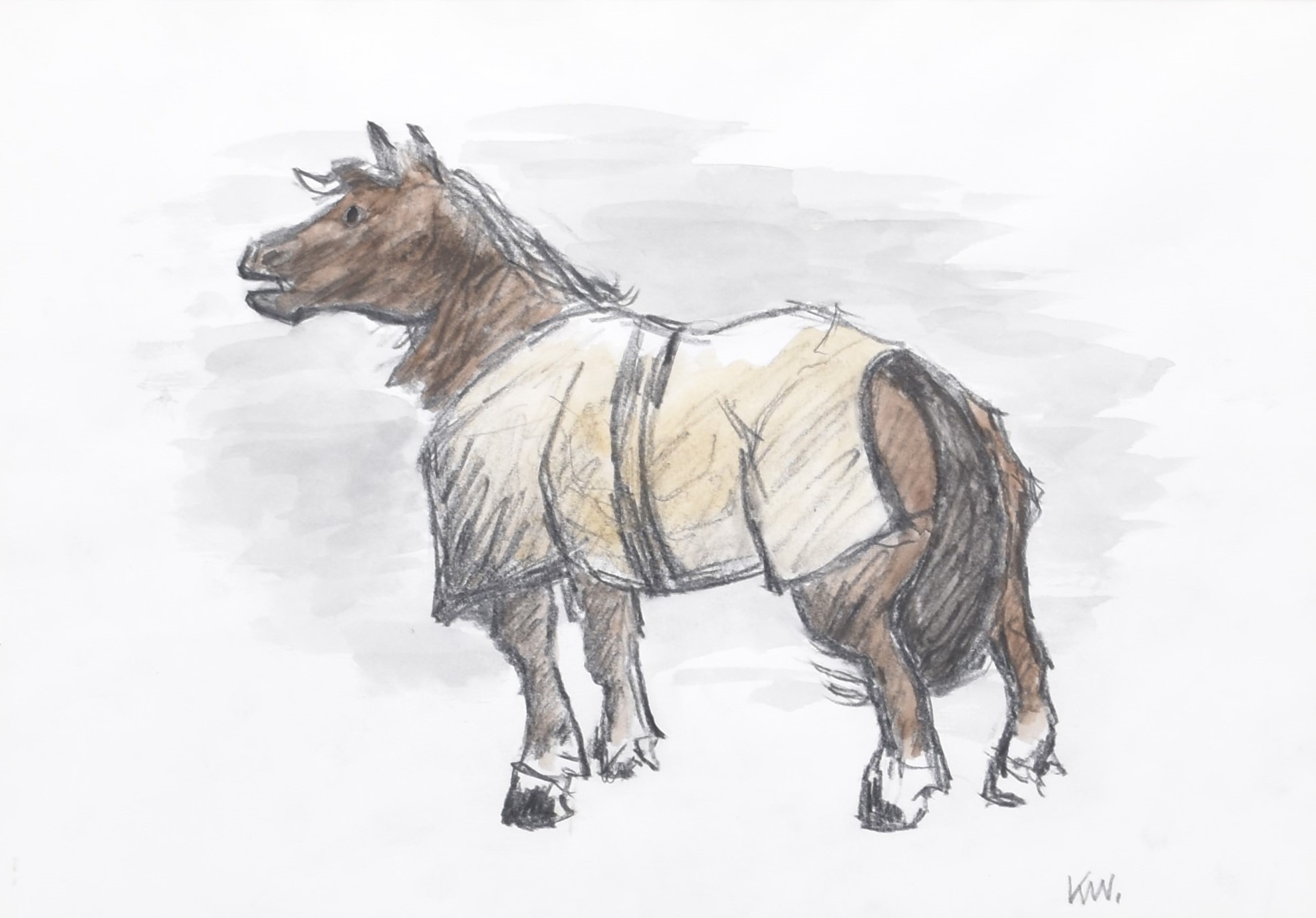 Sir Kyffin Williams OBE RA (1918-2006) A Welsh Pony in Winter, initialled 'KW' in pencil lower right, watercolour, 26 x 38 cm, frame 53 x 65 cm Provenance: Gifted by the artist to a private individual mid 1990s, purchased by the current vendor, a private Shropshire collector, from Rowles Fine Art
