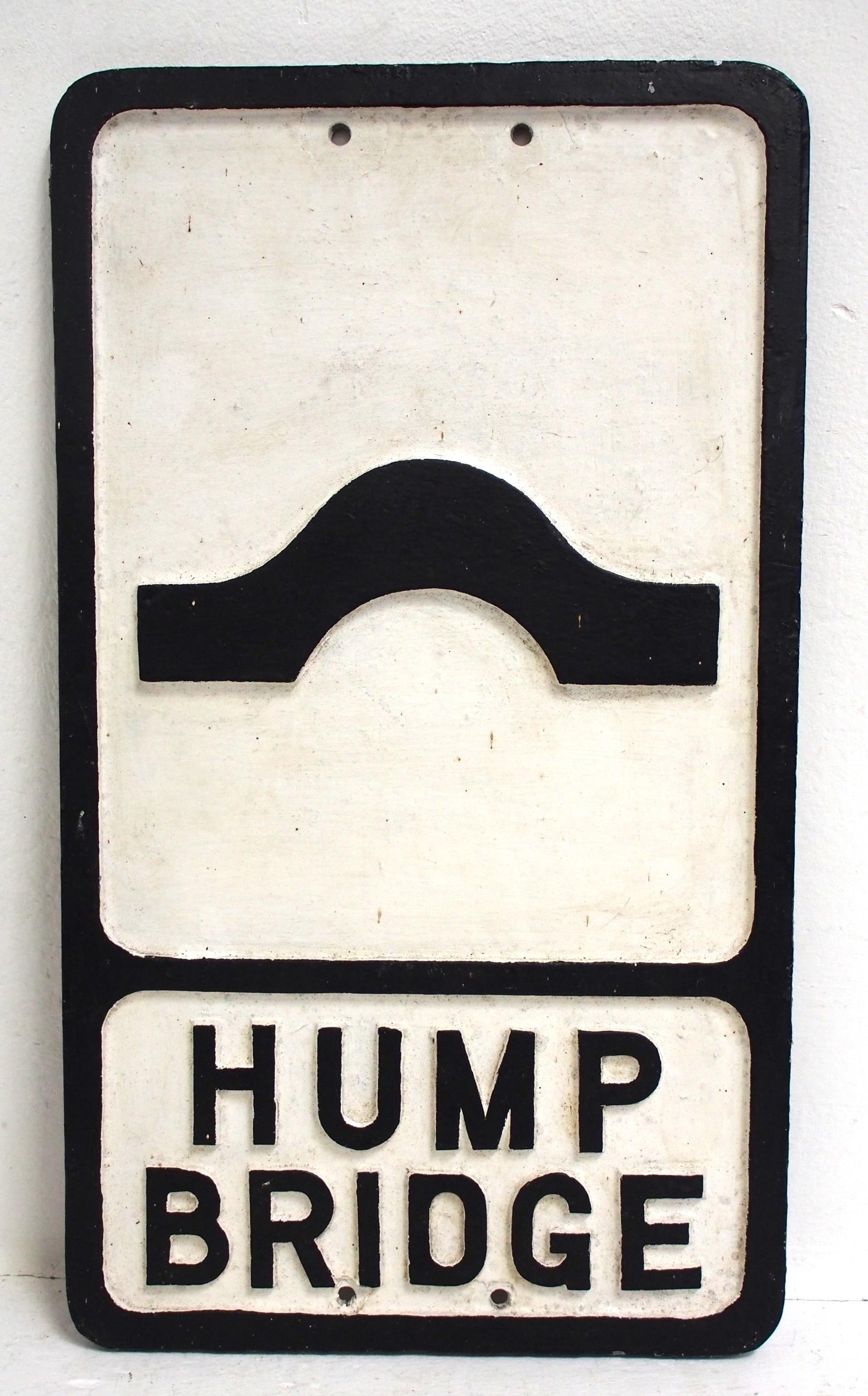 Cast alloy road sign "HUMP BRIDGE" 21"x 12", original back repainted front. (B/C) (Dispatch by Mailboxes/Collect from Banbury Depot)