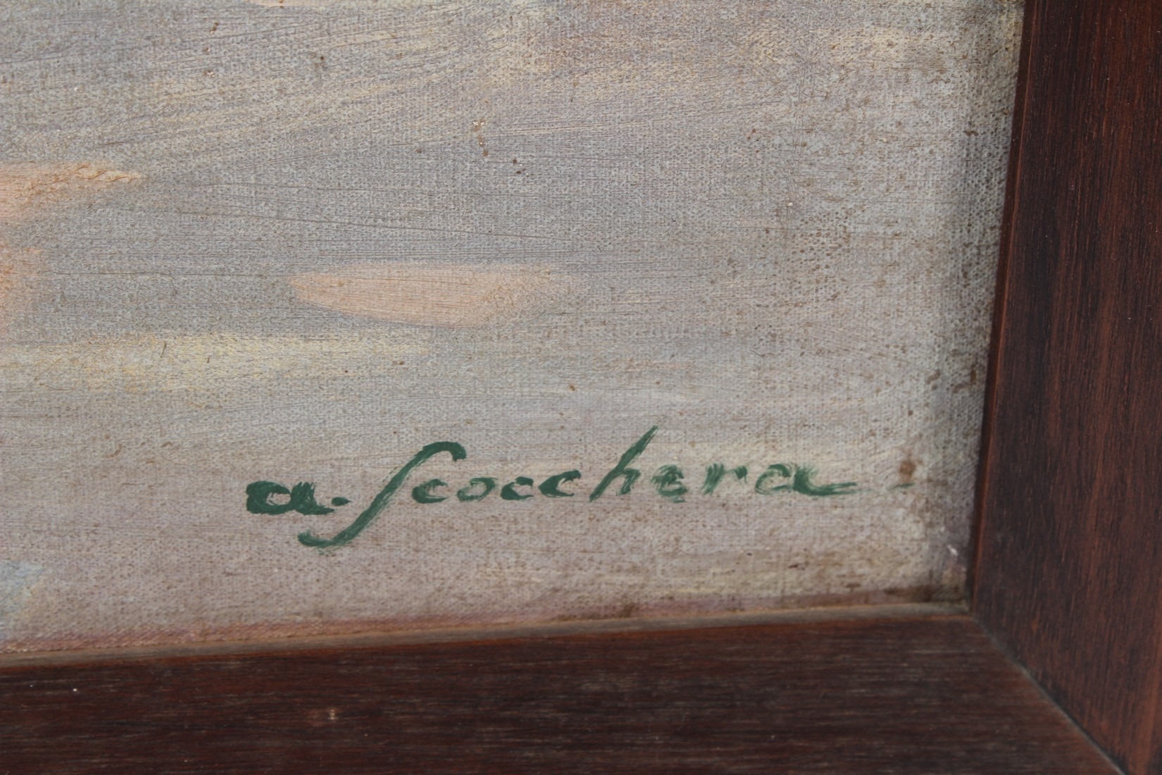 ALFREDO SCOCCHERA (1887-1955) View of Spanish town with figures on a road oil on canvas signed 43 x 63cm