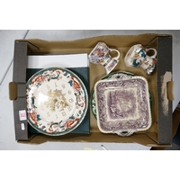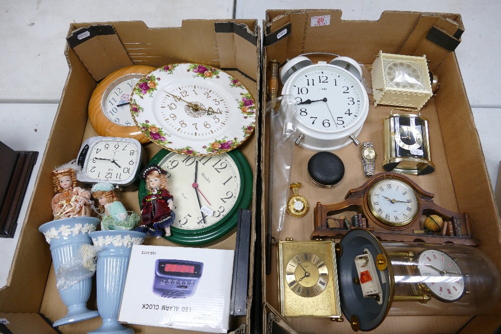 A mixed collection of Mantle & Wall Clocks including: Royal Albert Old Country Rose together with ladies wrist watch & Wedgwood Queens ware vases(2 trays)