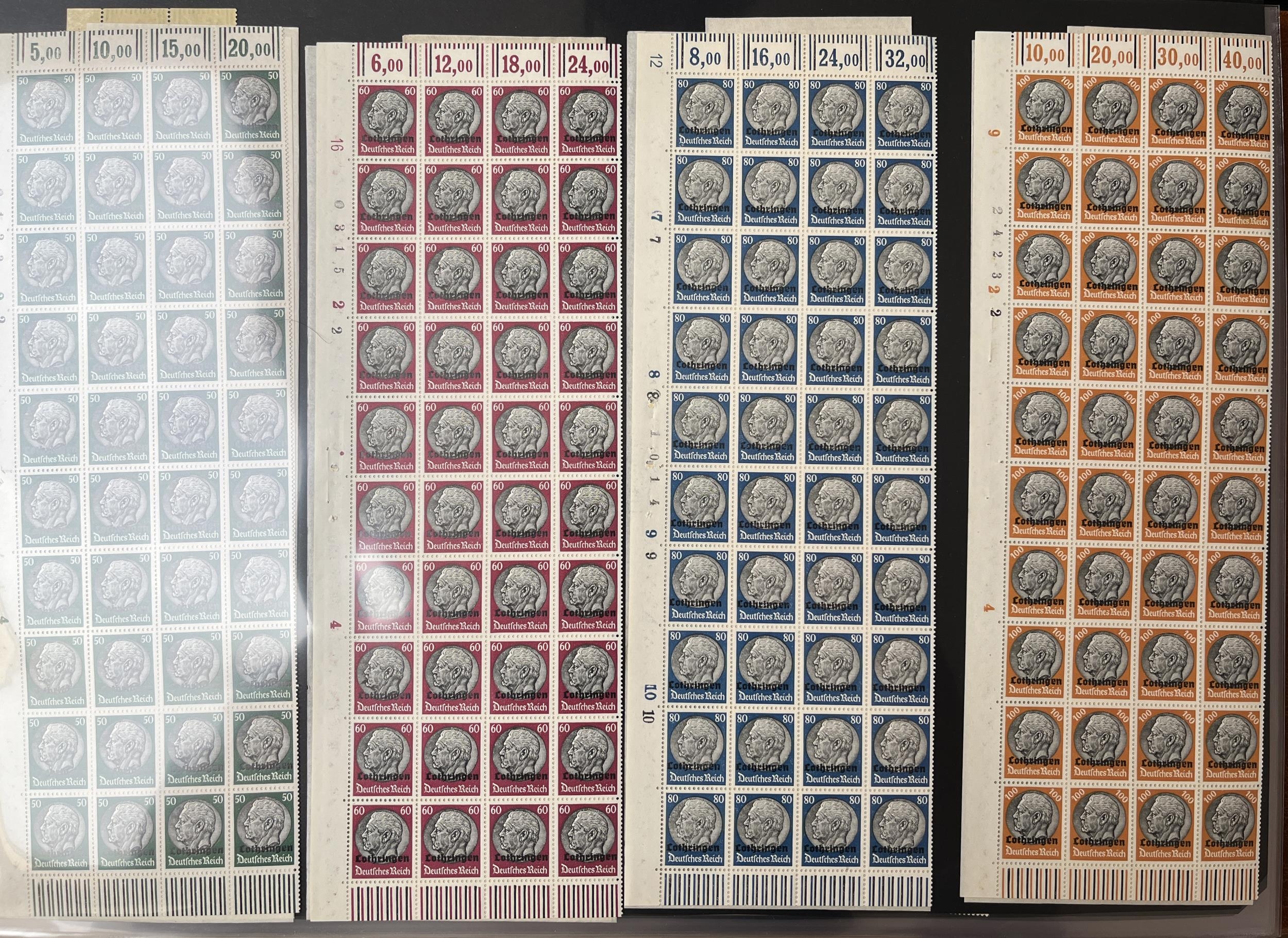 Extensive collection of mint 1940s sheets and part sheets housed in 5 (very large) sheet albums. Mostly comprising later 3rd Reich issues in sheets of 50 (1944 Armed Forces issues including 30pf etc), also General Government, Bohemia and 1940 Occupations, there are 100s of sheets, presenting an attractive and very different collection