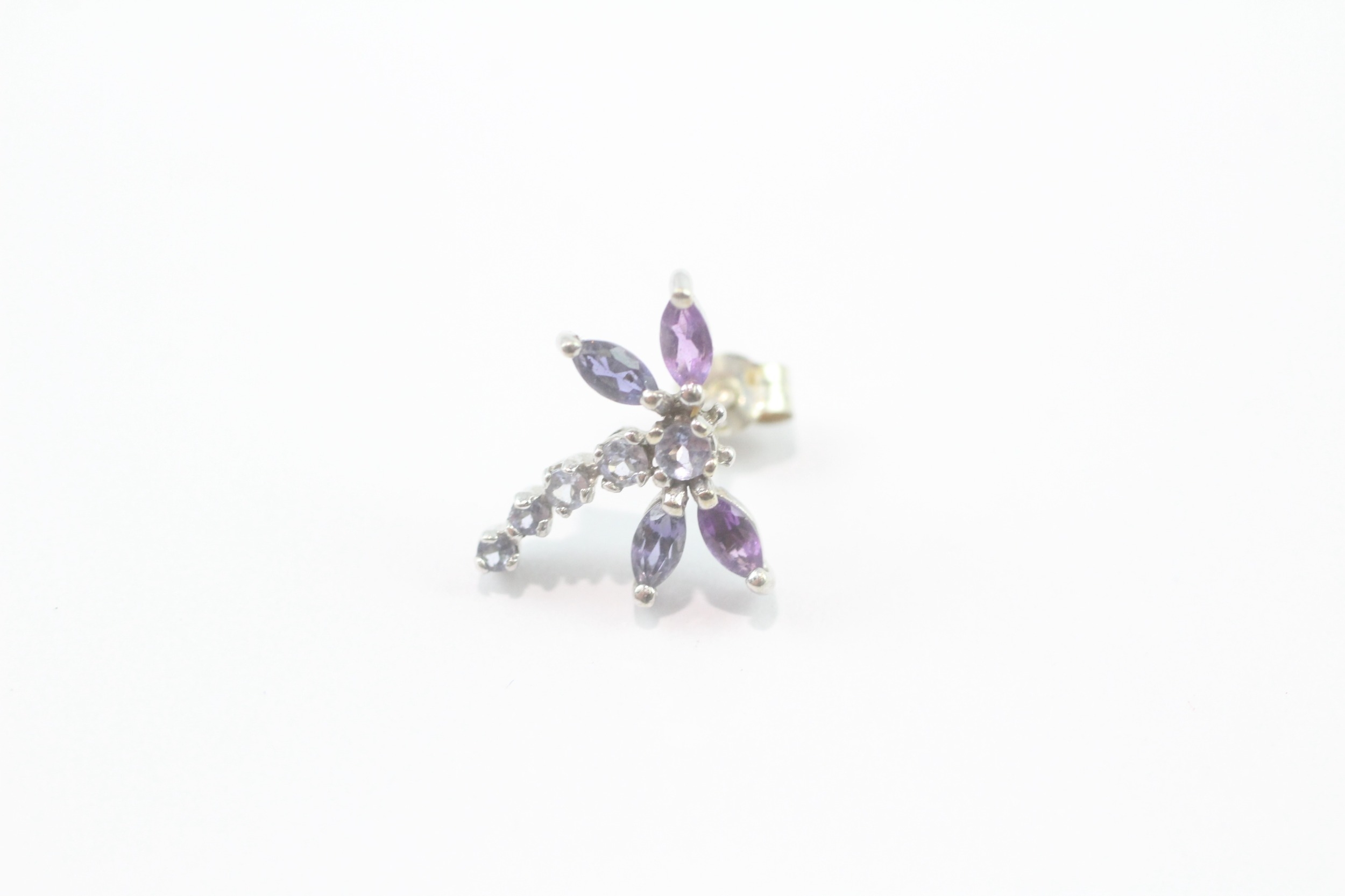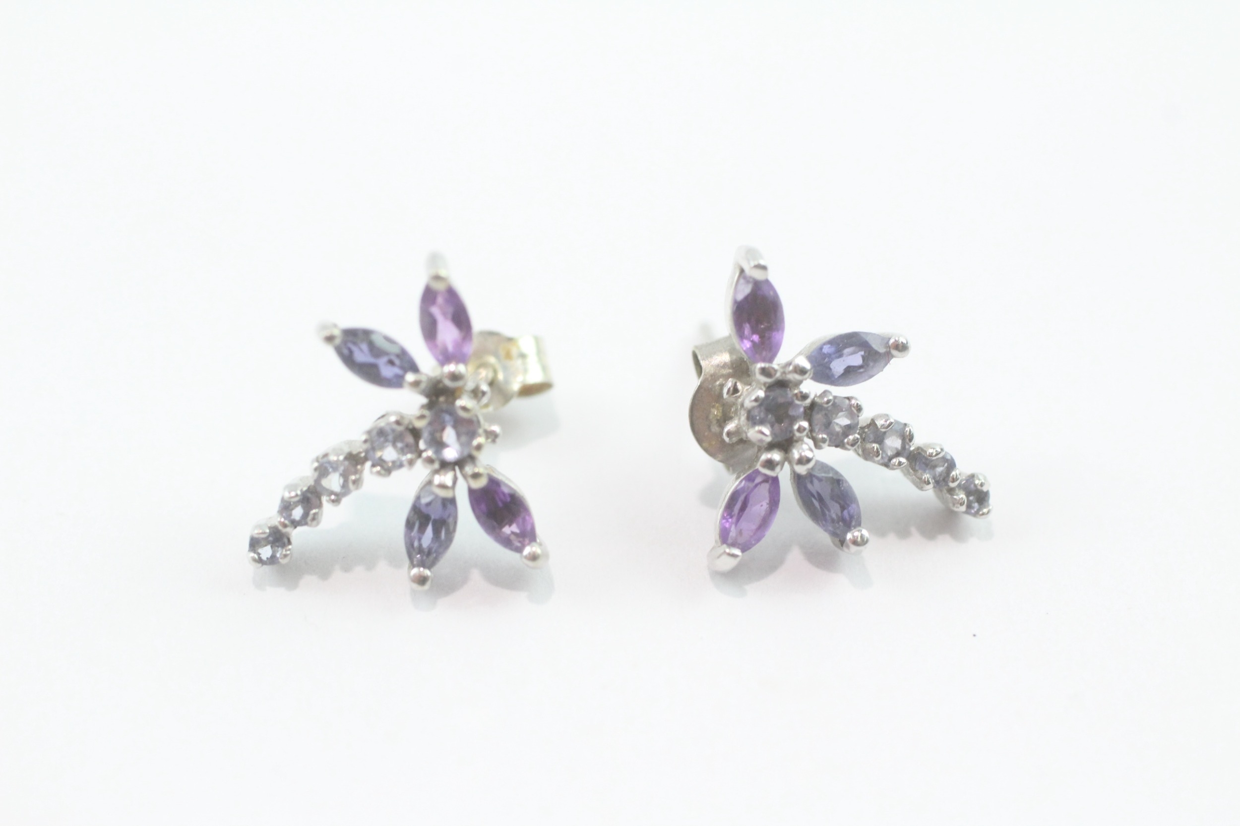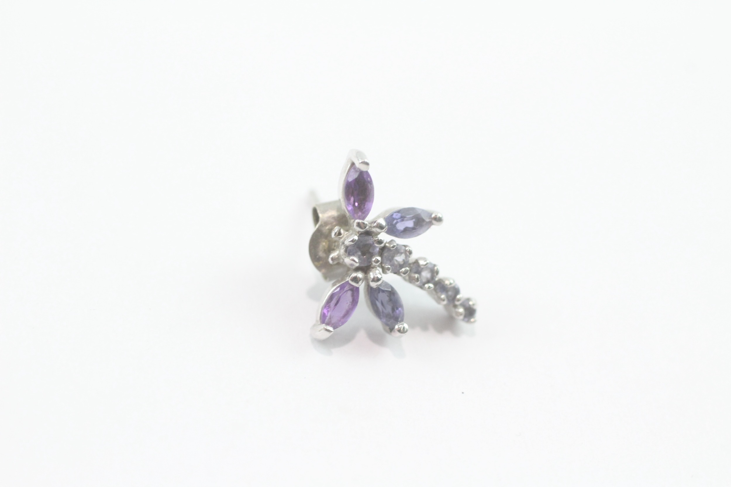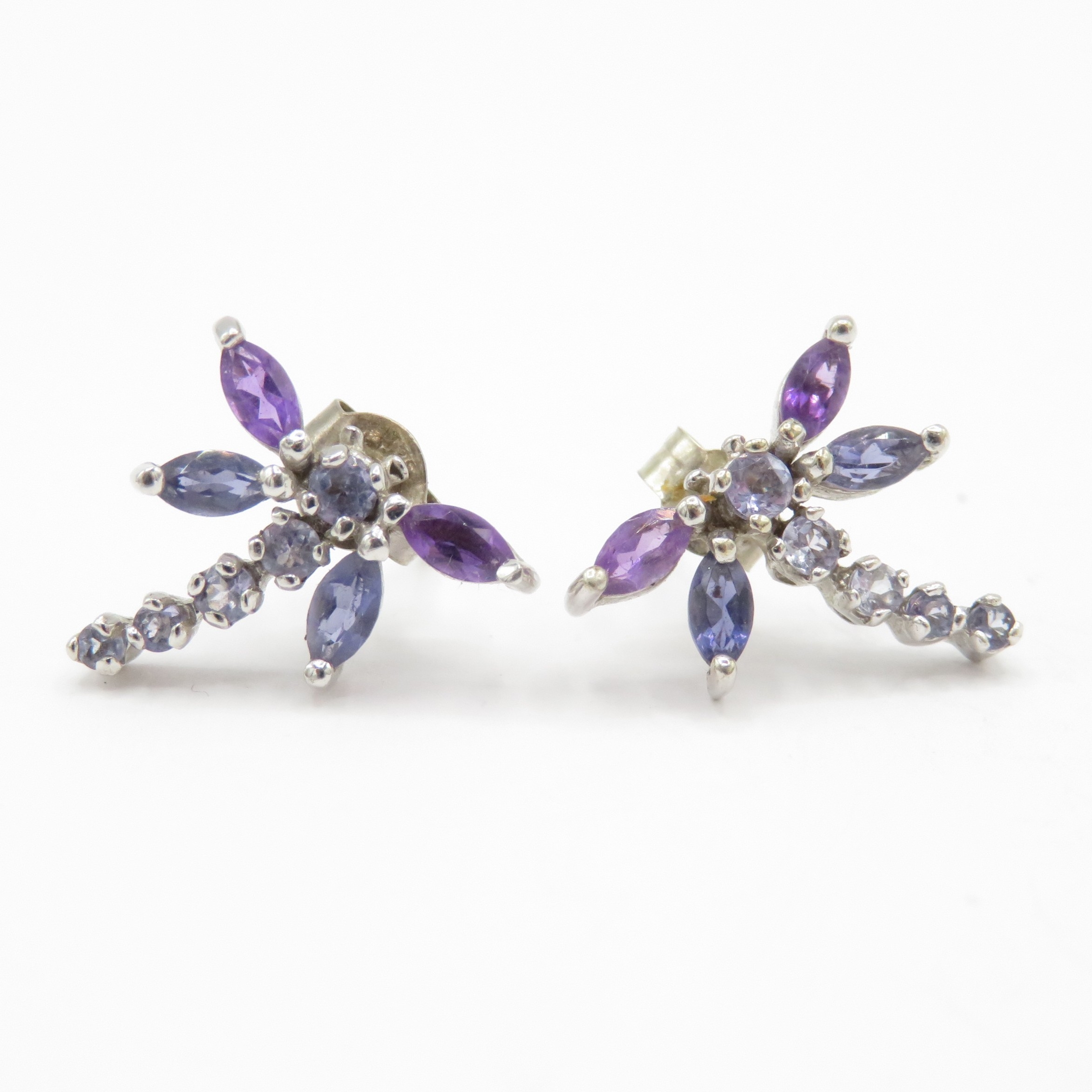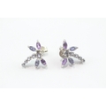 9ct white gold amethyst tanzanite dragonfly stud earrings (1.6g)