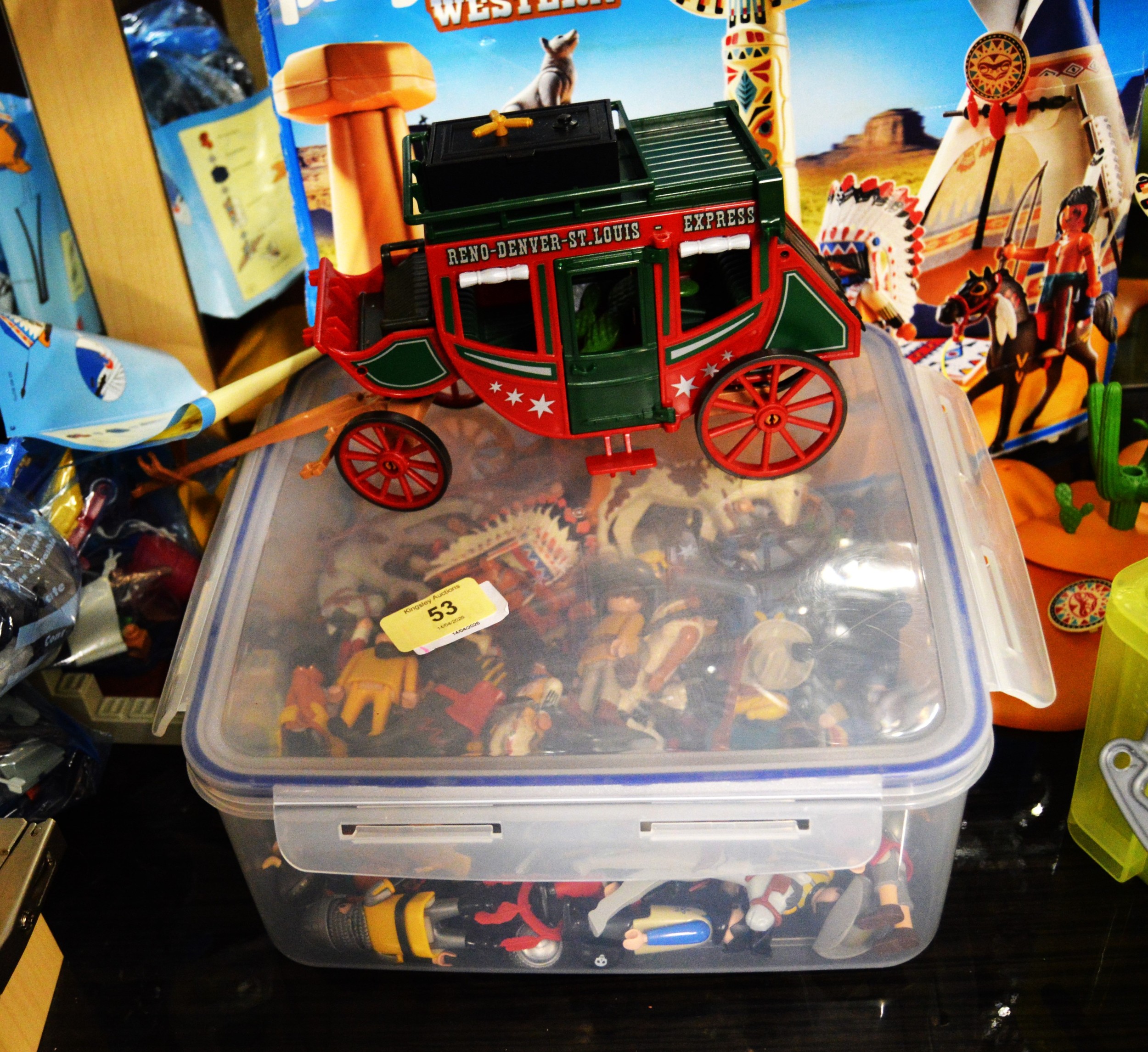 A Large Selection of Playmobile Historical Themed Playsets and Figures including Wild West Cowboys & Indians, Pirates, Vikings and Knights, etc- approx. 40 Figures Plus a Large Quantity Miniature Accessories