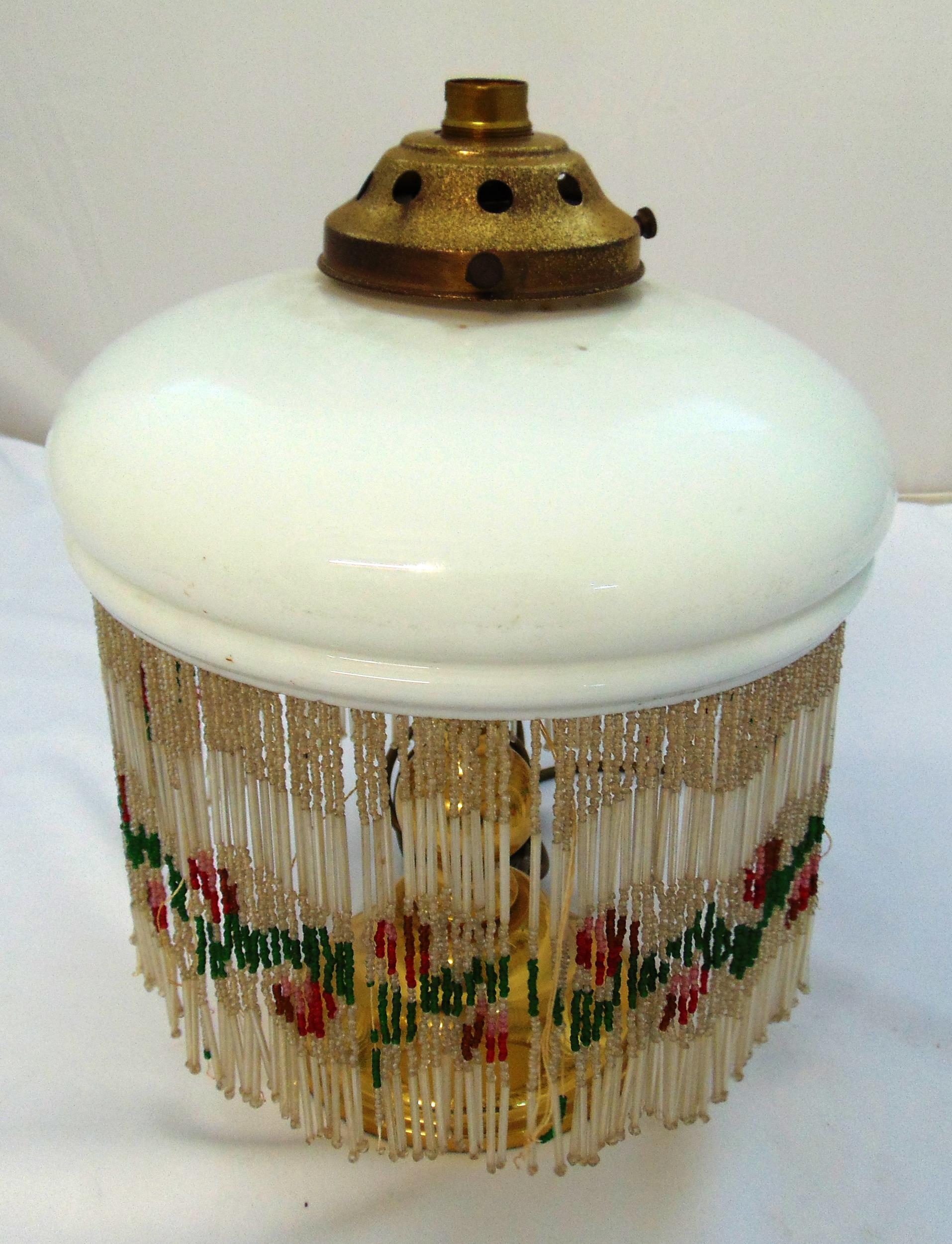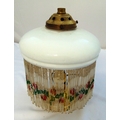 An Art Deco glass lampshade of circular form with coloured bead drops, 26cm (h)