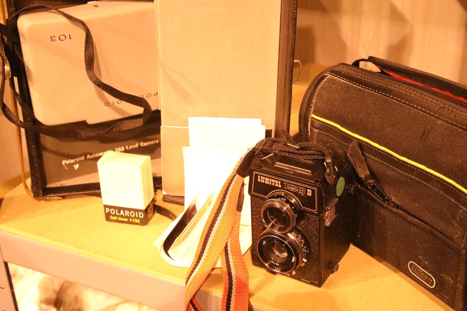Cased Polaroid 103 camera with accessories and a Lubitel 166B boxed camera with carry case. Not available for in-house P&P