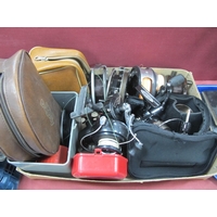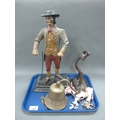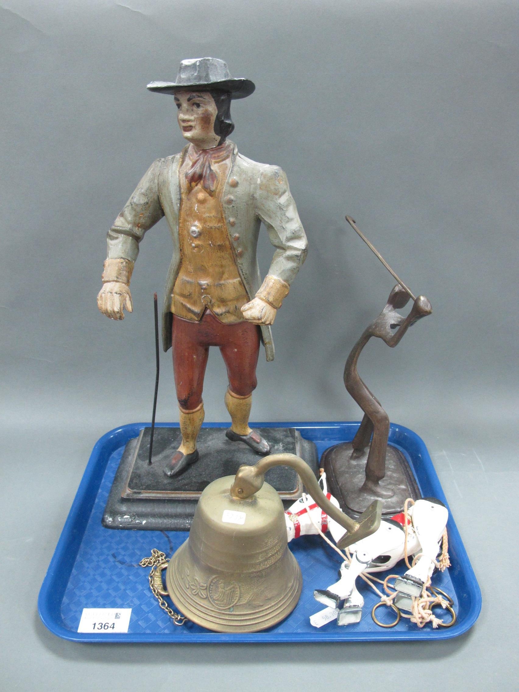 Muffin The Mule Metal Horse Marionette Puppet, brass bell, J.V.E metal male figure and golfer.