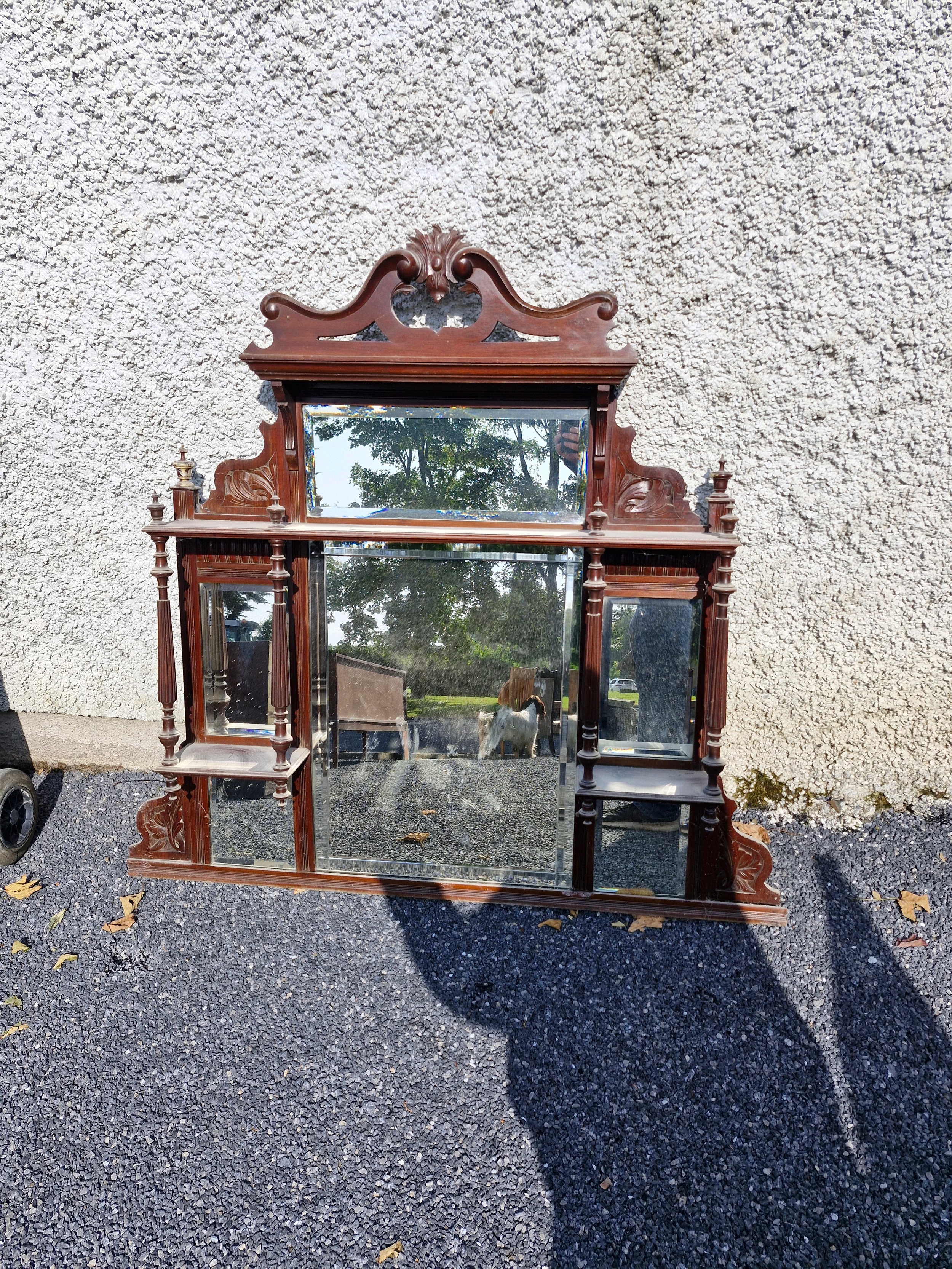 A late 1800s early 1900s mahogany over mantle mirror.