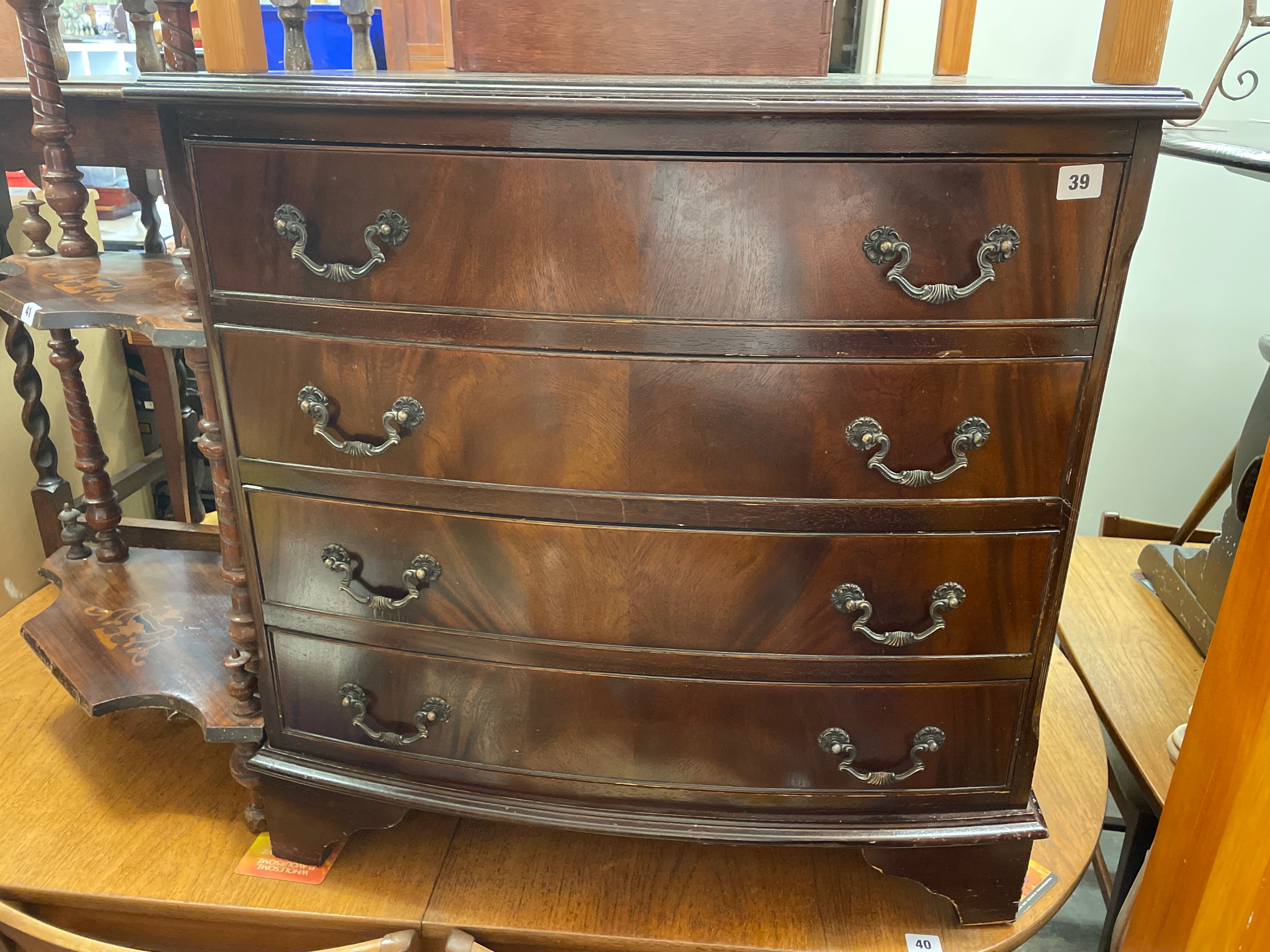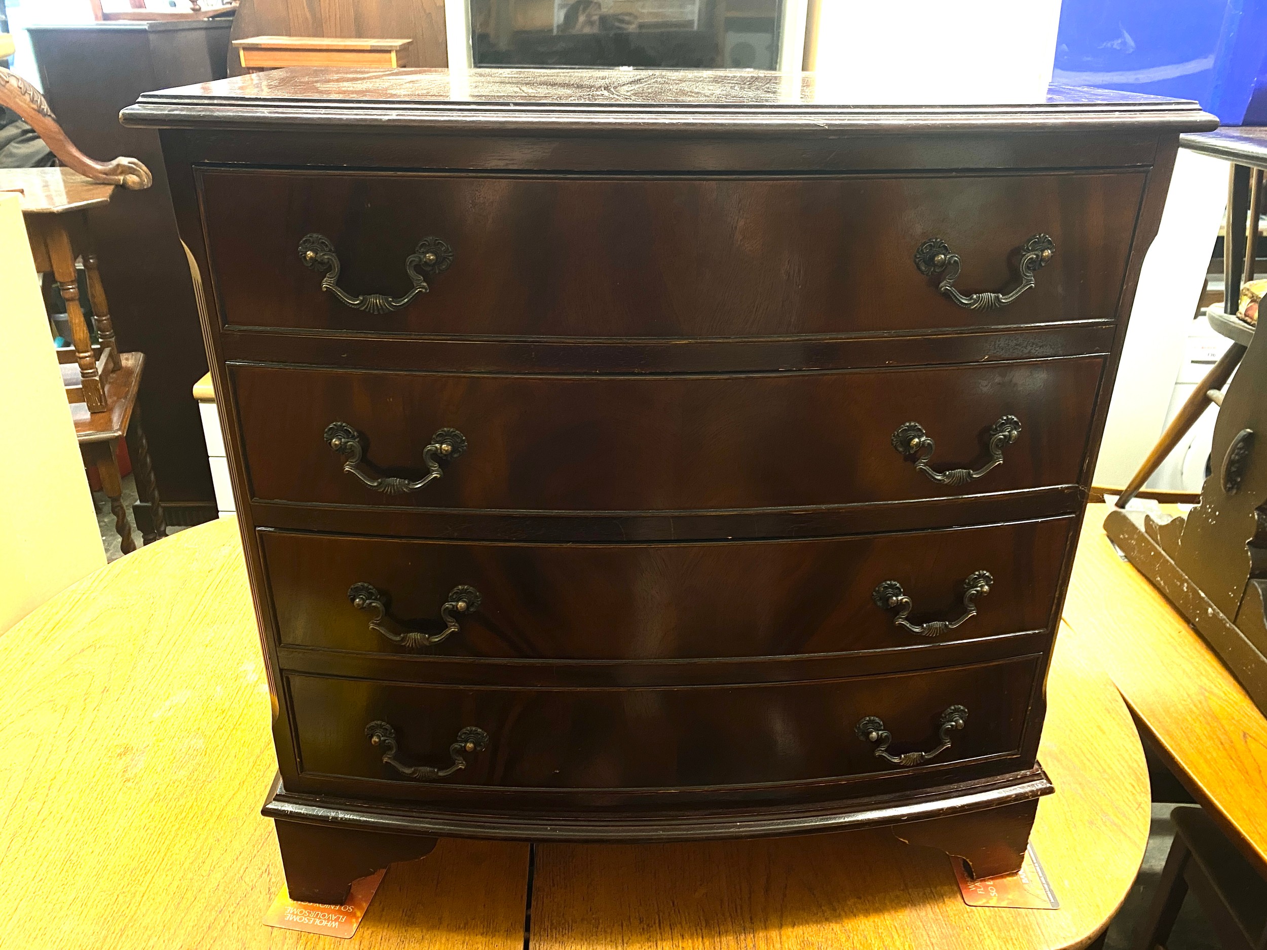 REPRODUCTION MAHOGANY BOW FRONTED FOUR DRAWER CHEST