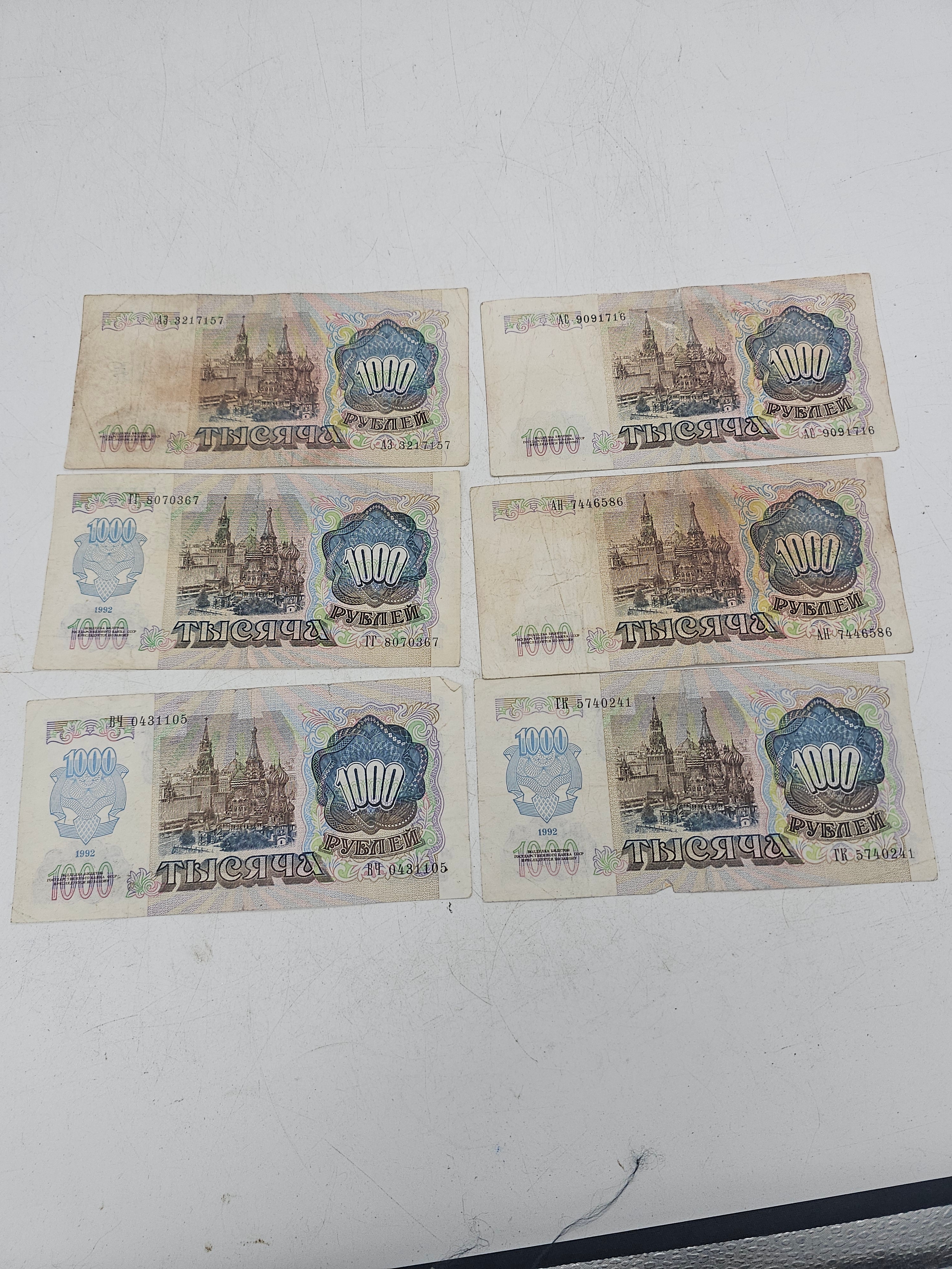 6 Russian banknotes 1000 roubles each