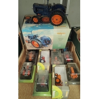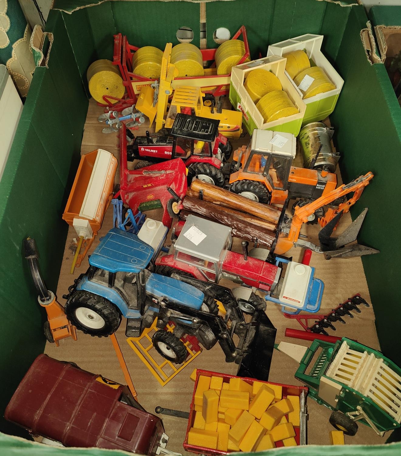 Four Britains tractors including Massey - Ferguson and a selection of Britains farming equipment and ERTL tractor