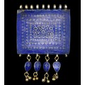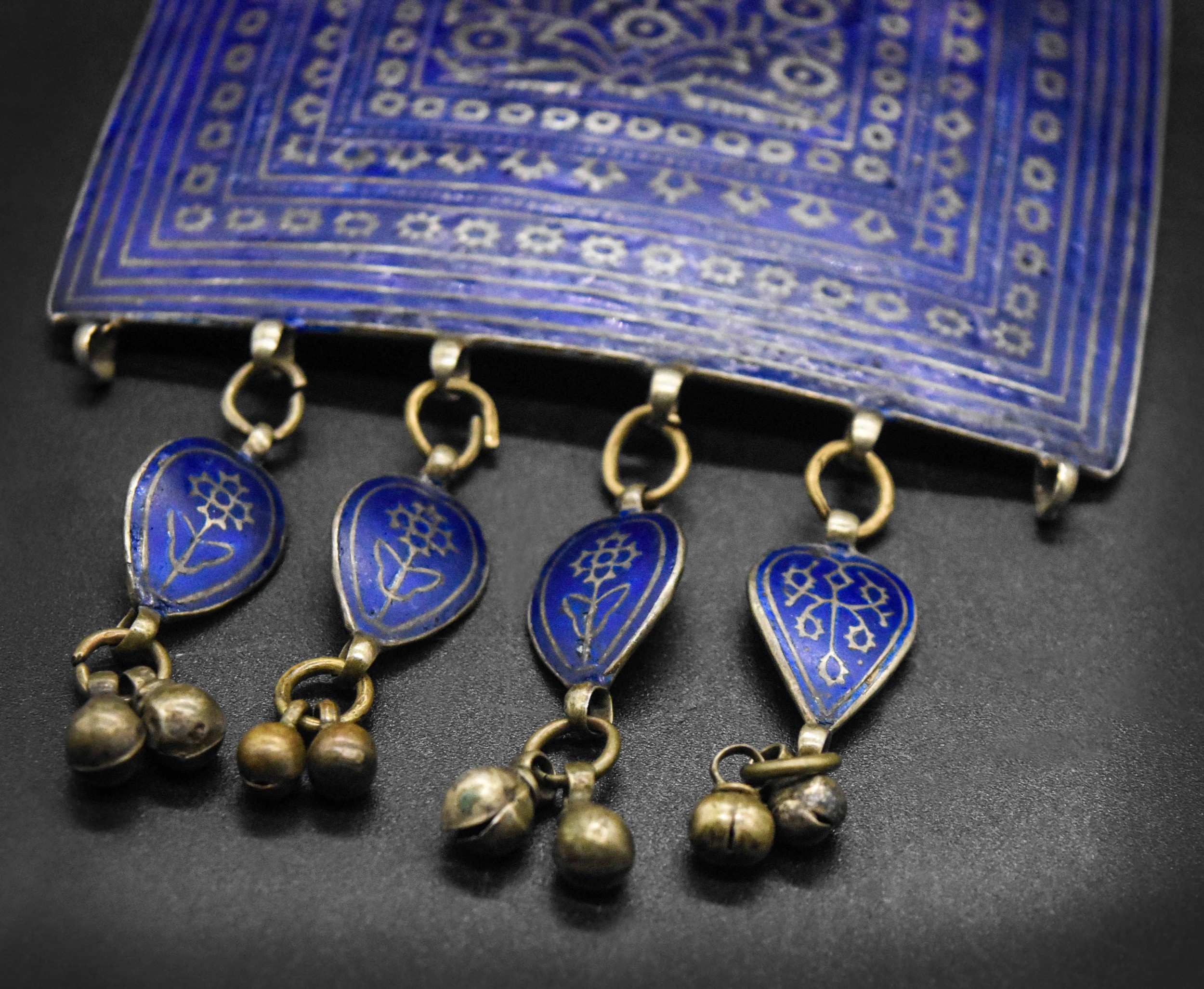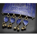 This magnificent large old Sindhi pendant necklace and ring set is a remarkable example of traditional South Asian tribal jewelry, crafted with exceptional skill and cultural significance. Made from high-grade silver, both the pendant and the ring are adorned with vivid blue enamel work—an age-old technique that adds a vibrant, eye-catching dimension to the pieces.