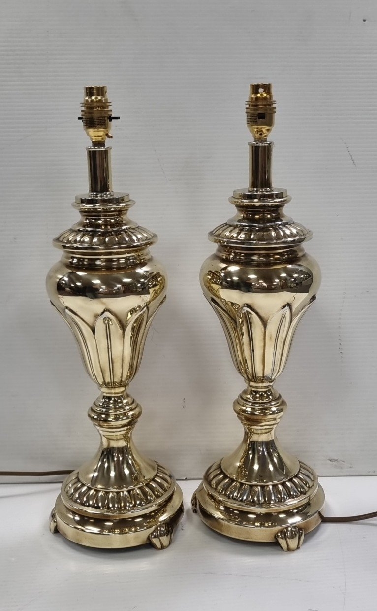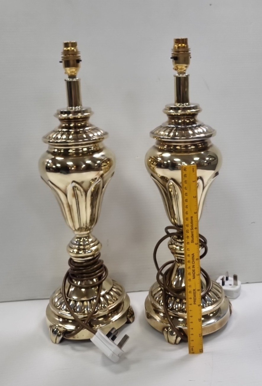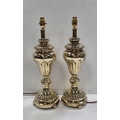 Pair of Polished Metal Baluster Table Lamps, H: 53cm X W: 16cm.
