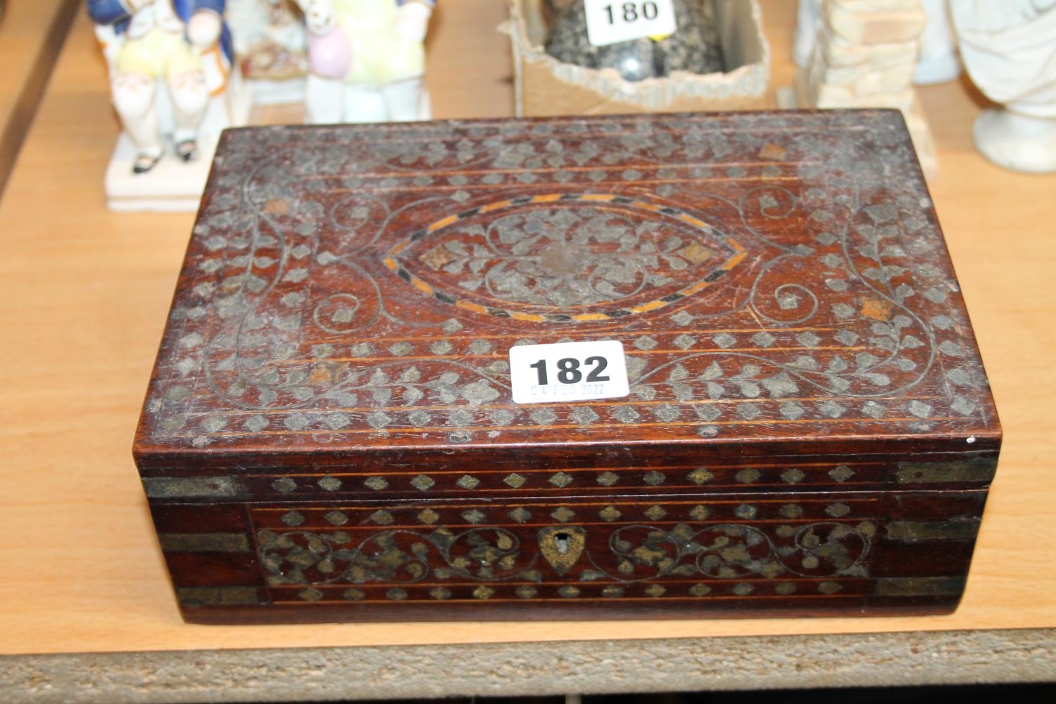 Heavily inlaid hardwood box.