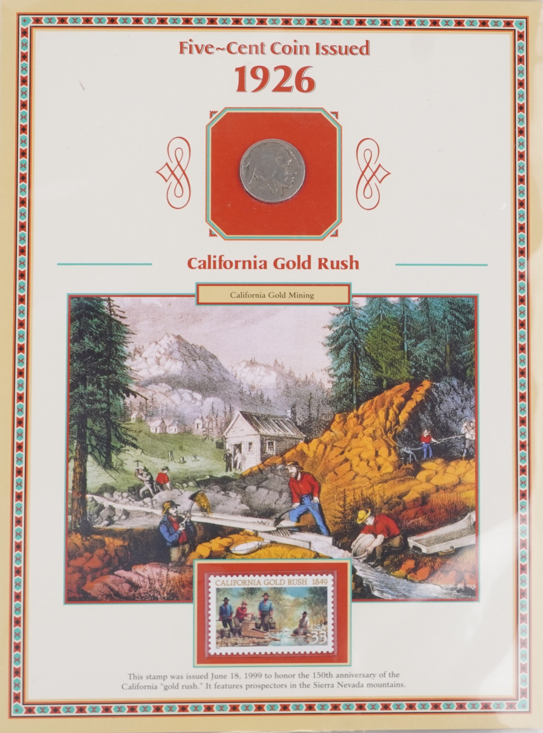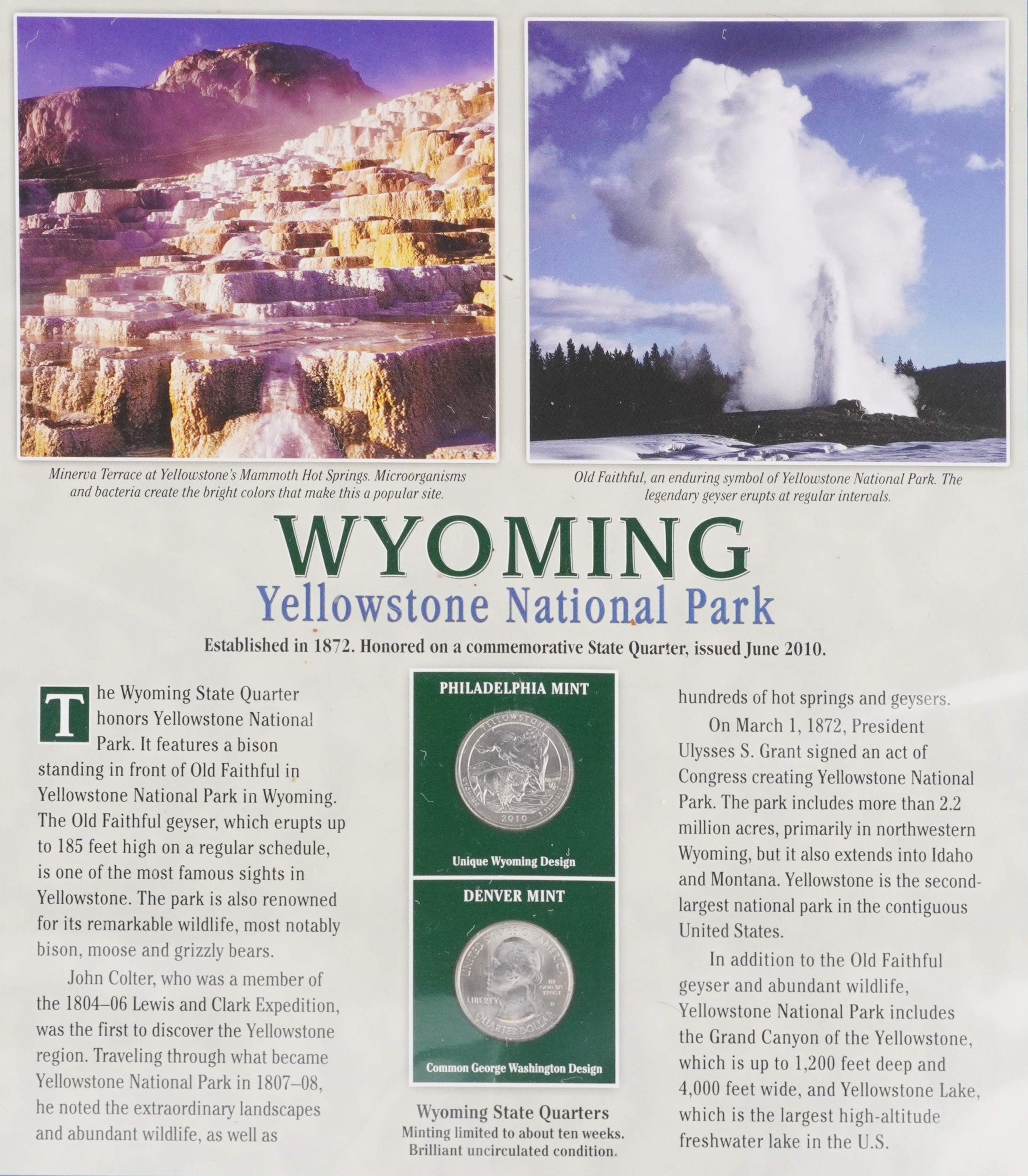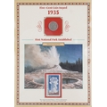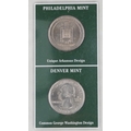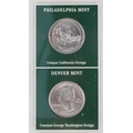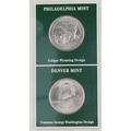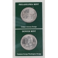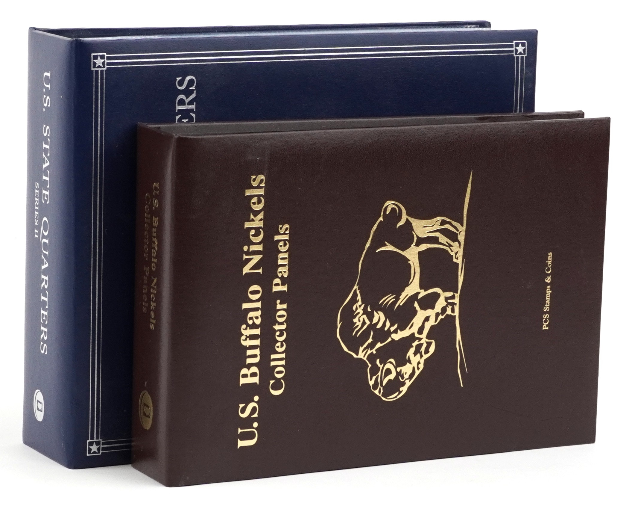 Two United States of America commemorative coin covers including Buffalo Nichols dates 1926-1937, housed in a brown ring-binder, a US State Quarters Series 2, The First and only Coin Tribute to Our National Treasures including Arkansas, Wyoming, California and Arizona, each state with two quarters, housed in a blue ring binder.