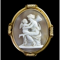 A Yellow Metal Framed Carved Shell Cameo Brooch, depicting Psyche and Cupid, 65mm x 55mm, total gross weight 23.7g