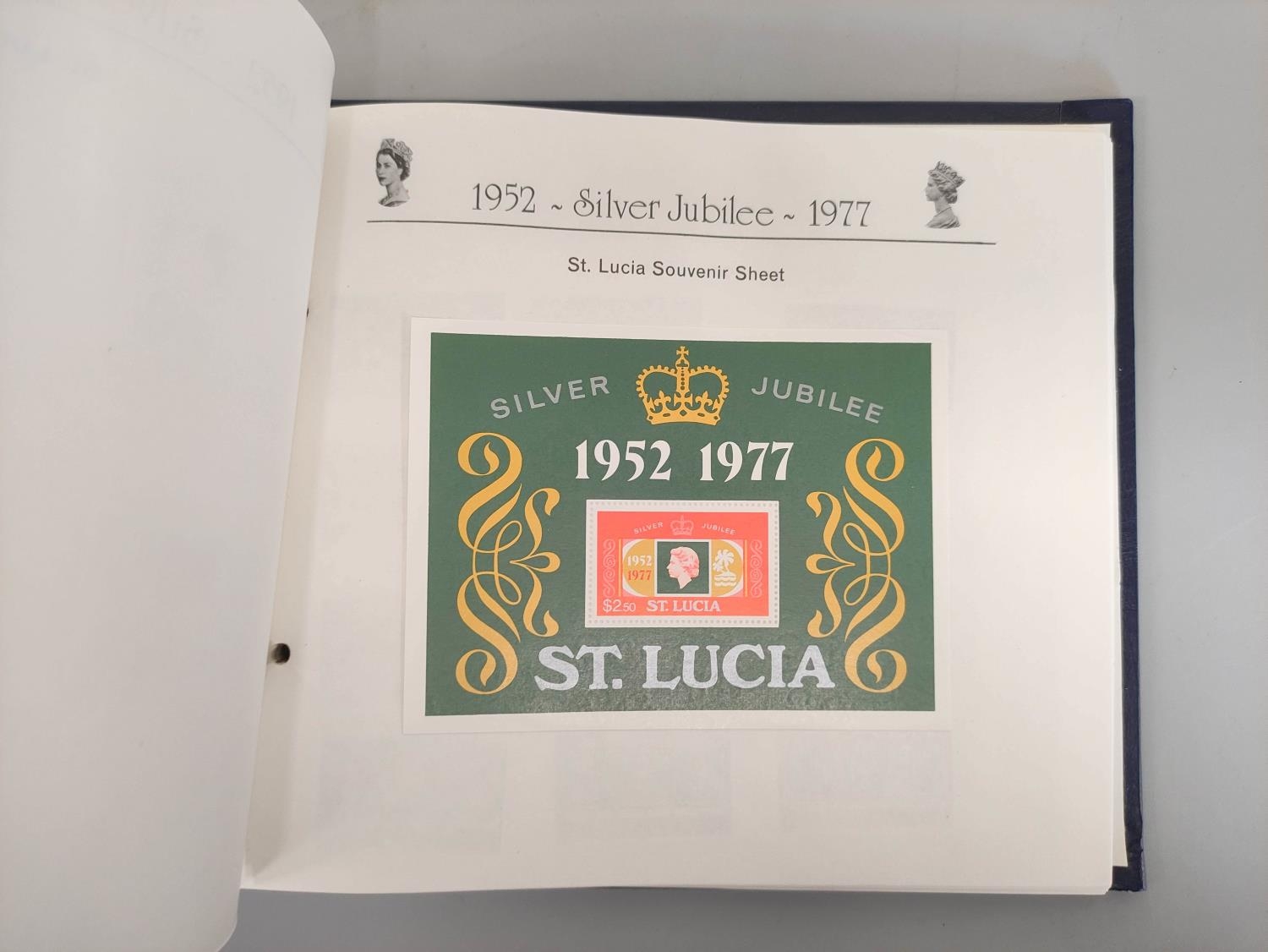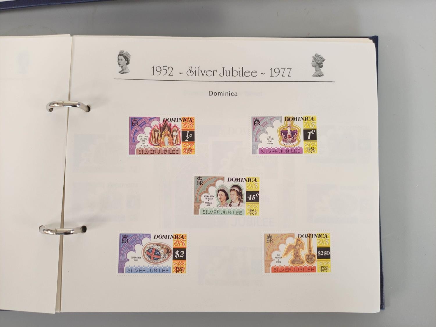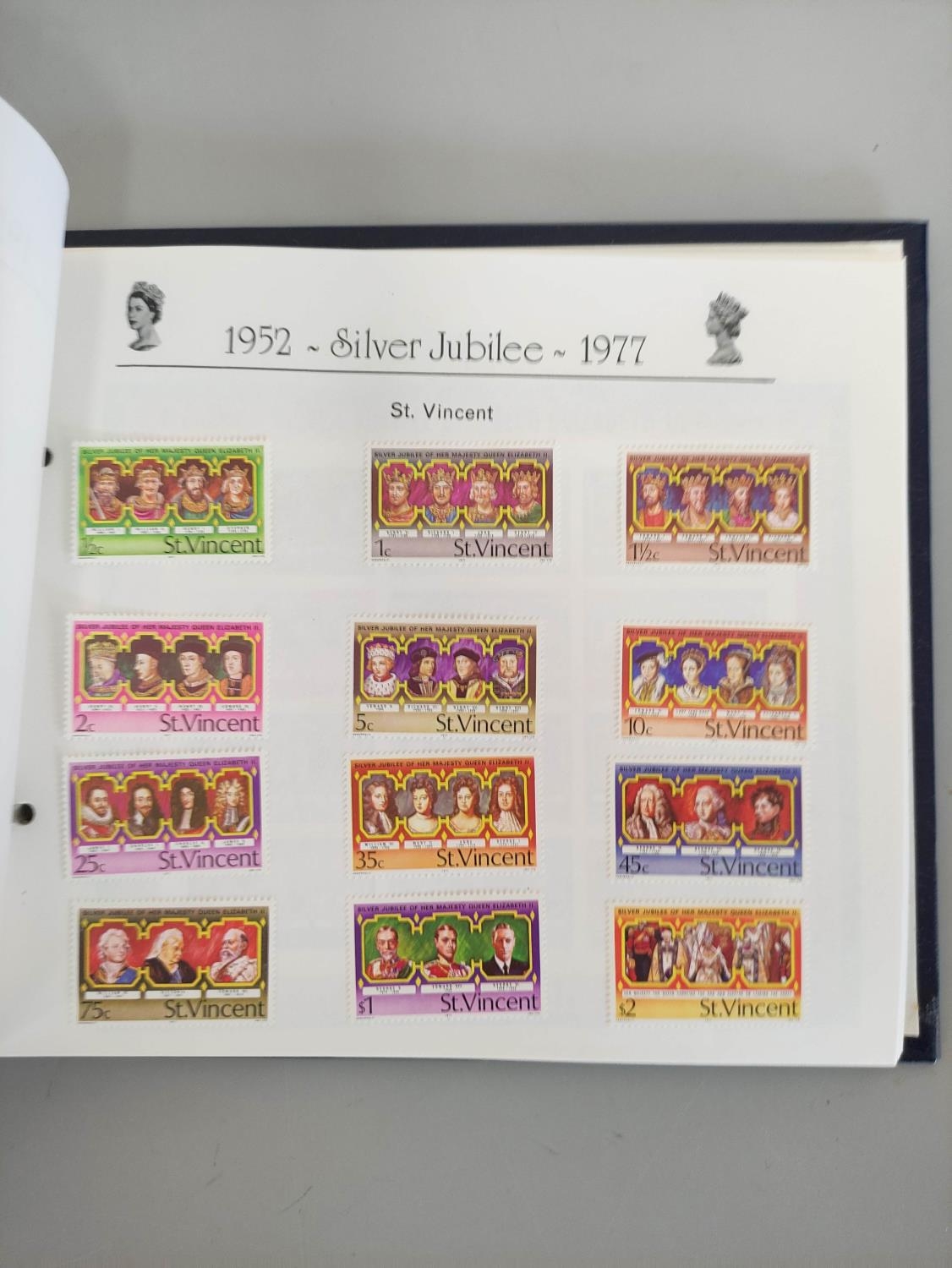Three postage stamp albums relating to Queen Elizabeth II Silver Jubilee 1977 to include British & Commonwealth issues. All in excellent condition and lacking postmarks. (3)