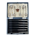 Set of six silver golf motif teaspoons and set of silver handled tea knives (2).